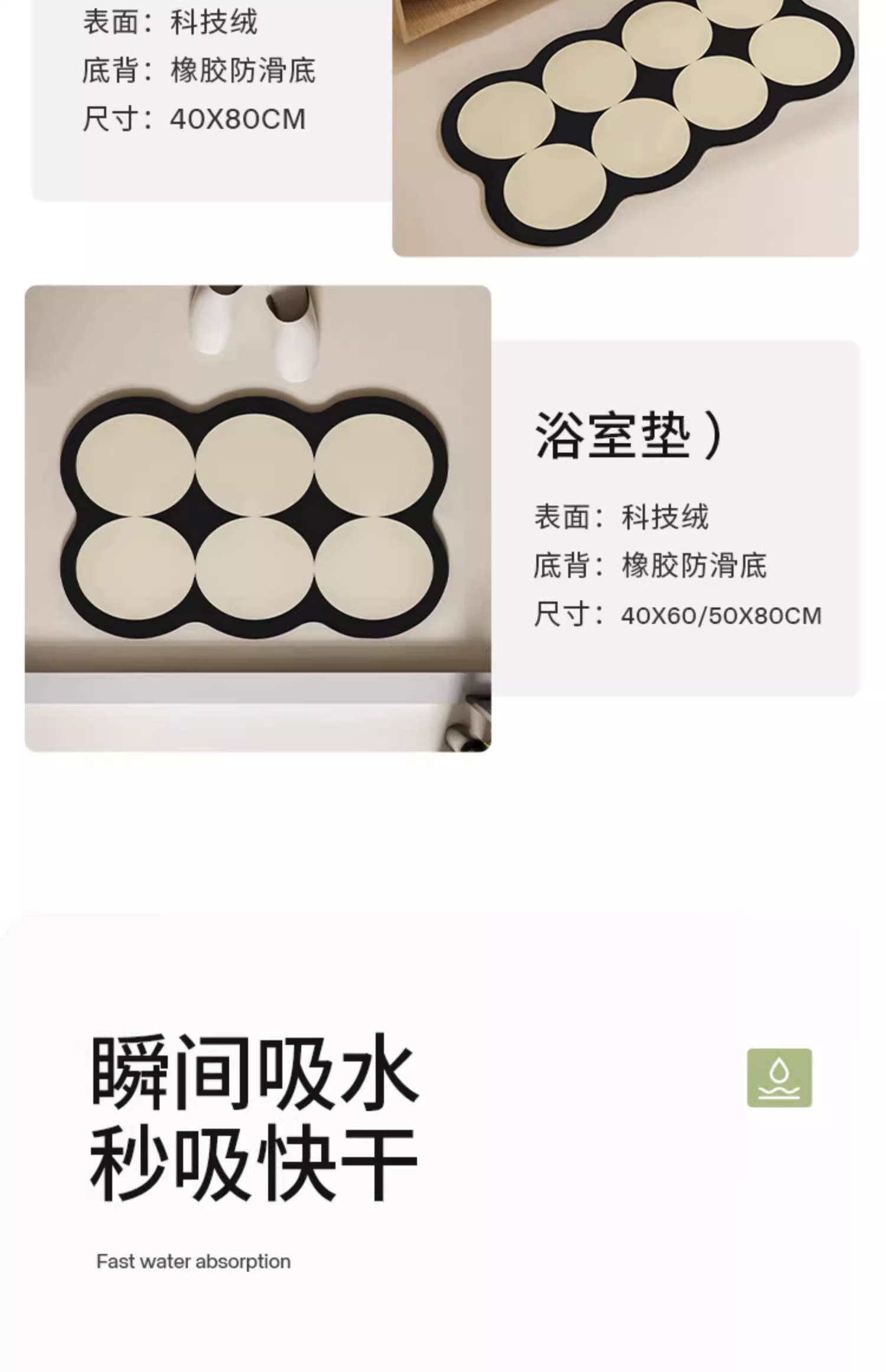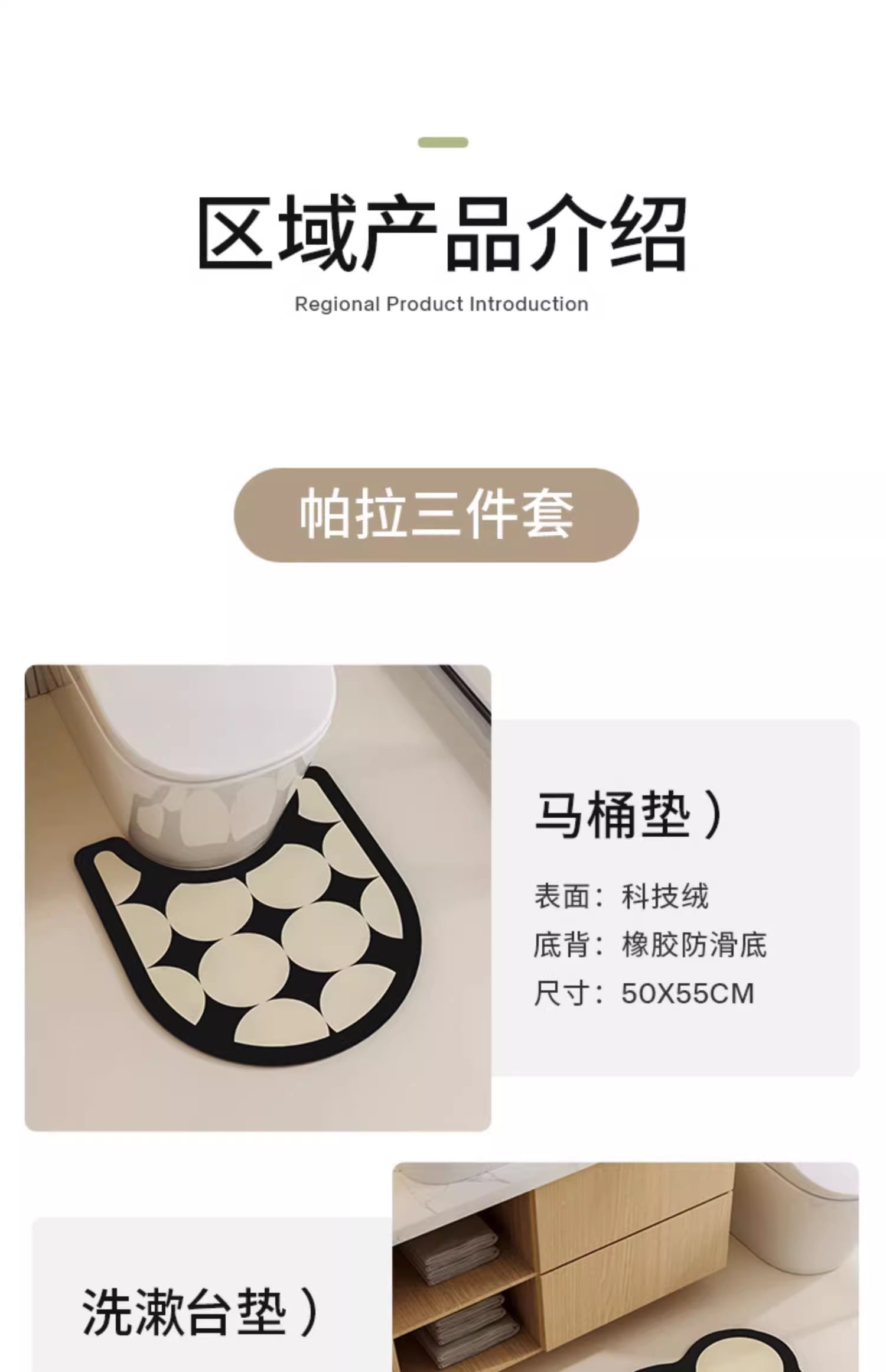 浴室吸水软硅藻泥地垫卫生间防滑脚垫厕所马桶套装家用洗手台地毯