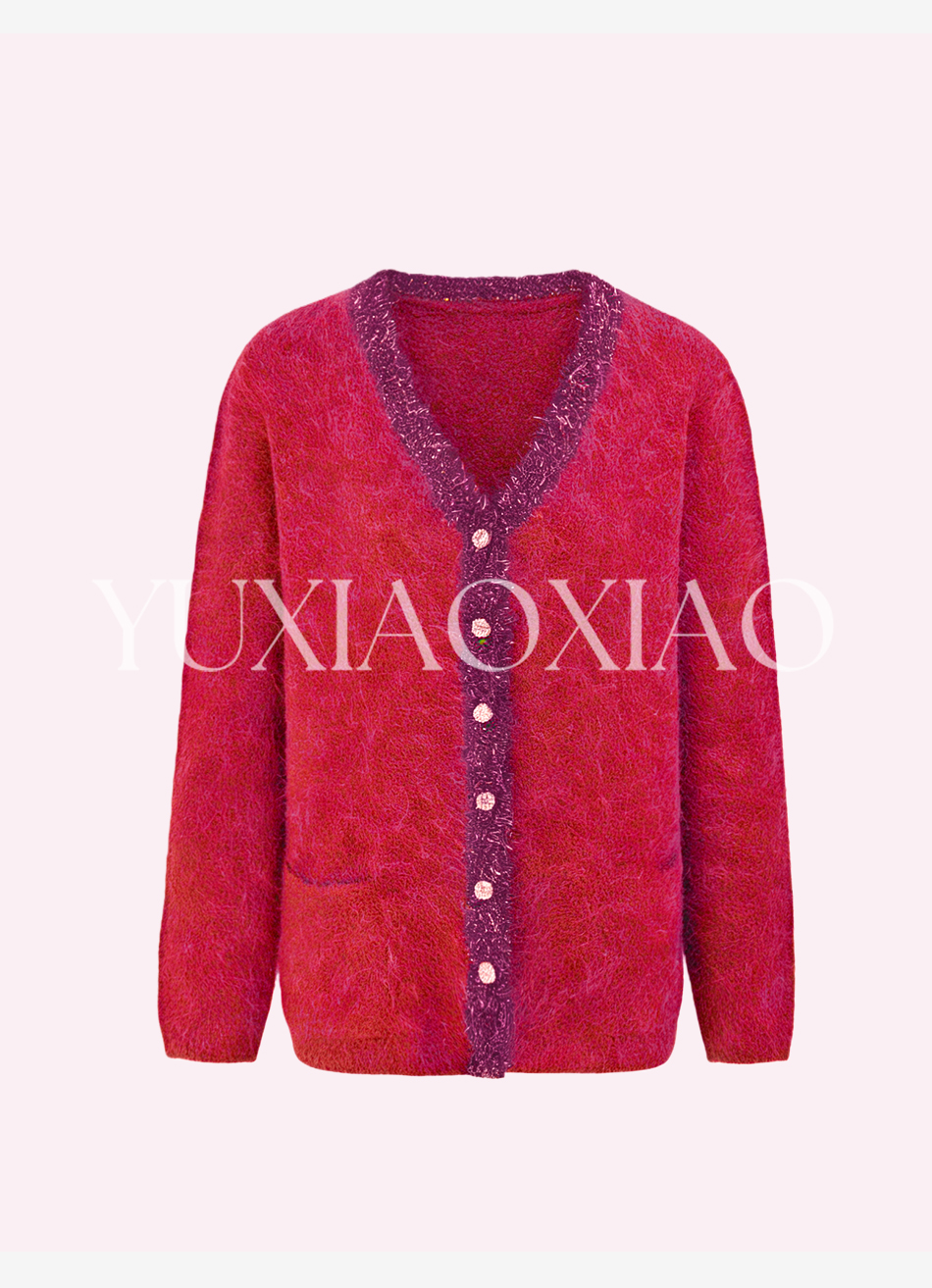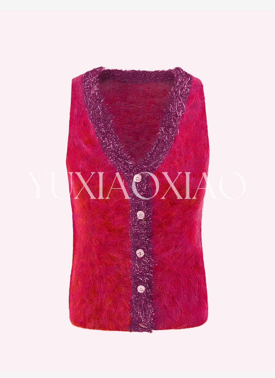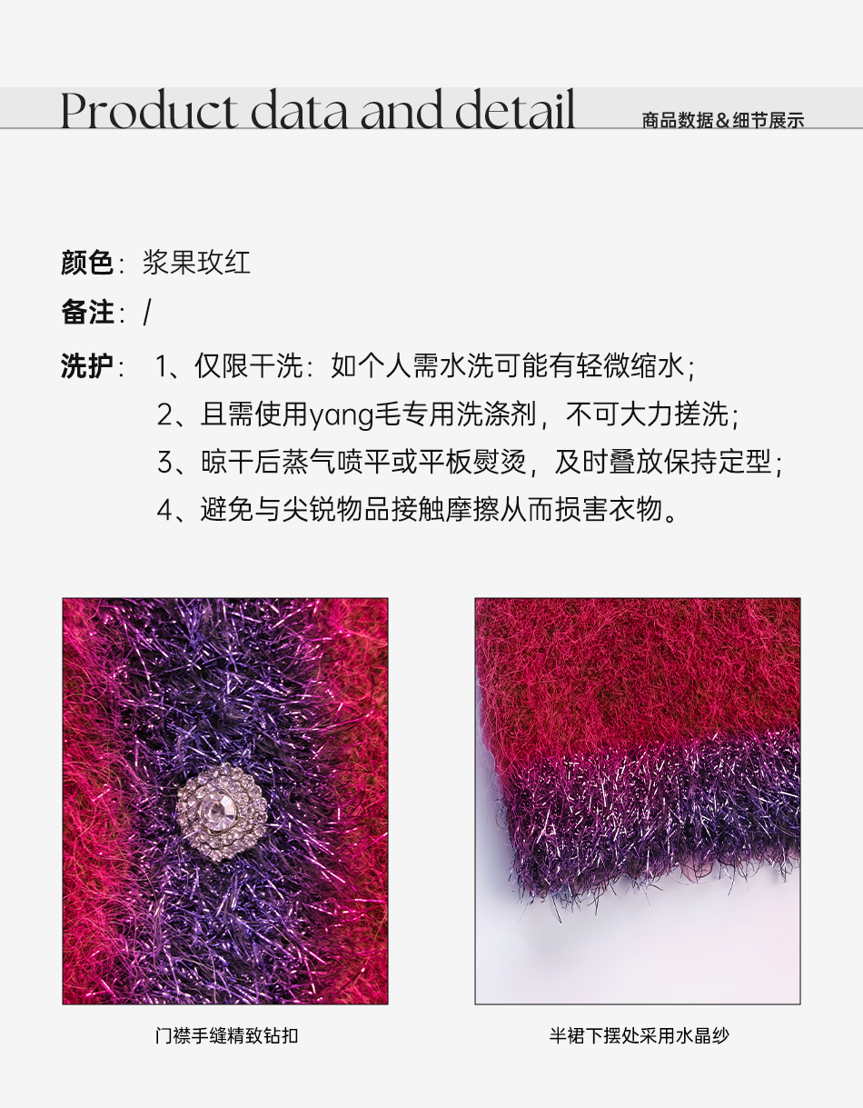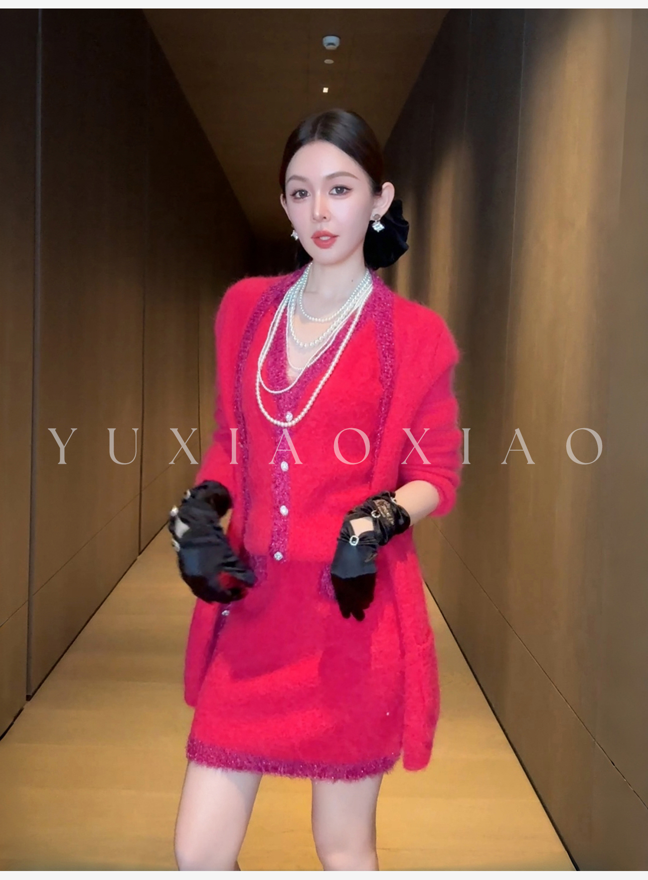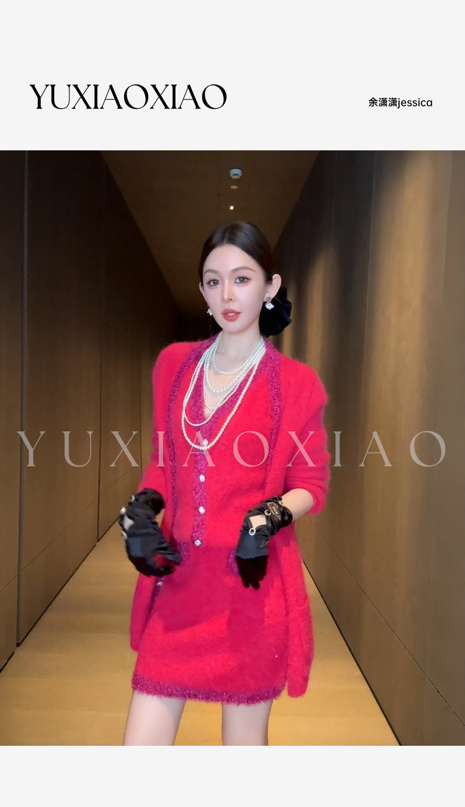 余潇潇【魔法许愿池】苏泊尔羊驼毛混纺手缝钻扣开衫&马夹&半裙套装