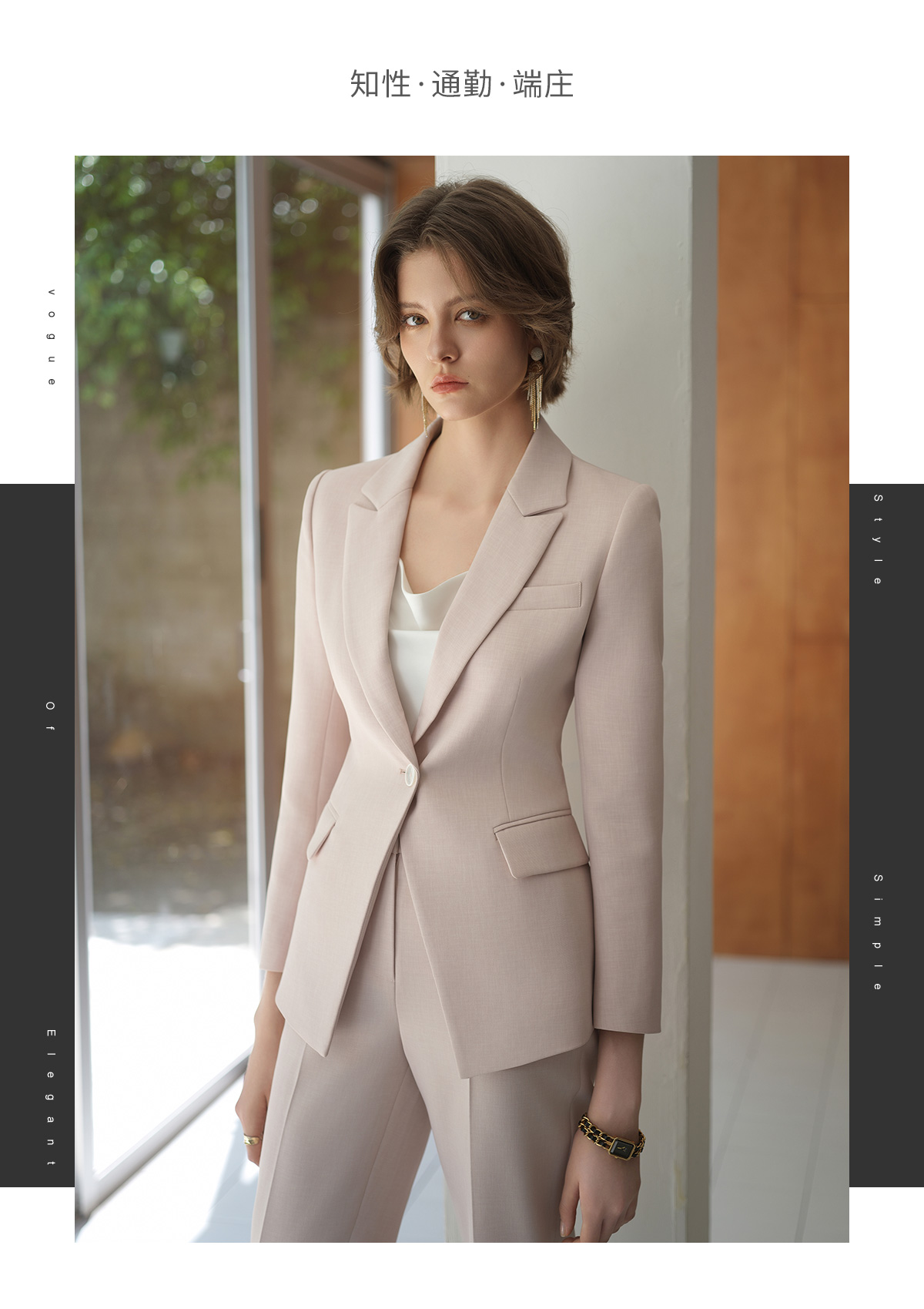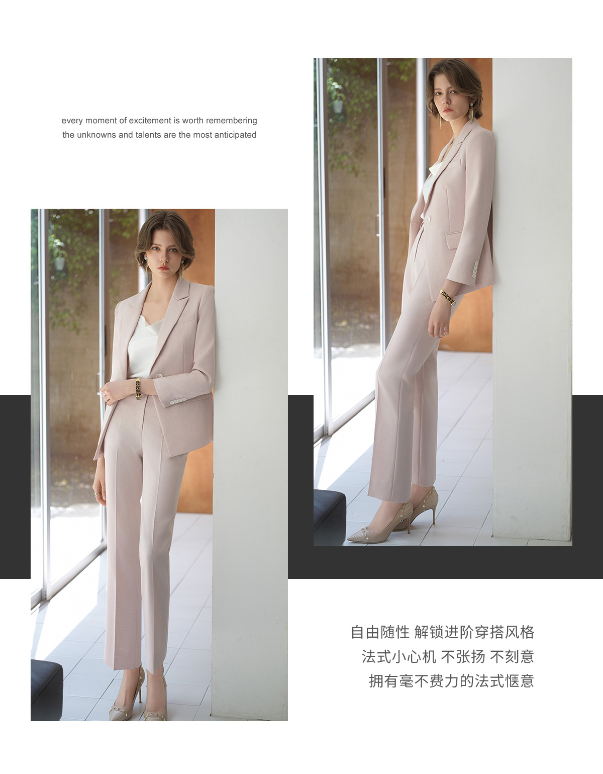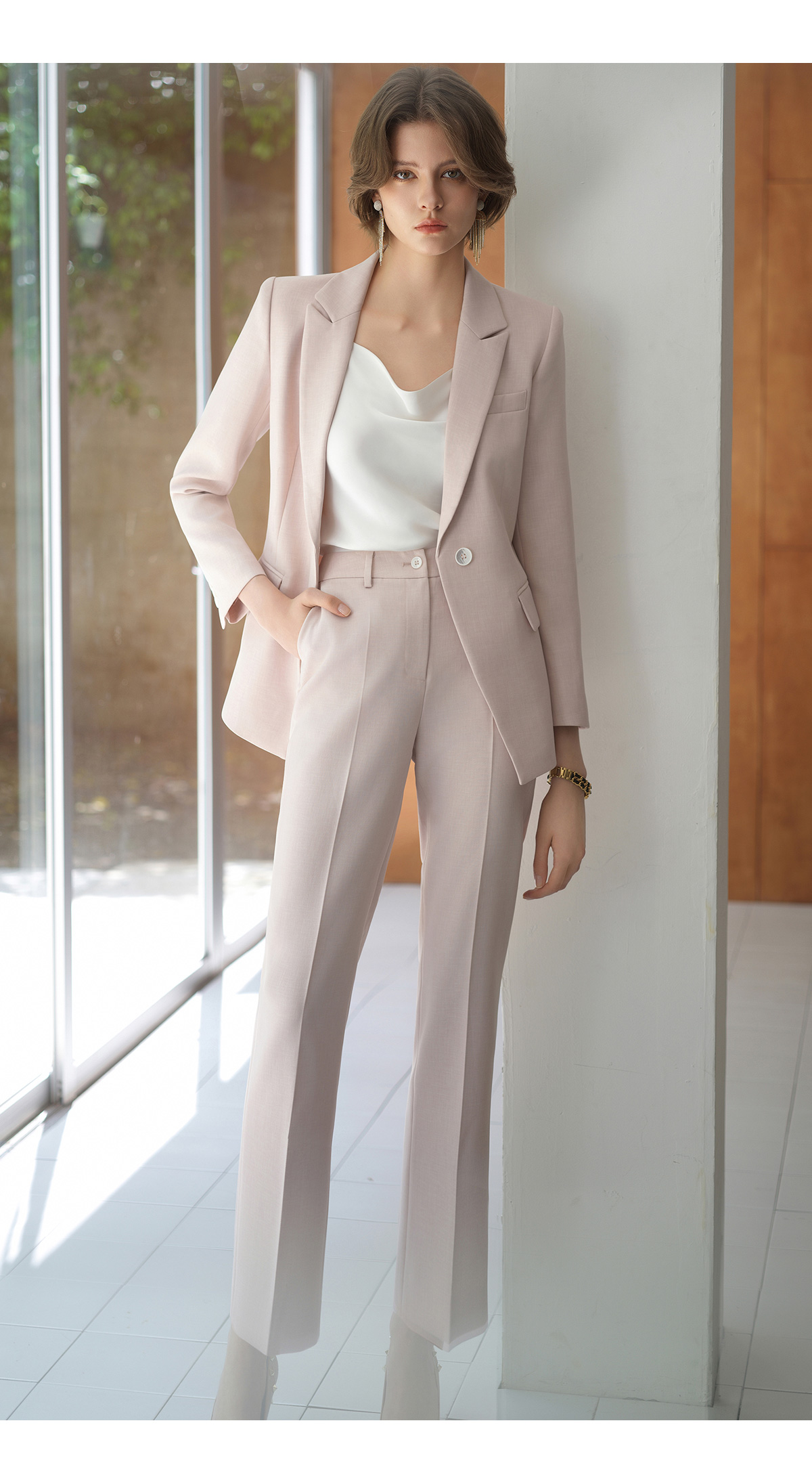 IWY/长袖粉色西装小腿裤修身气质高端通勤干练遮肉显瘦职业两件套CP1944-P