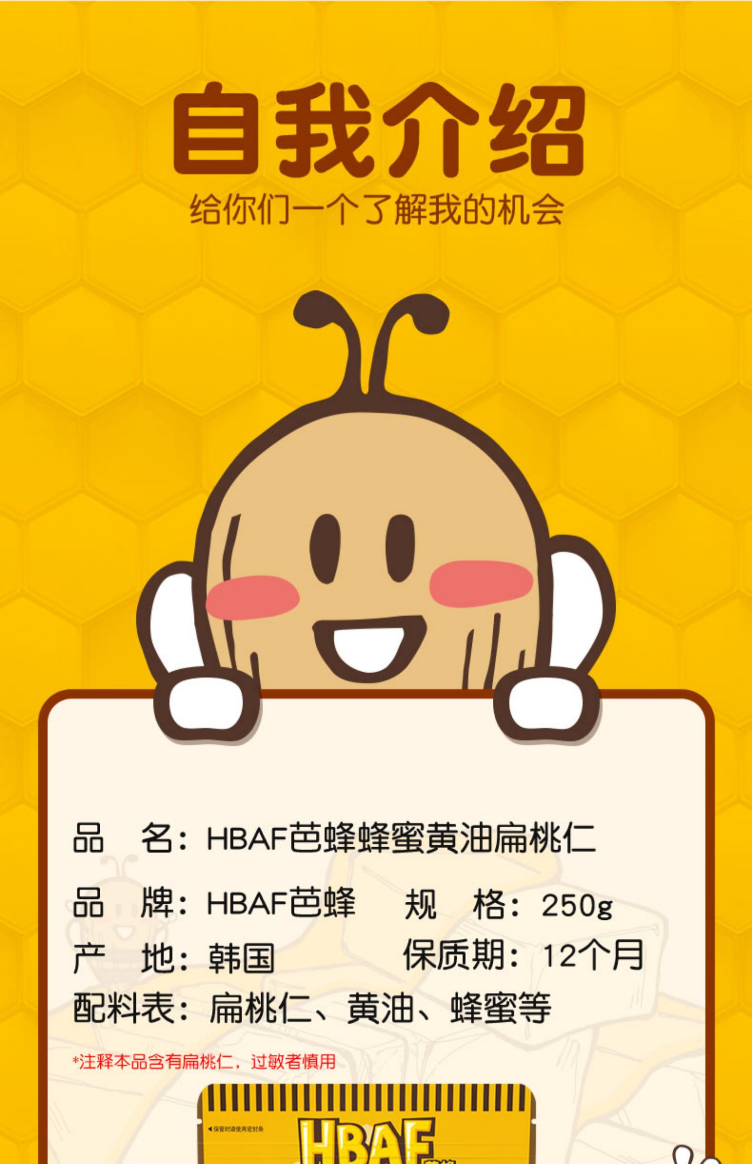 韩国芭蜂蜂蜜黄油扁桃仁250g/80g 大颗坚果饱满酥脆 058924/058923