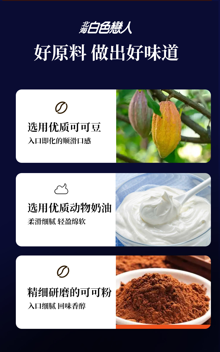 【北海白色恋人生巧巧克力】纯可可脂牛奶生巧巧克力礼盒装进口休闲食品年货零食礼物