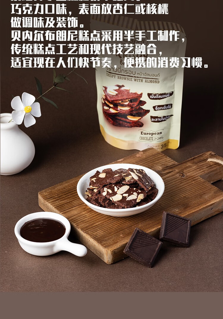 泰国贝内尔布朗尼方块45g/布朗尼扁桃仁脆片35g 不含代可可脂美味下午茶 051242/051241