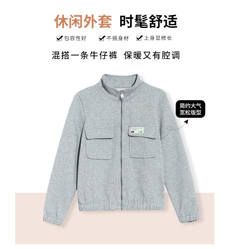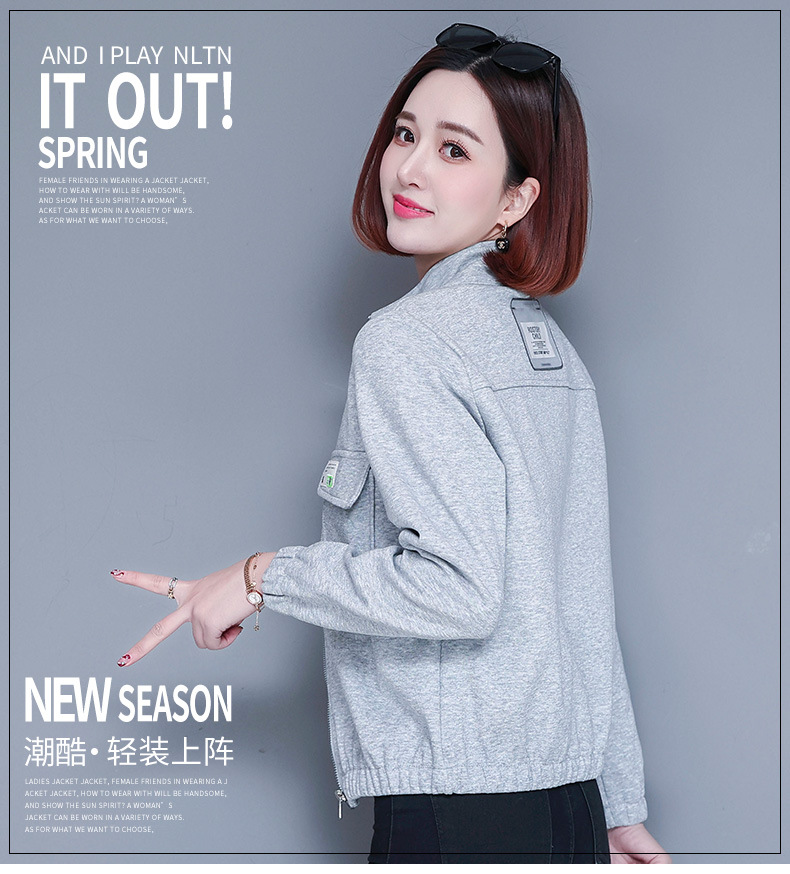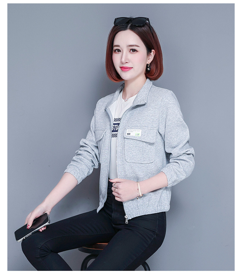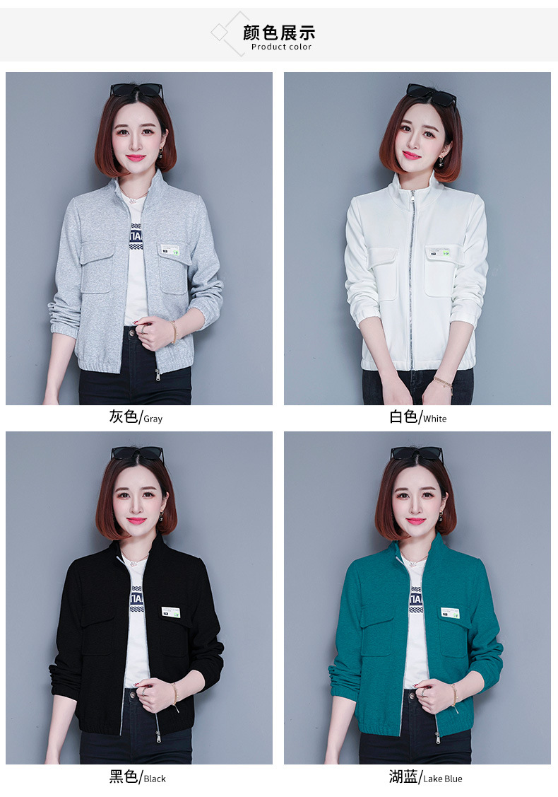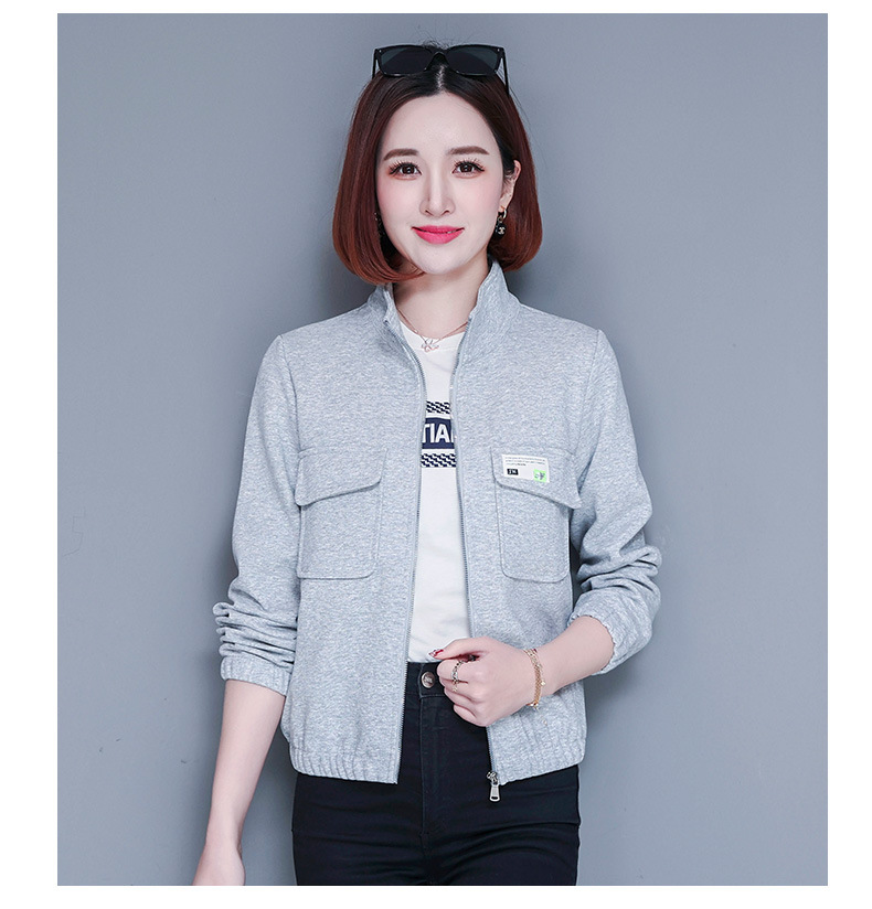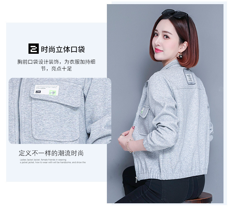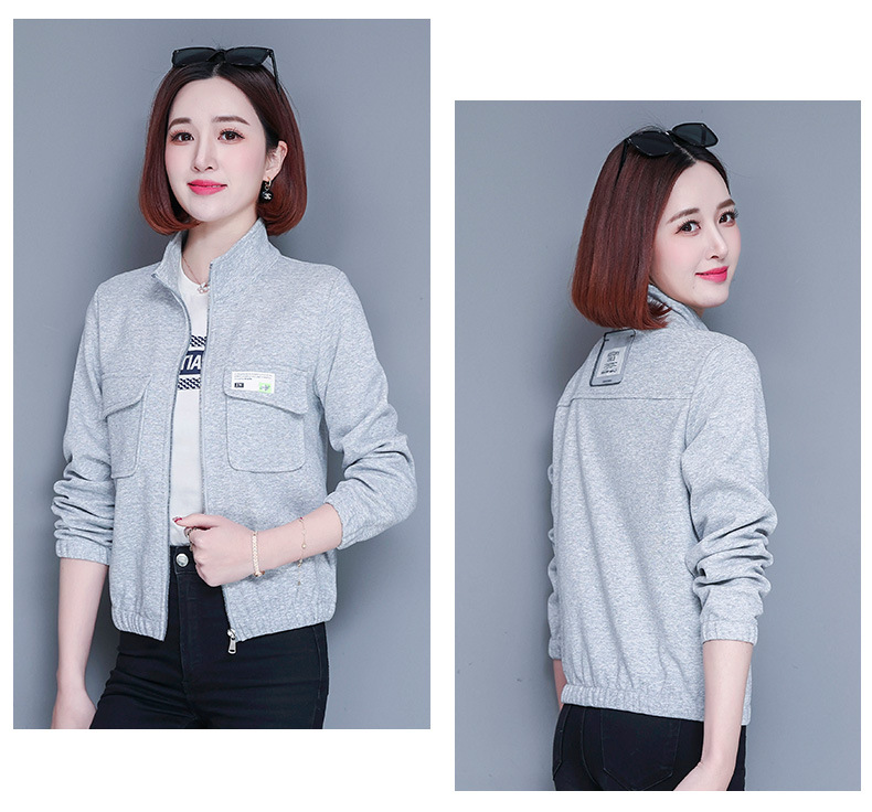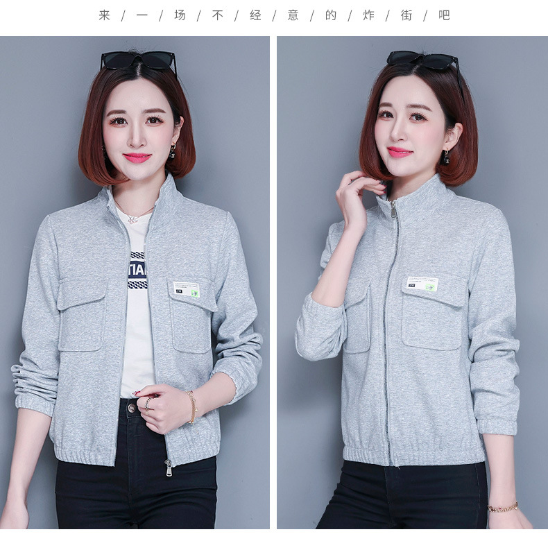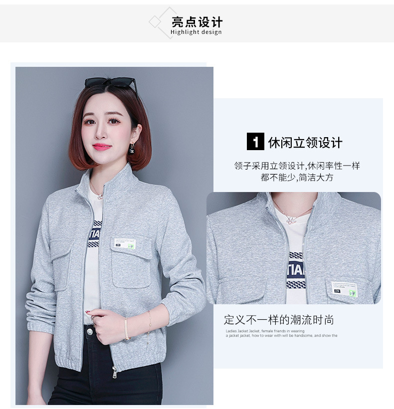 女春秋纯棉开衫卫衣2022新款妈妈女士立领短款外套 大码休闲百搭 TR-XX2373