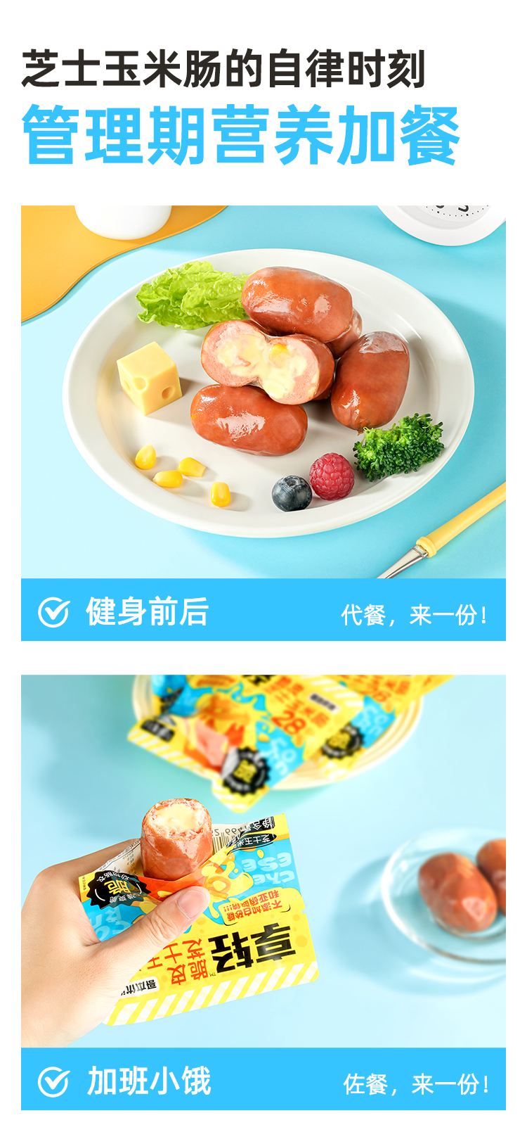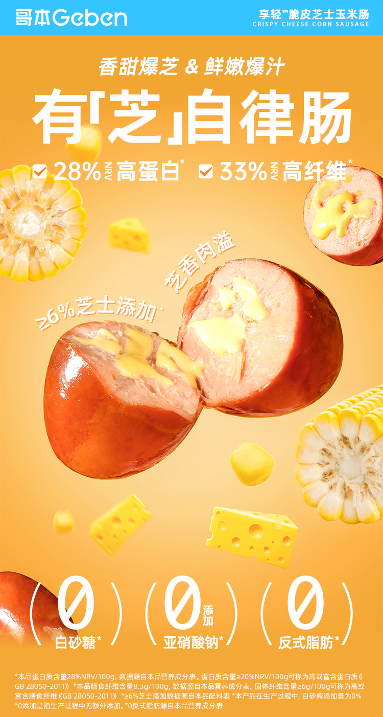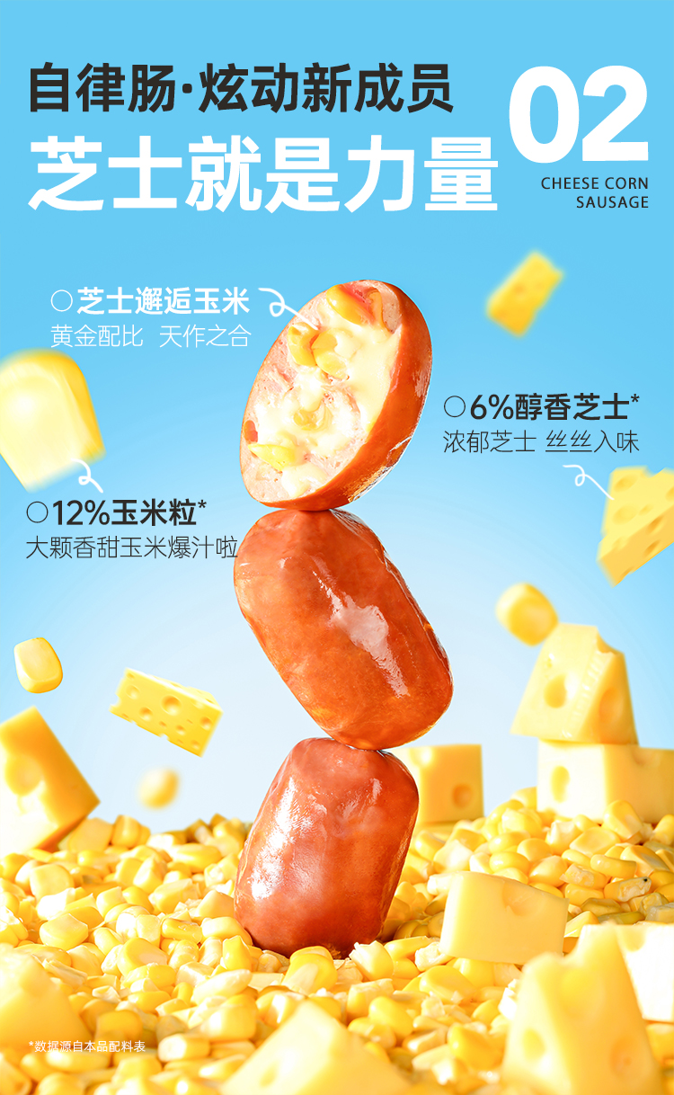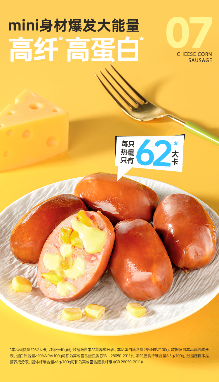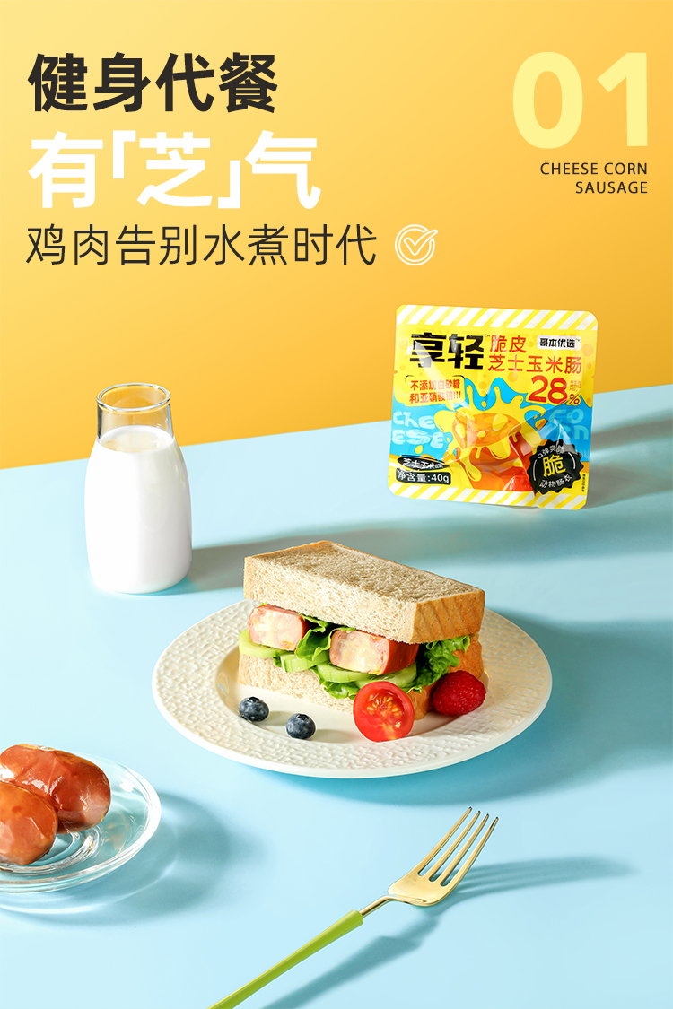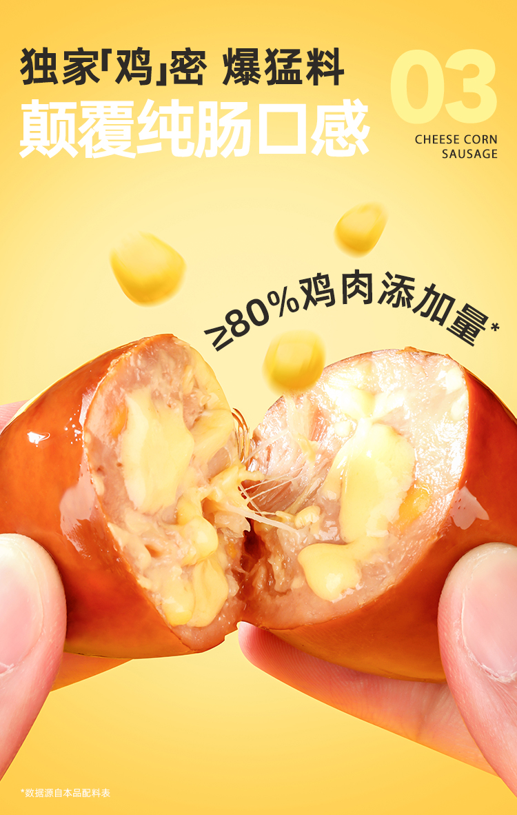 哥本脆皮芝士玉米肠 鸡胸肉鸡腿肉≥80% 芝香浓郁 粒粒爆浆口感 开袋即食 美味随时随地享(保质期至2026/04/06)
