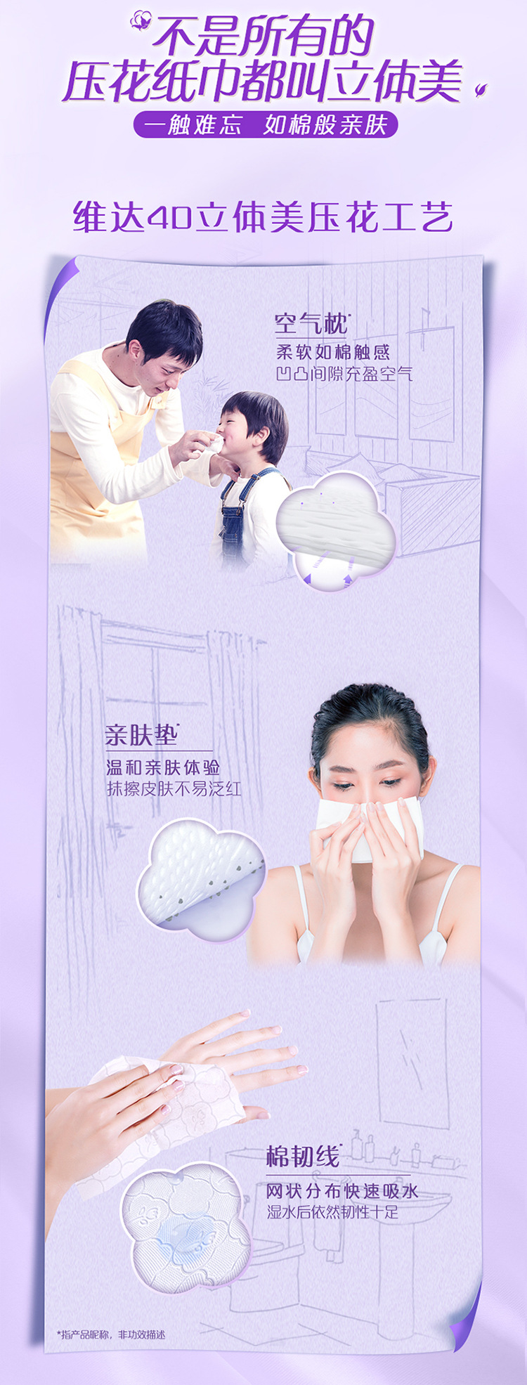「立体印花」维达抽纸90抽3包立体美棉韧4D压花面巾纸无香居家日用餐巾纸抽纸