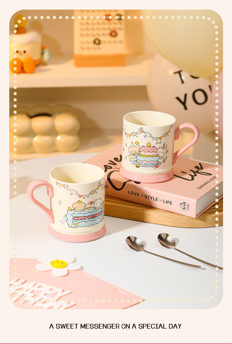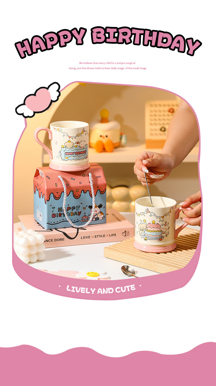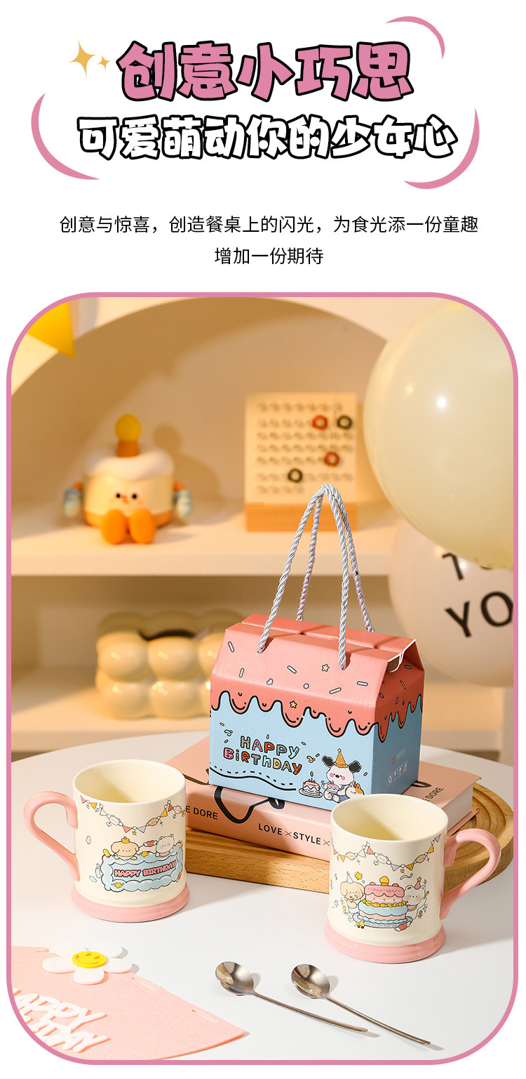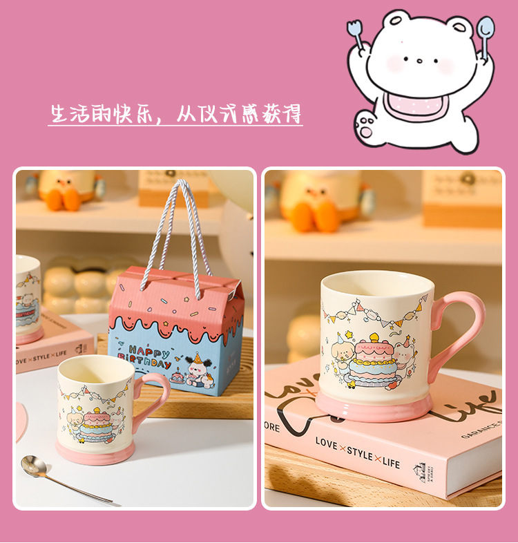 【敲高颜值!餐具马克杯】生日小熊卡通陶瓷杯马克杯活动伴手礼高颜值可爱水杯节日礼品套装。ry