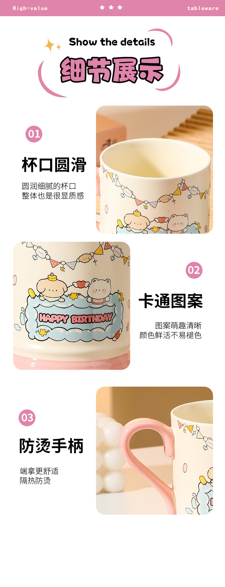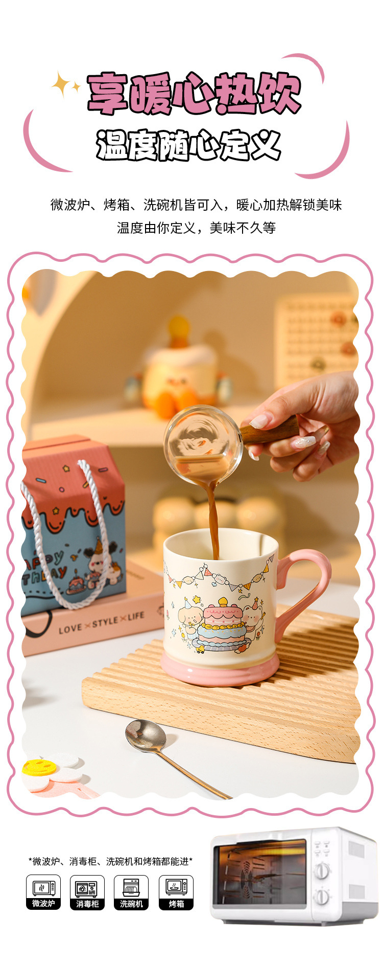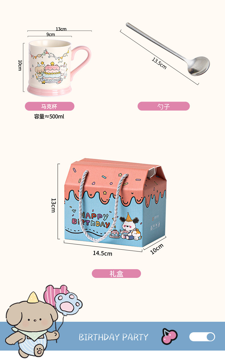 【敲高颜值!餐具马克杯】生日小熊卡通陶瓷杯马克杯活动伴手礼高颜值可爱水杯节日礼品套装。ry