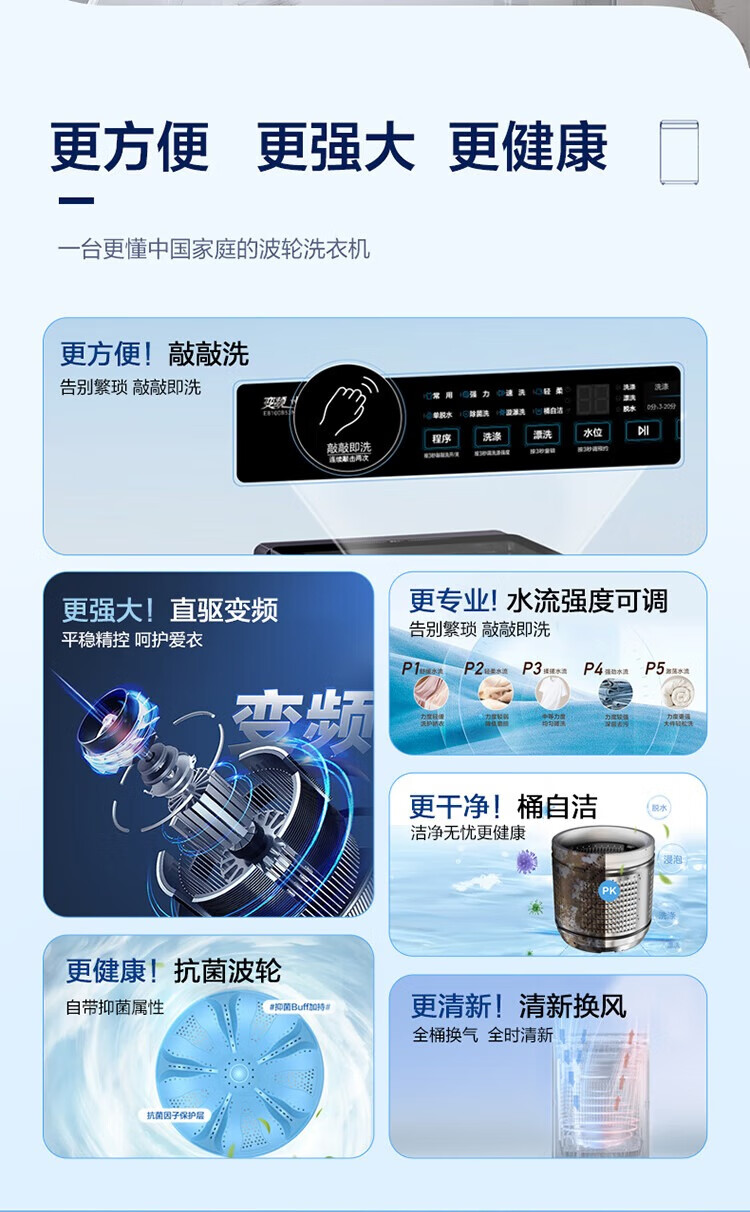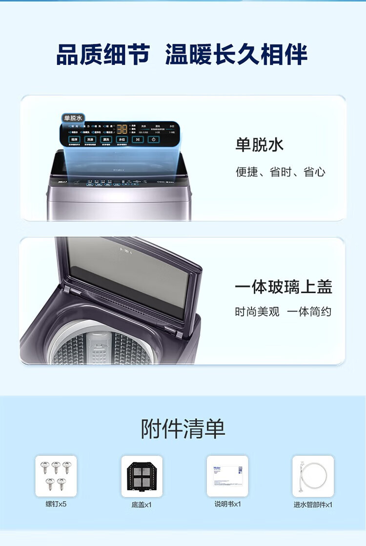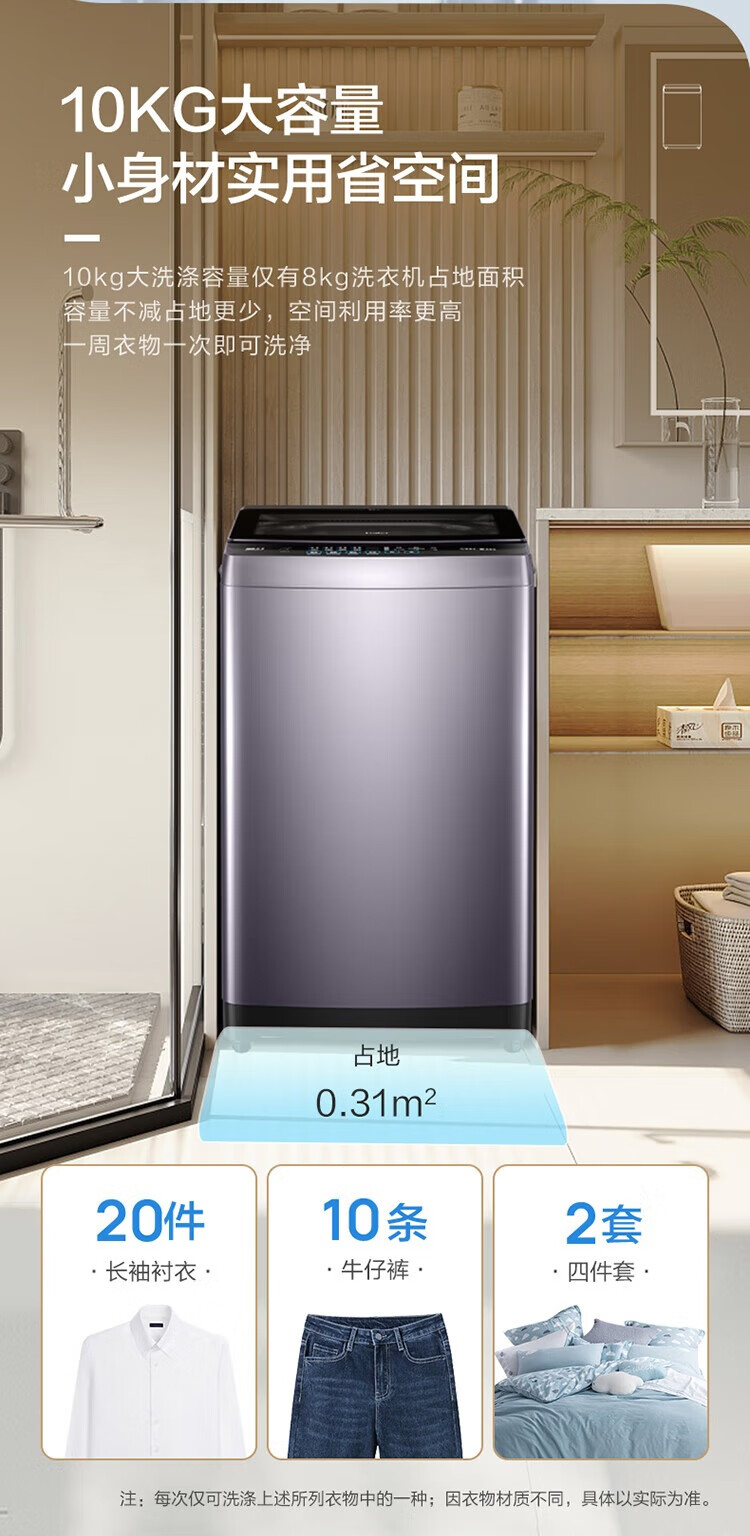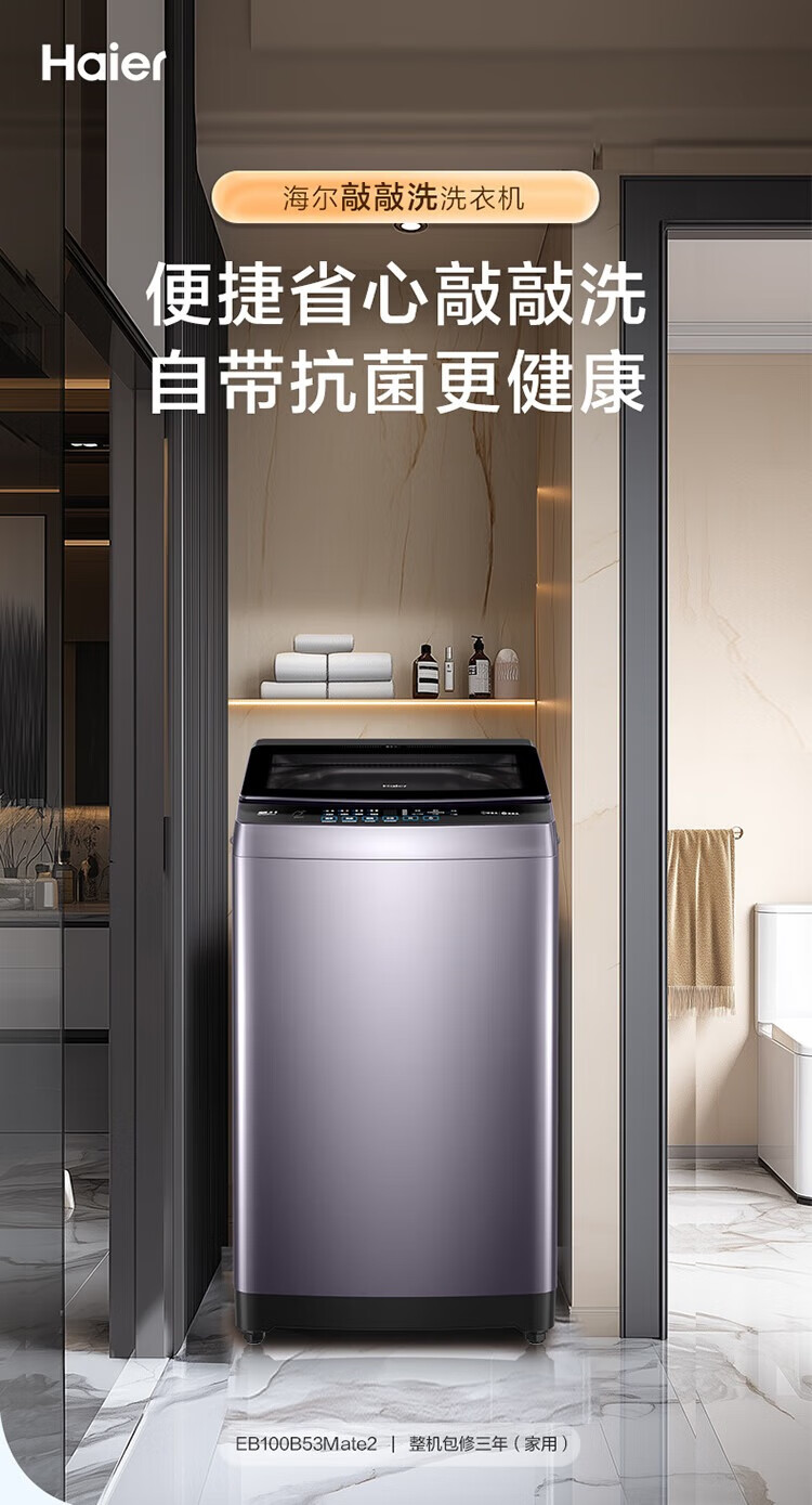 海尔(Haier)波轮洗衣机全自动家用 10公斤大容量 直驱变频 一级能效B53Mate2敲敲洗