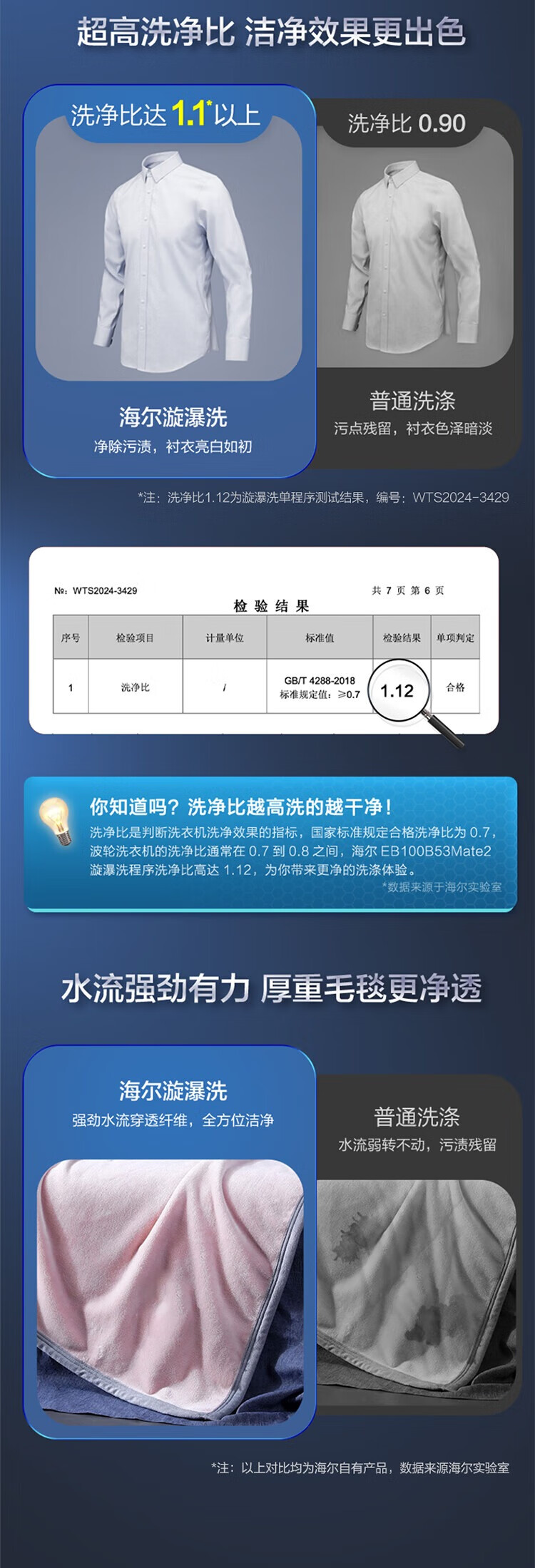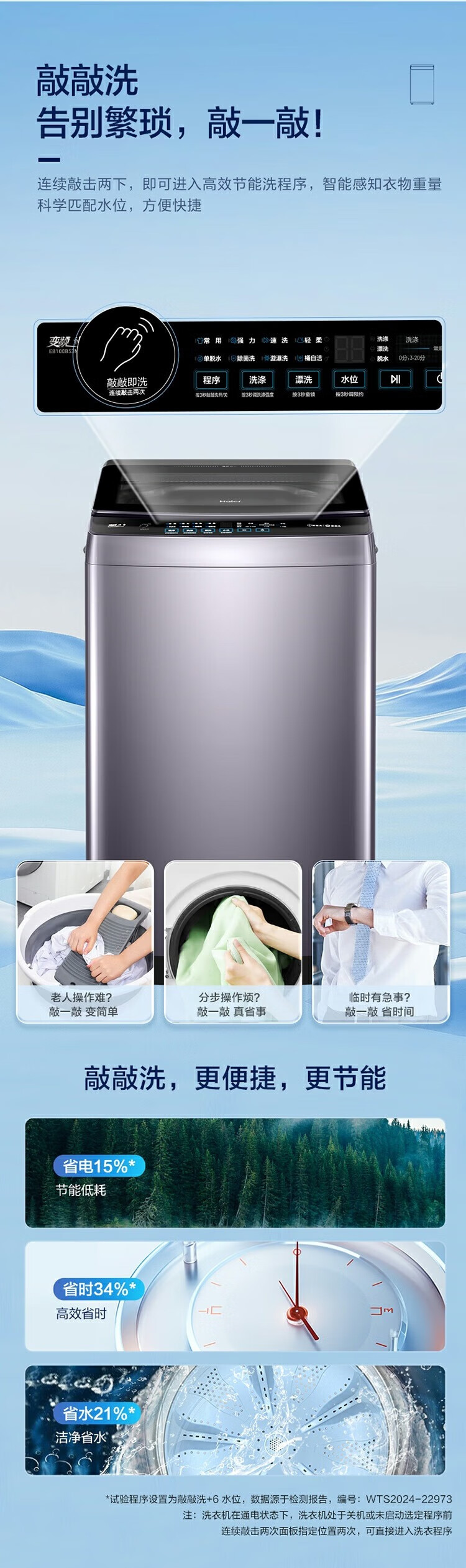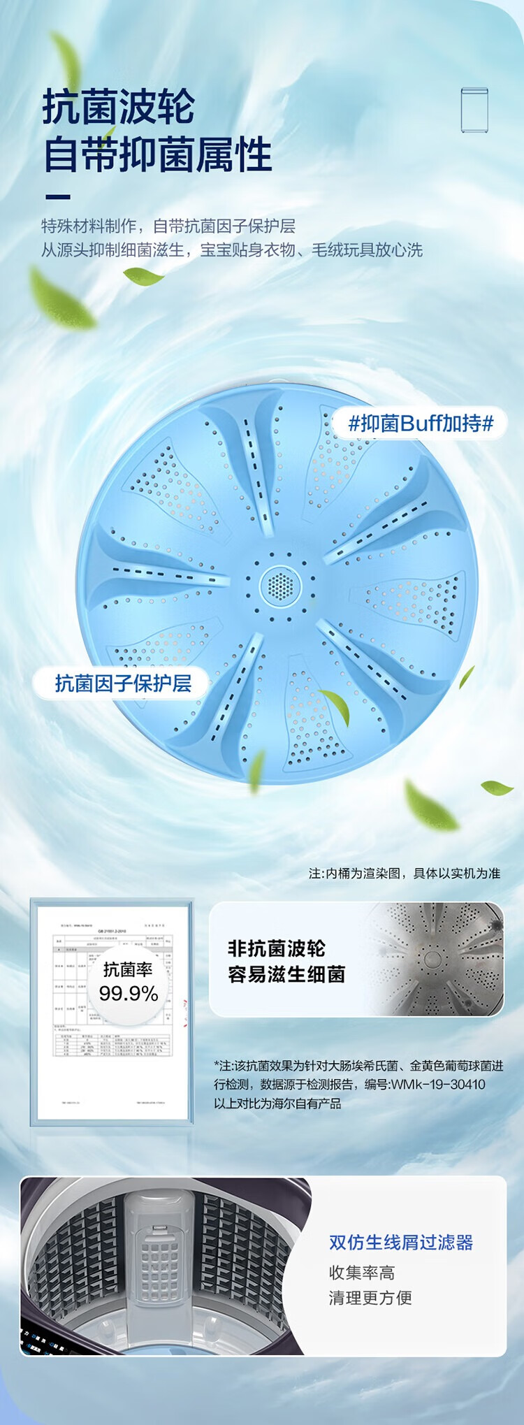 海尔(Haier)波轮洗衣机全自动家用 10公斤大容量 直驱变频 一级能效B53Mate2敲敲洗