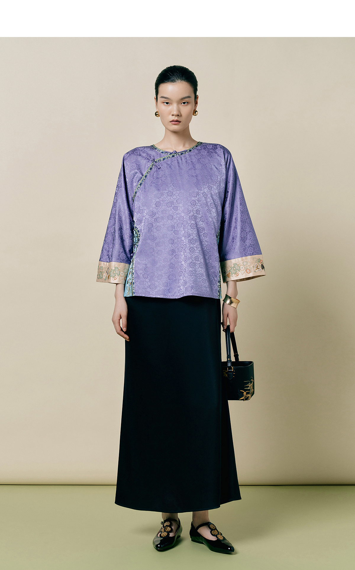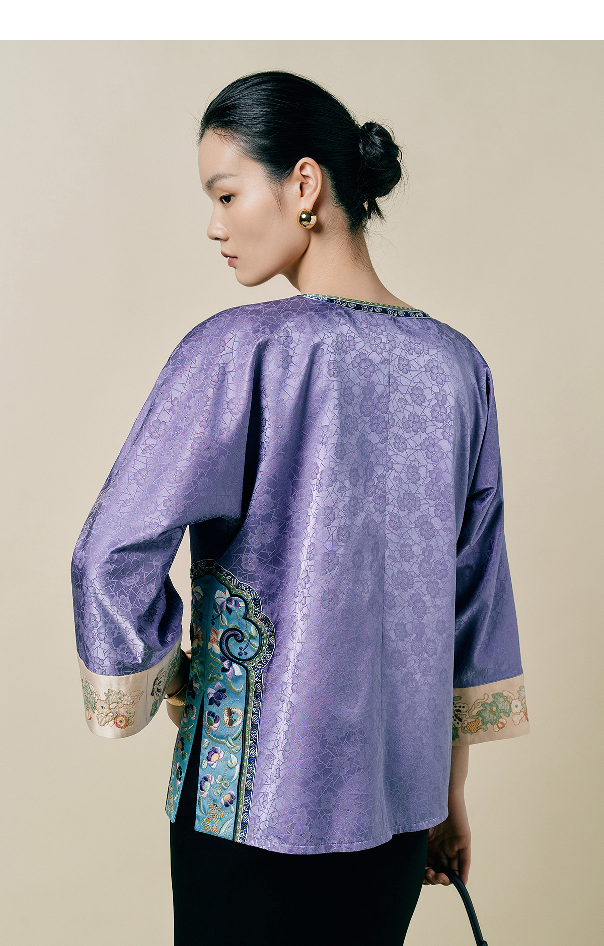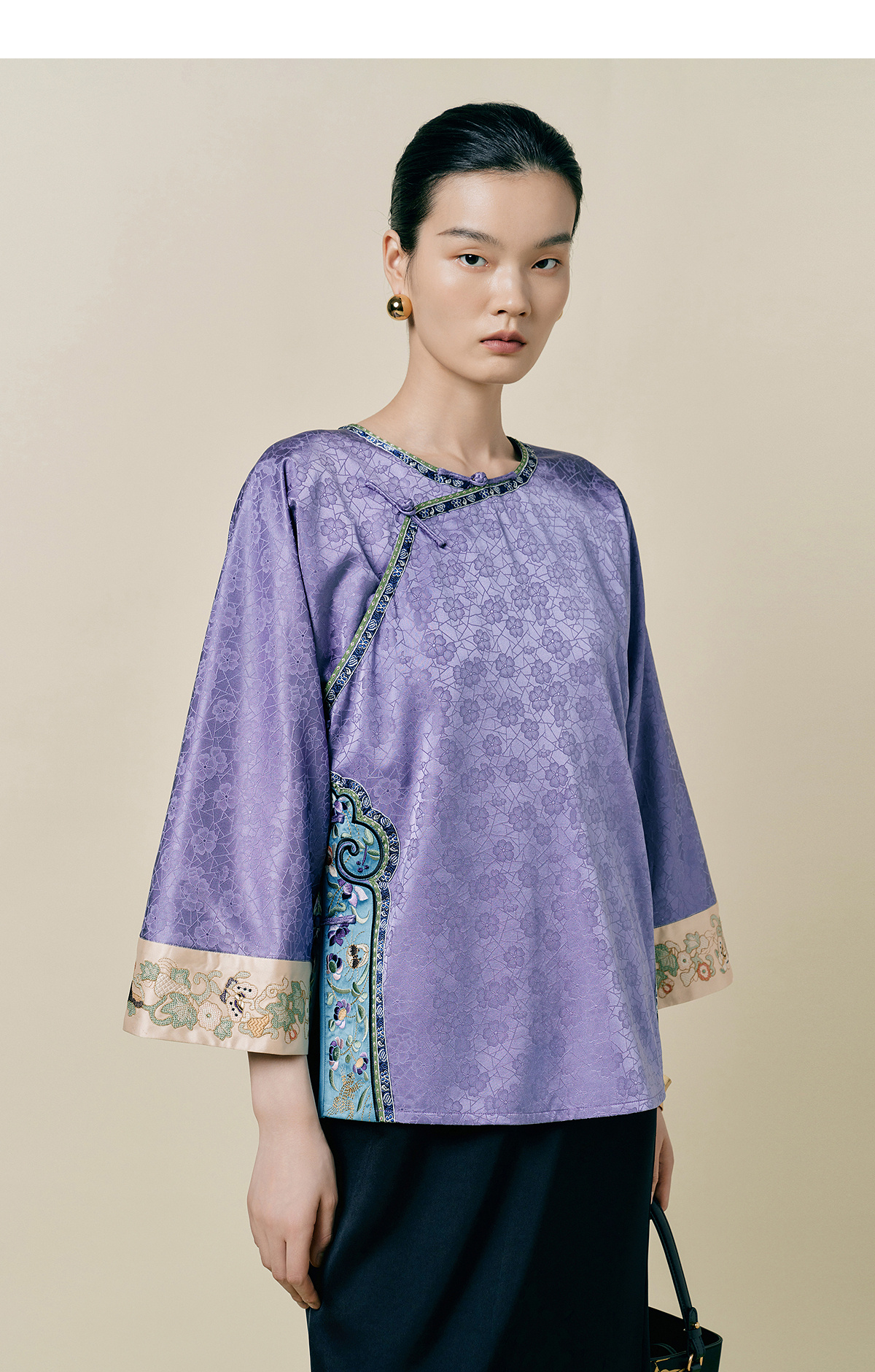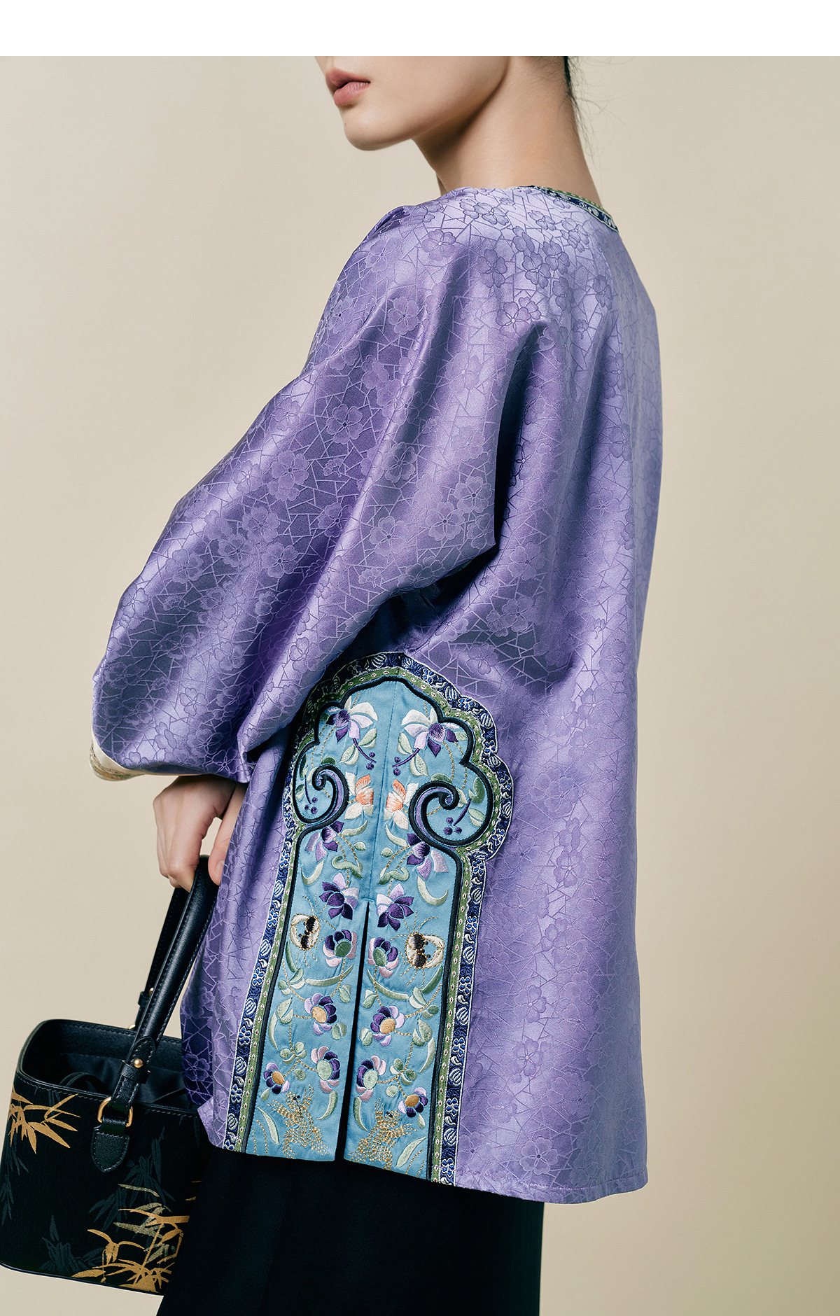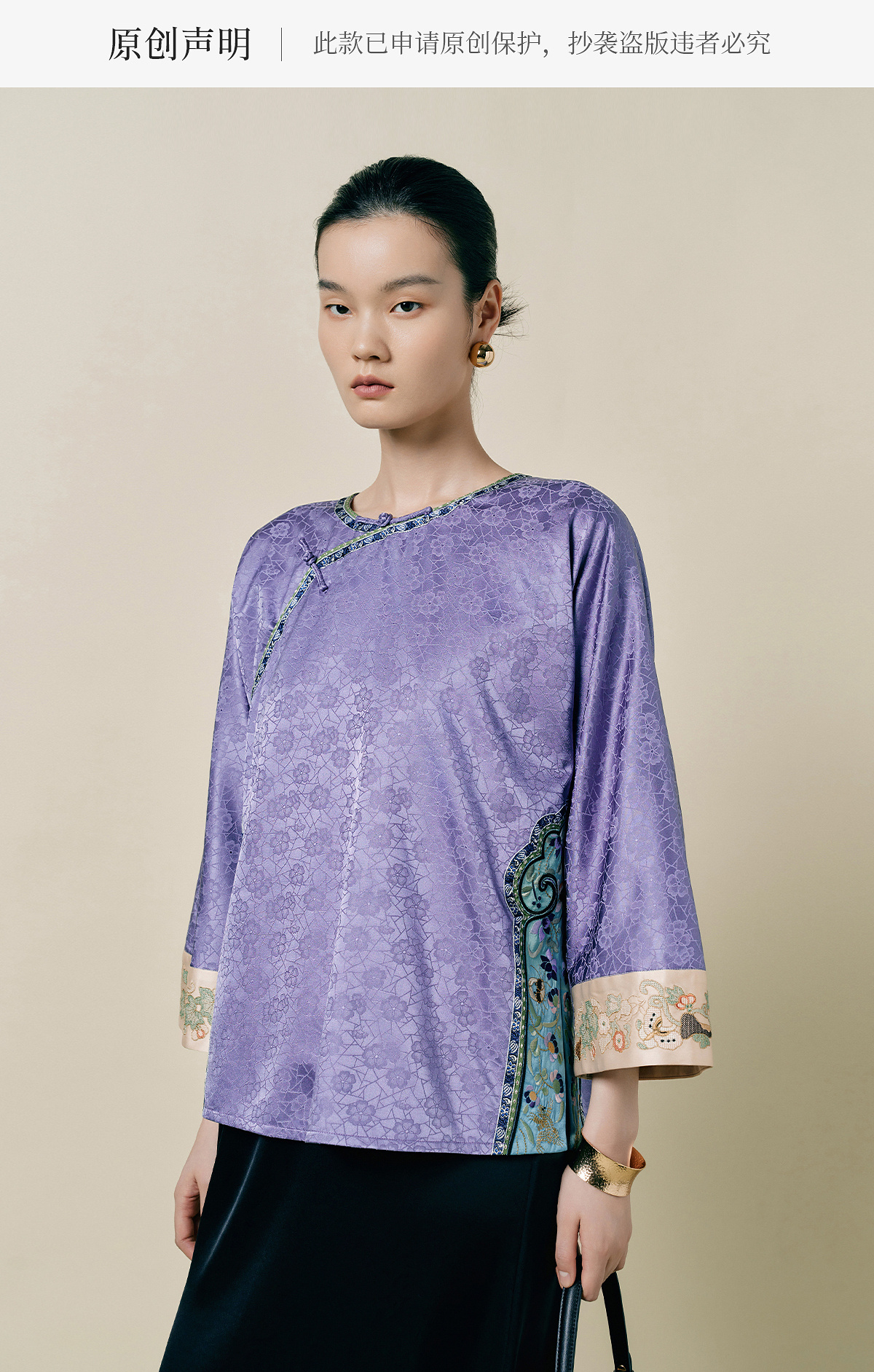 【林栖设计小店】(现货)桑蚕丝衬衣氅衣拼丝棉缎国风2025早秋新款上衣女1953086