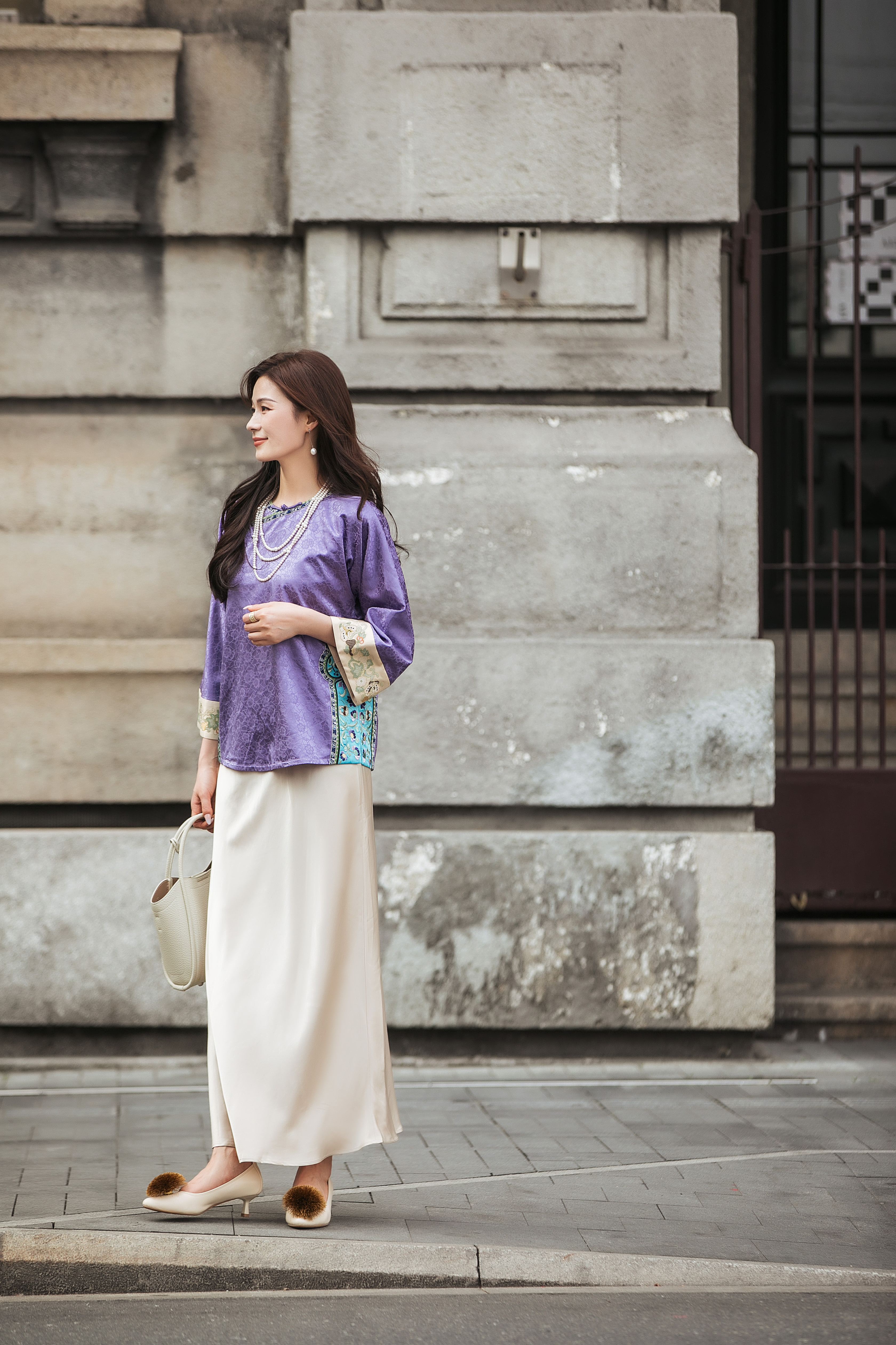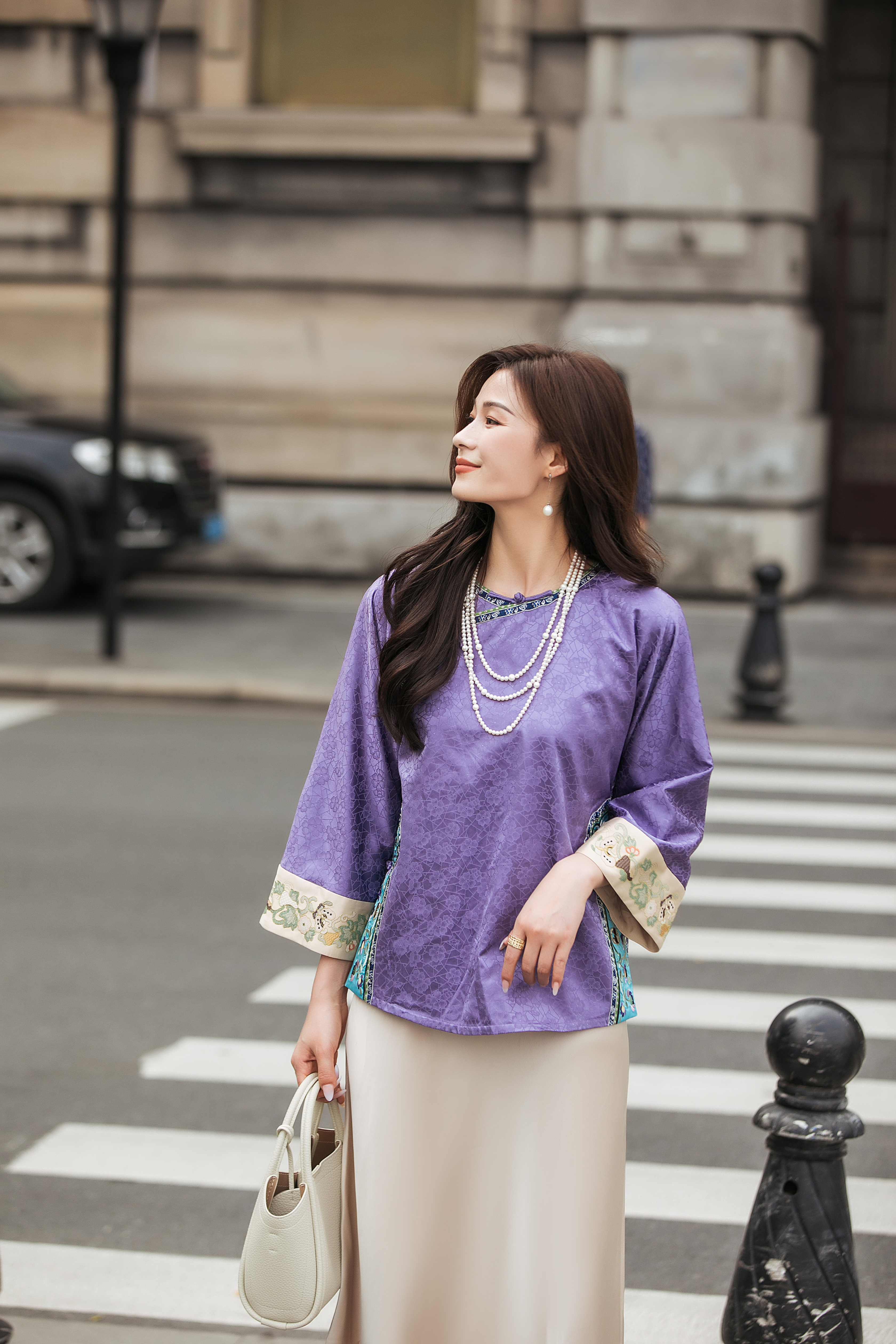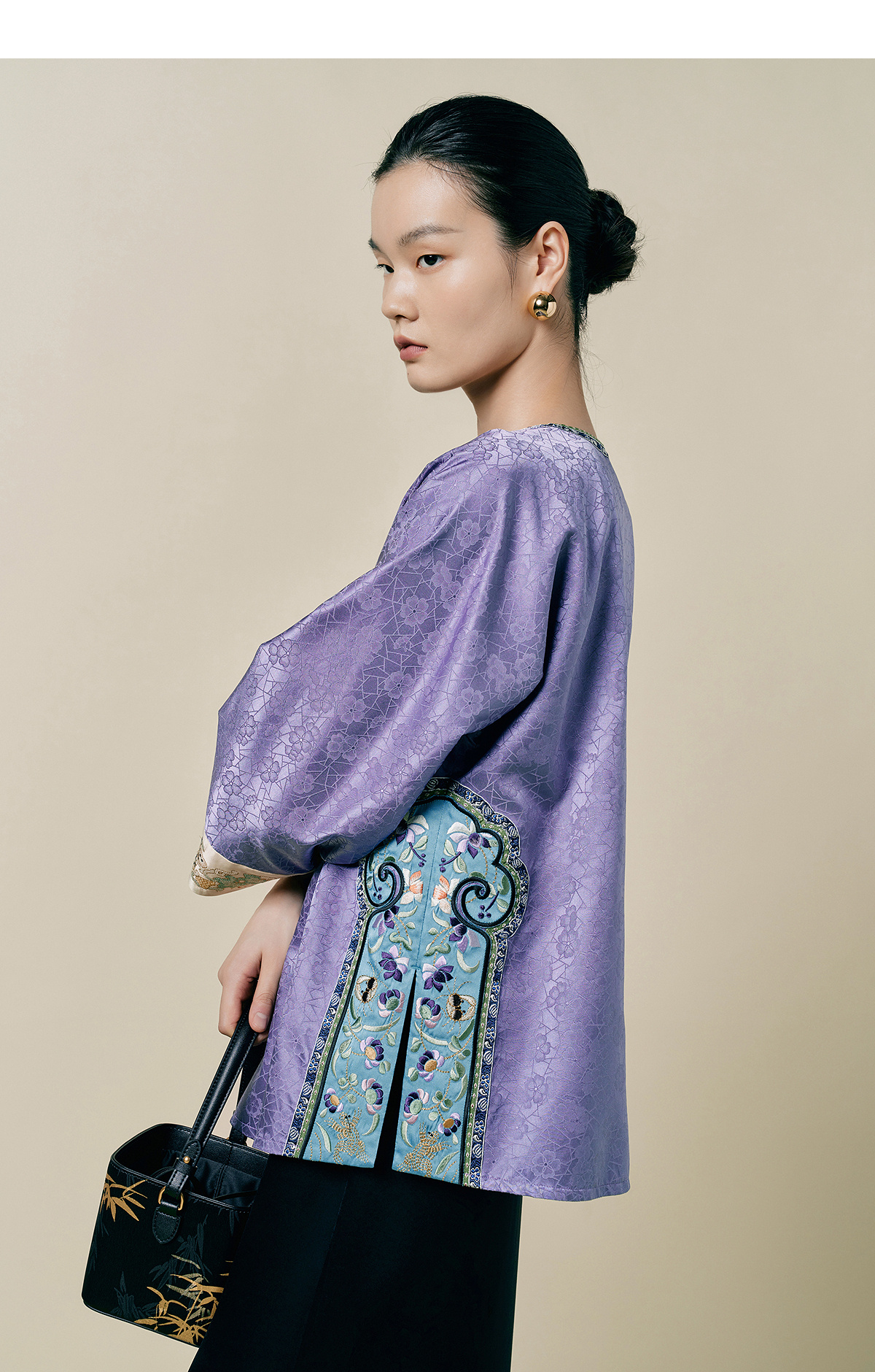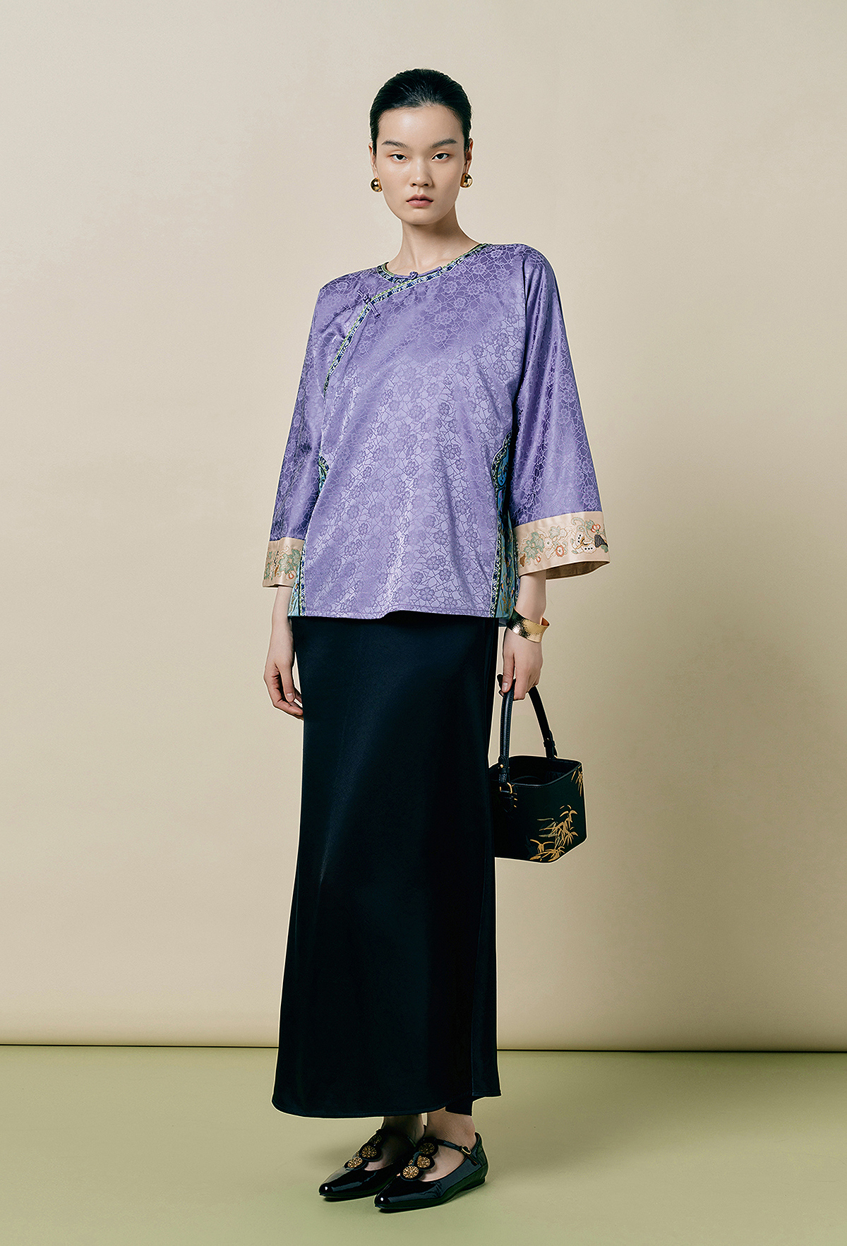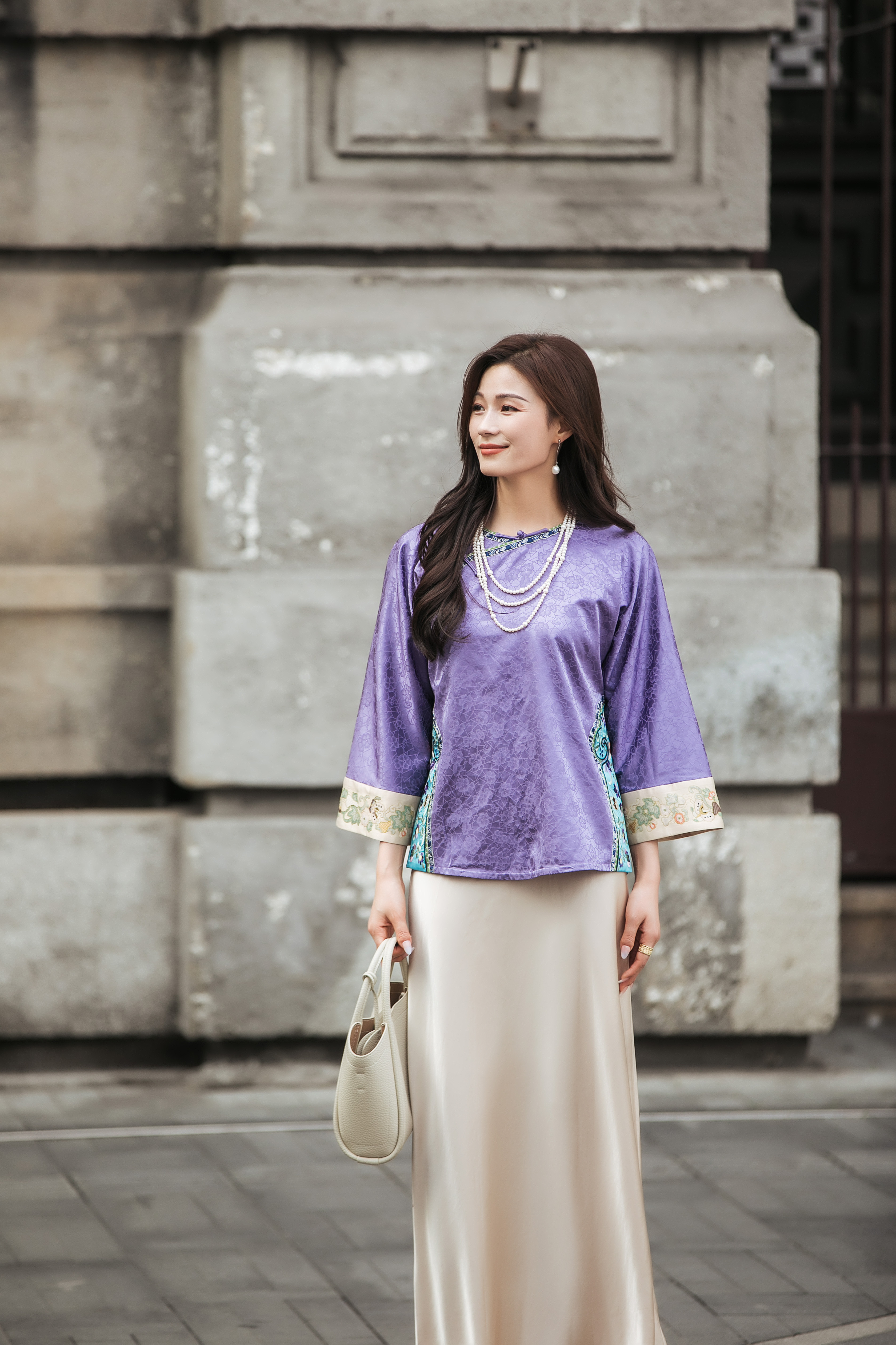 【林栖设计小店】(现货)桑蚕丝衬衣氅衣拼丝棉缎国风2025早秋新款上衣女1953086