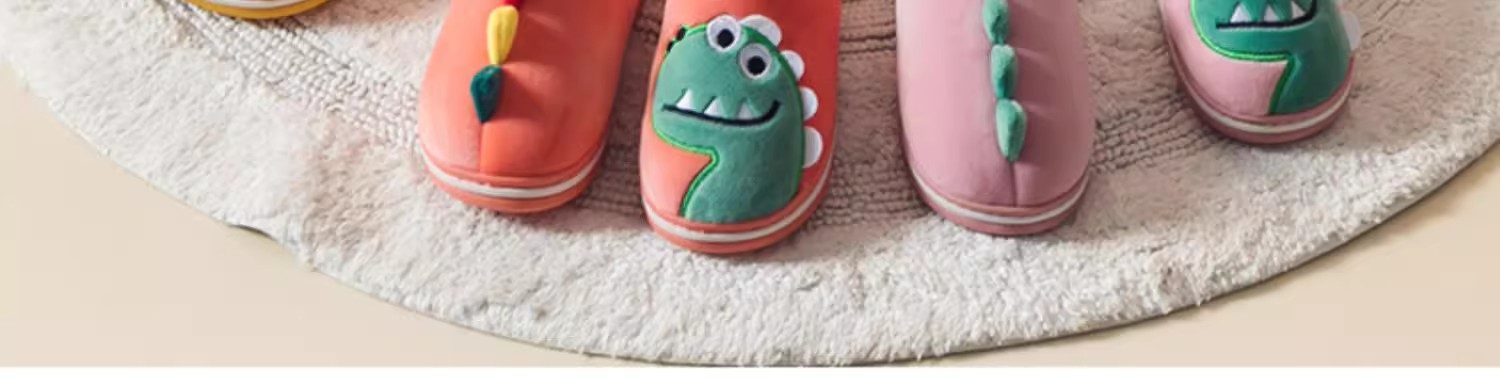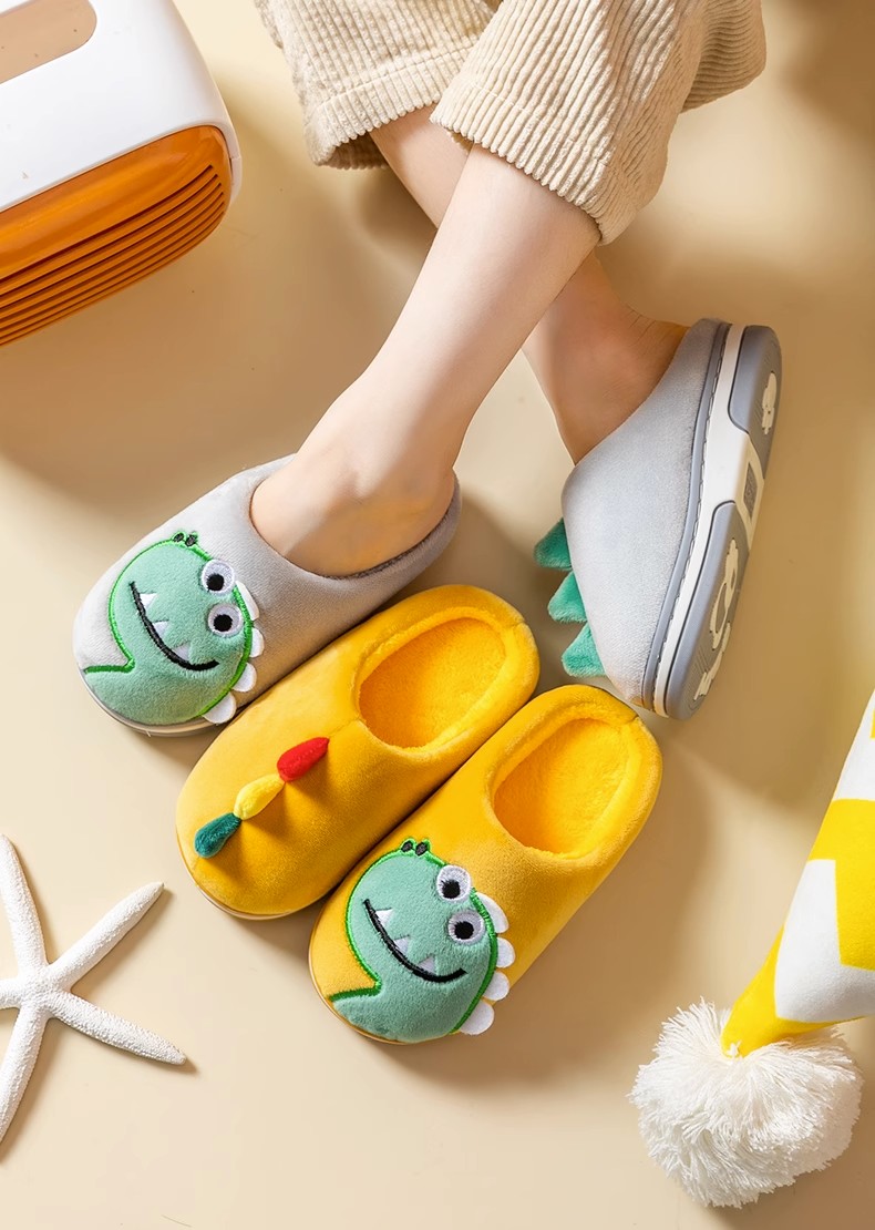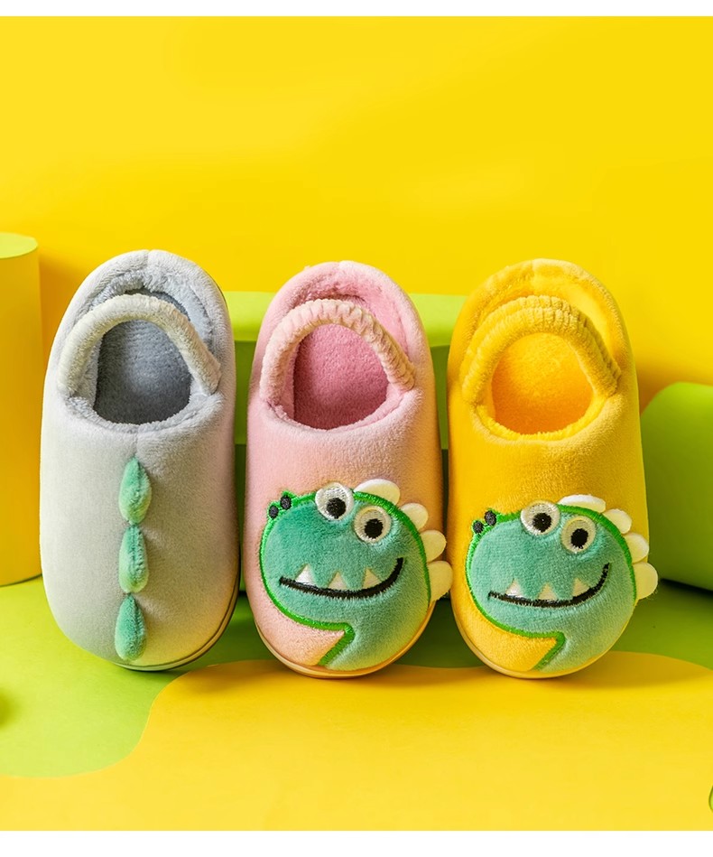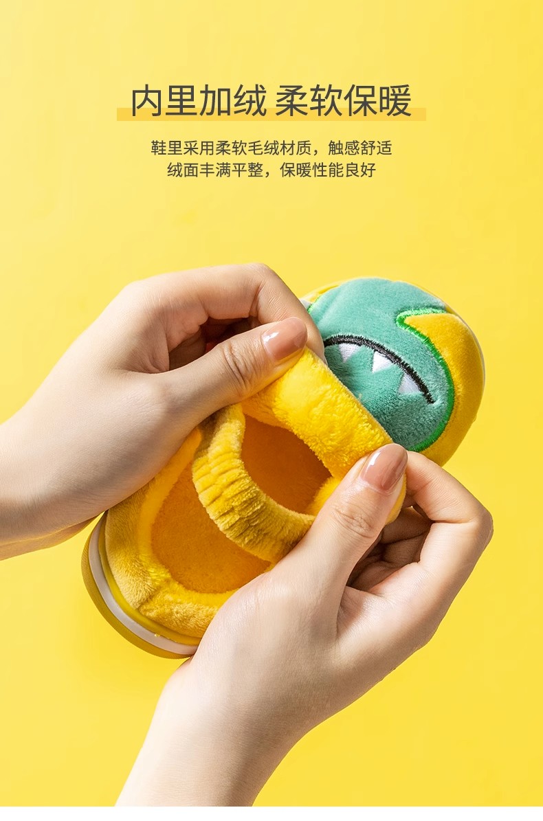 【毛绒内里,呵护双脚!】猪爸爸儿童拖鞋,秋冬男童棉拖鞋,冬季女童宝宝家居鞋,小孩恐龙毛拖鞋