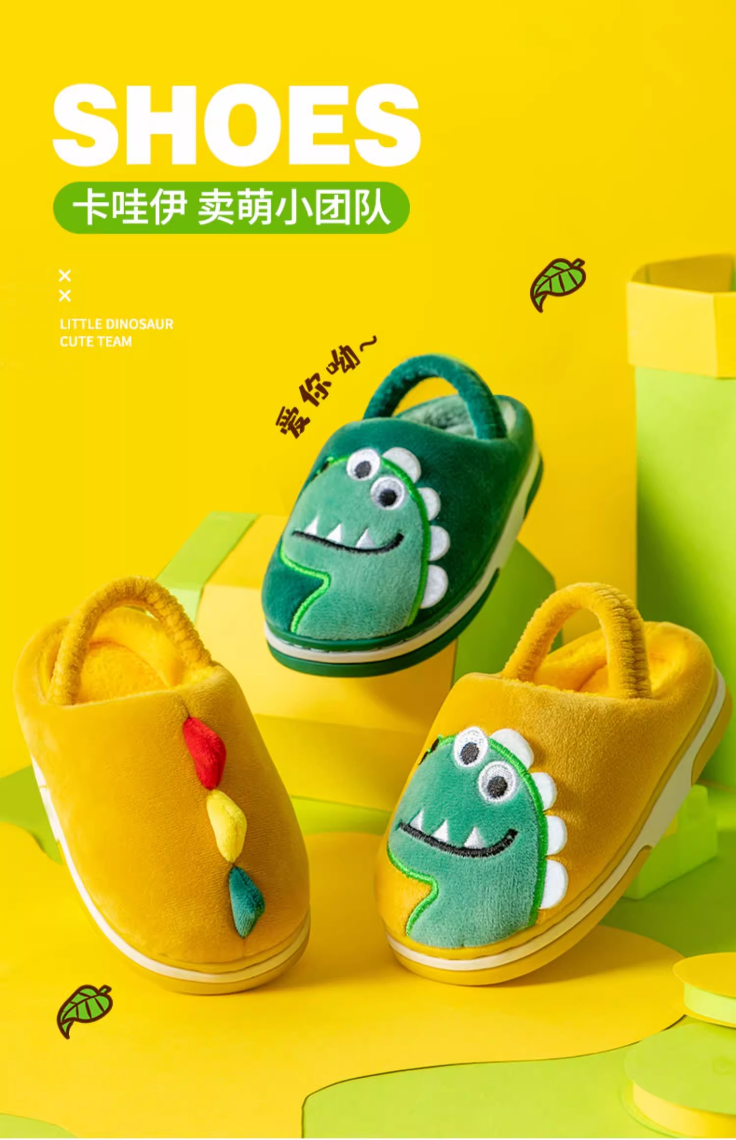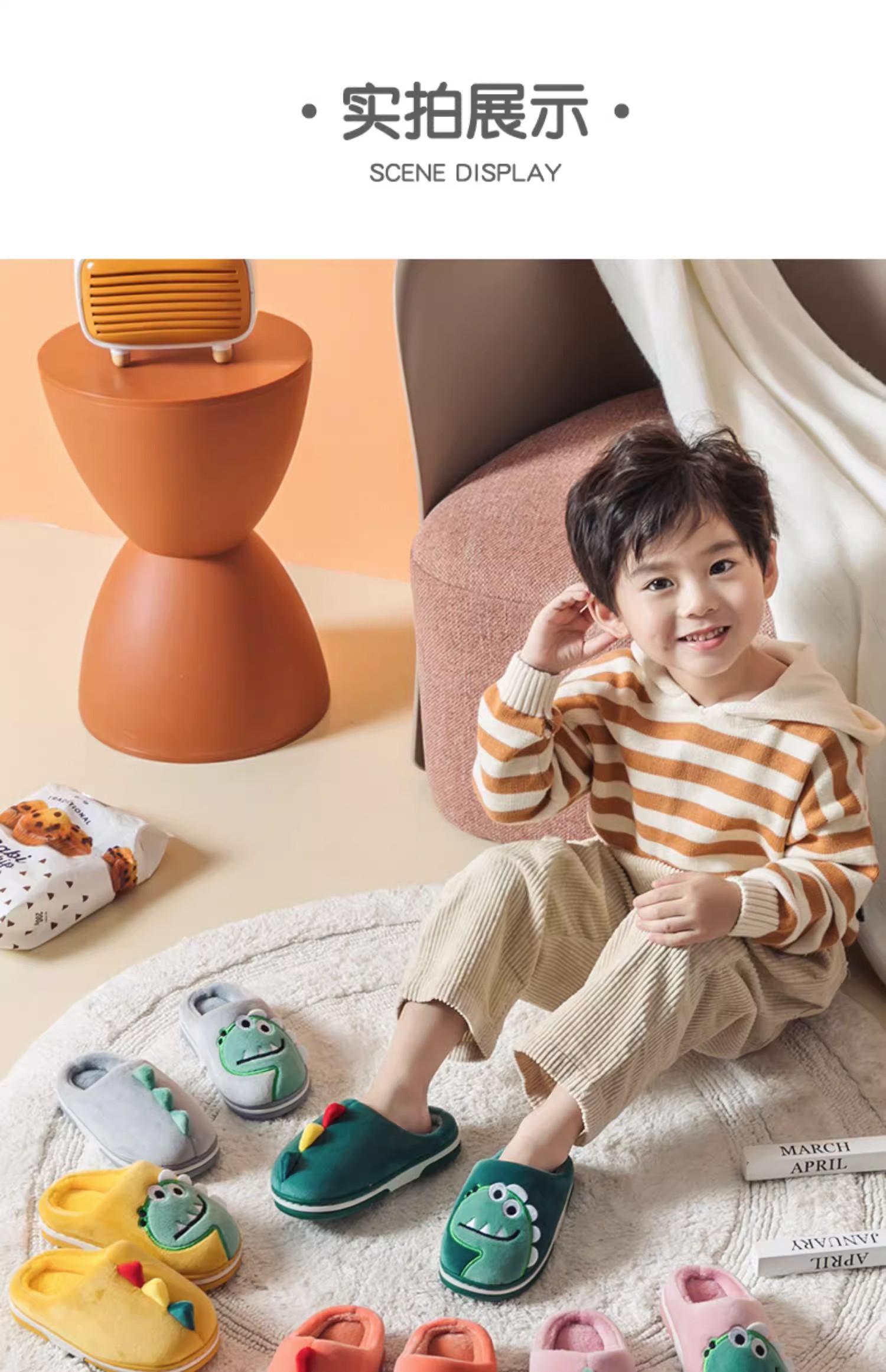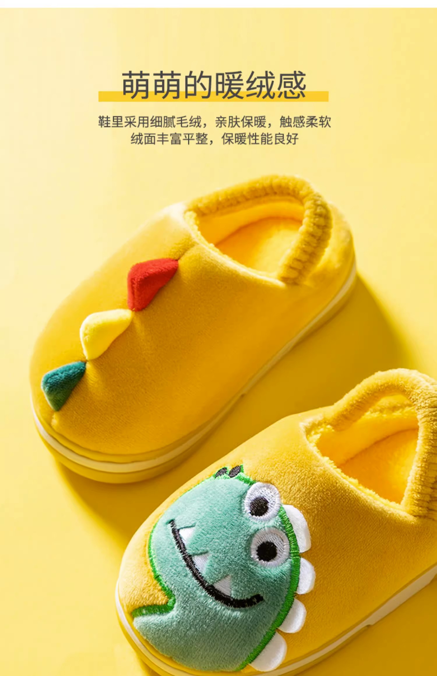 【毛绒内里,呵护双脚!】猪爸爸儿童拖鞋,秋冬男童棉拖鞋,冬季女童宝宝家居鞋,小孩恐龙毛拖鞋