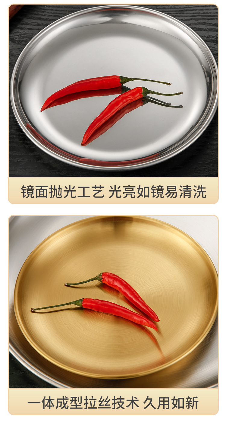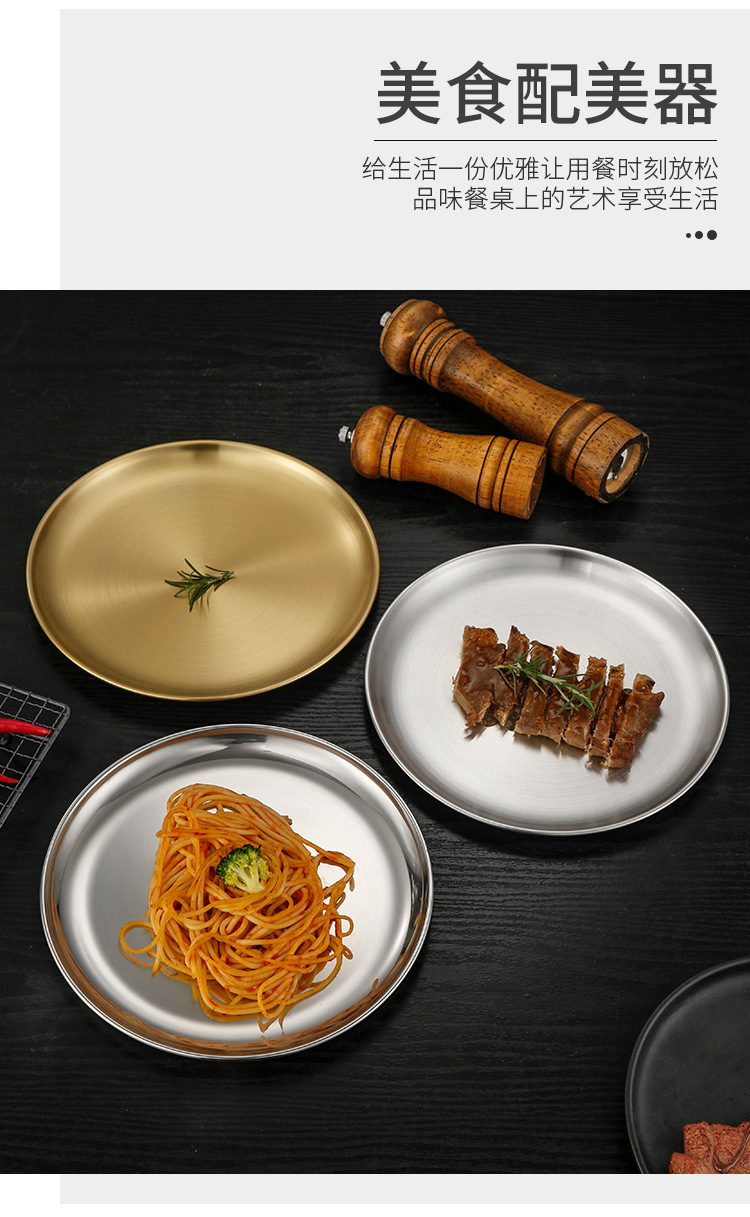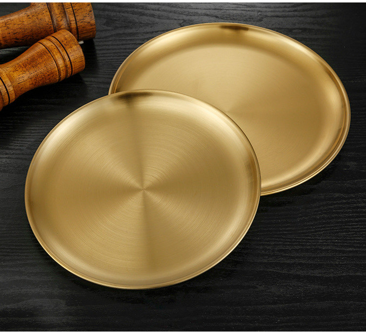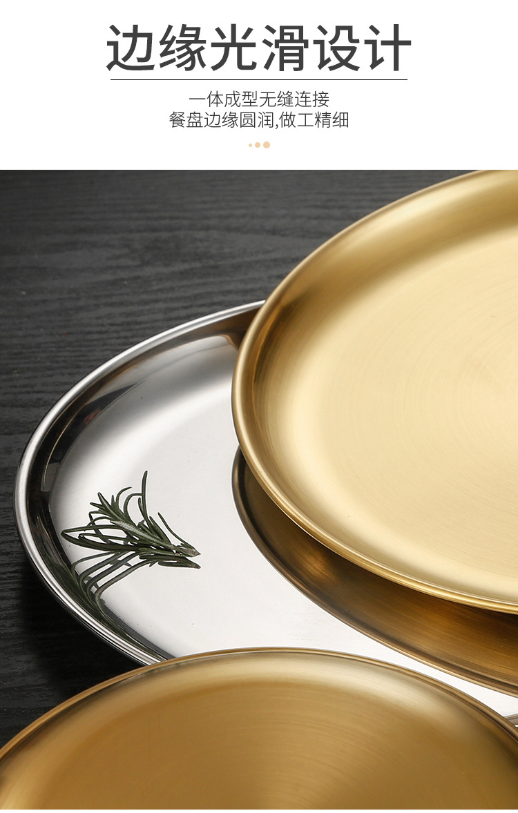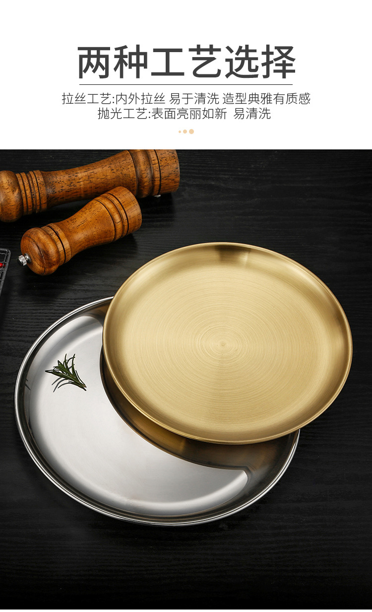 【复古圆盘,304不锈钢创意!】韩式烤肉盘304不锈钢盘自助简约金色托盘圆盘菜盘吐骨碟烧烤盘子