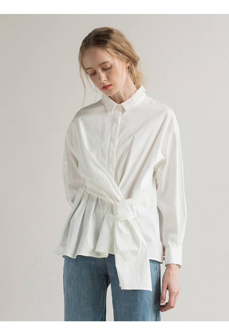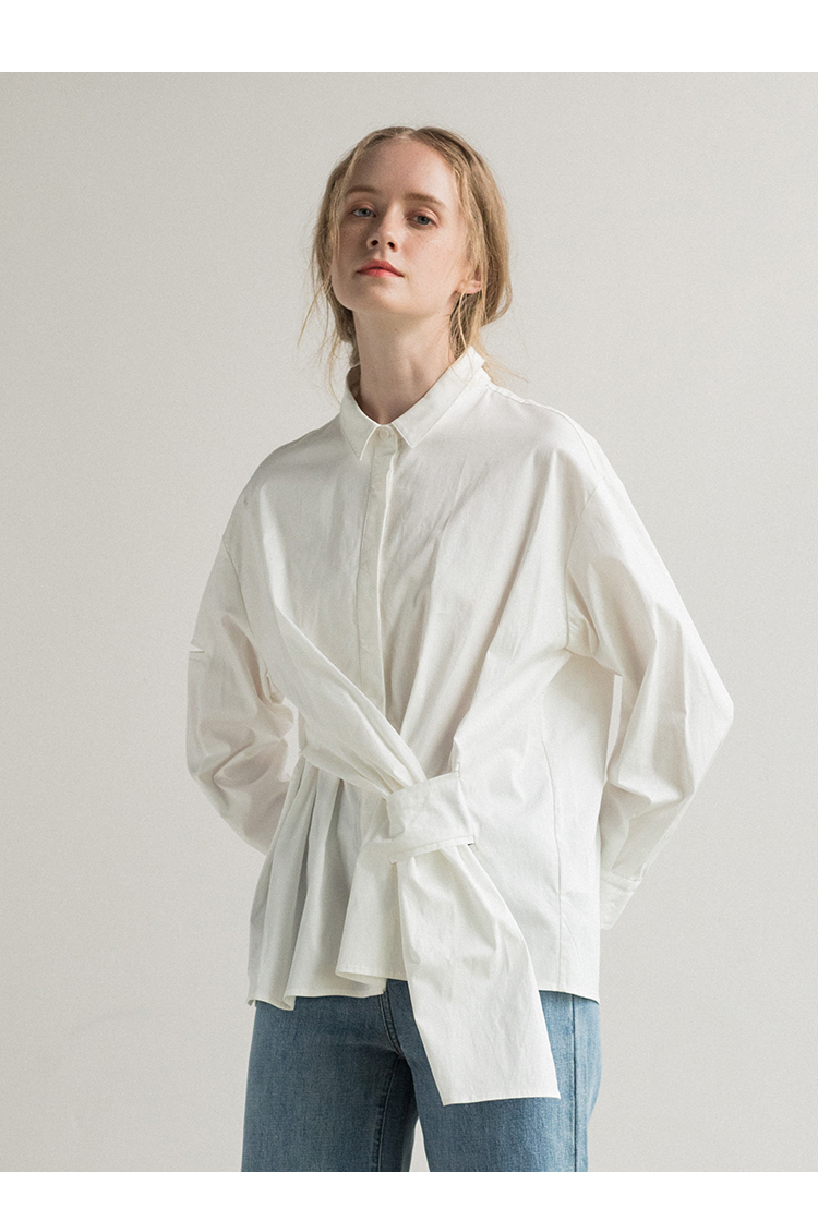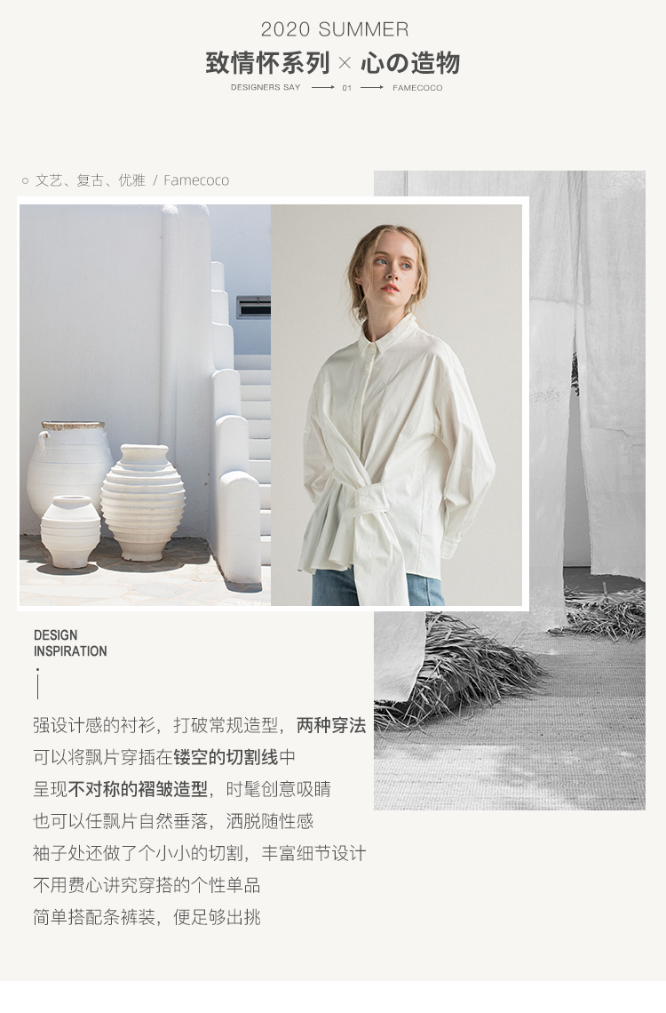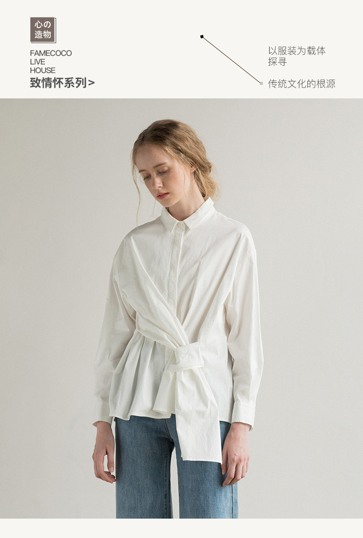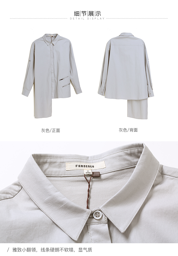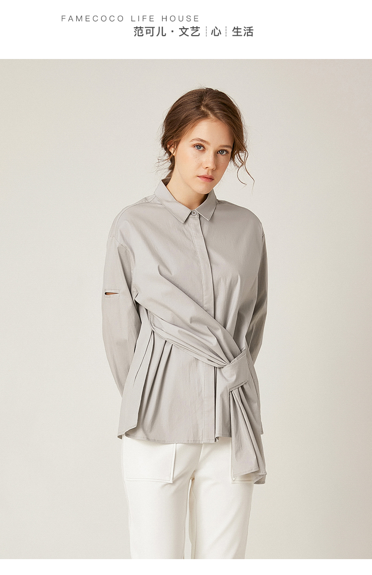 famecoco范可儿长袖纯棉衬衫女秋季白色外穿设计感F195BA006