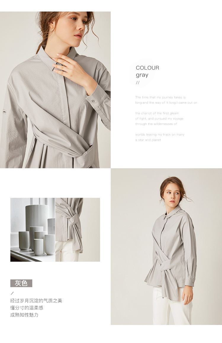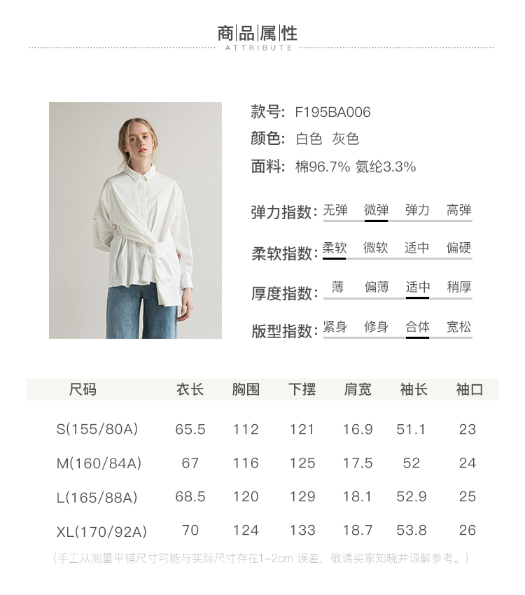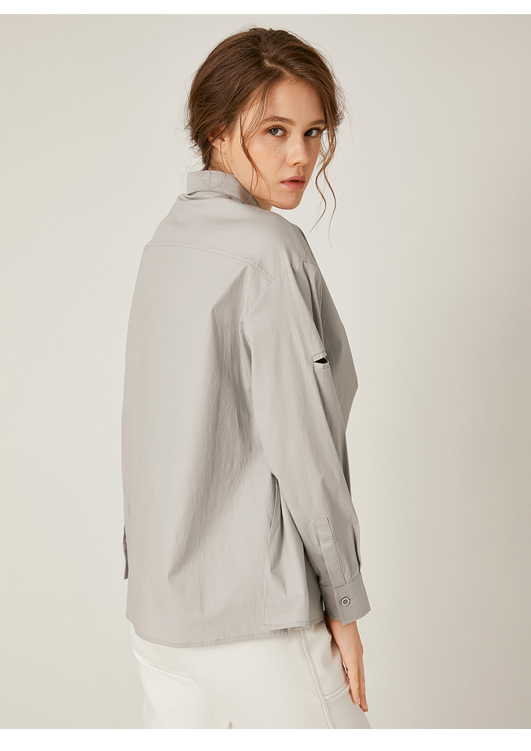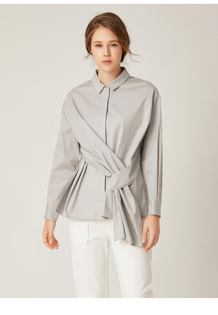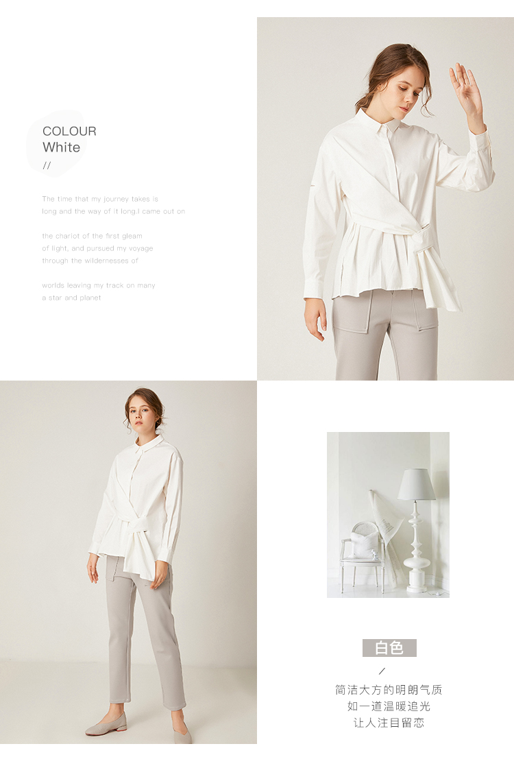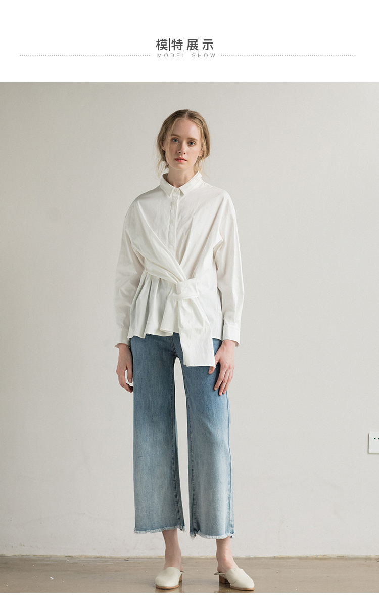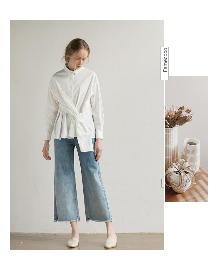 famecoco范可儿长袖纯棉衬衫女秋季白色外穿设计感F195BA006
