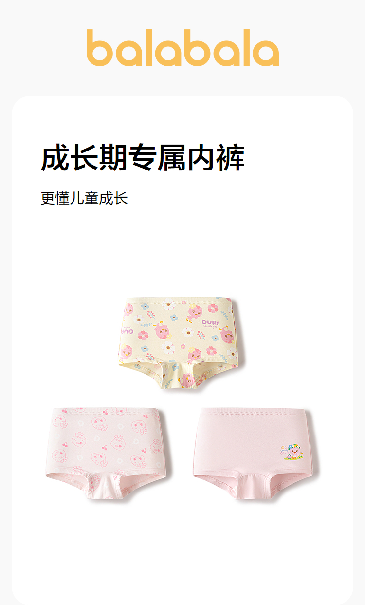 【萌鸡小队IP】巴拉巴拉女童内裤棉平角四角短裤抗菌不夹P三条装