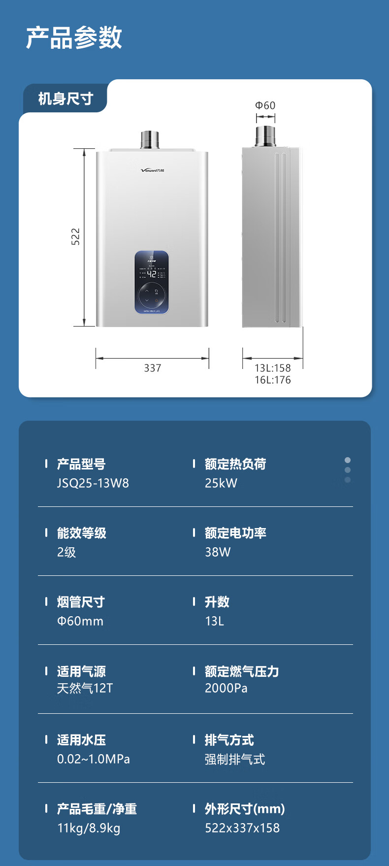万和 16升 燃气热水器 水伺服恒温 WiFi智能互联 多种洗浴模式 低水压启动JSQ30-16W8-12T(天然气)