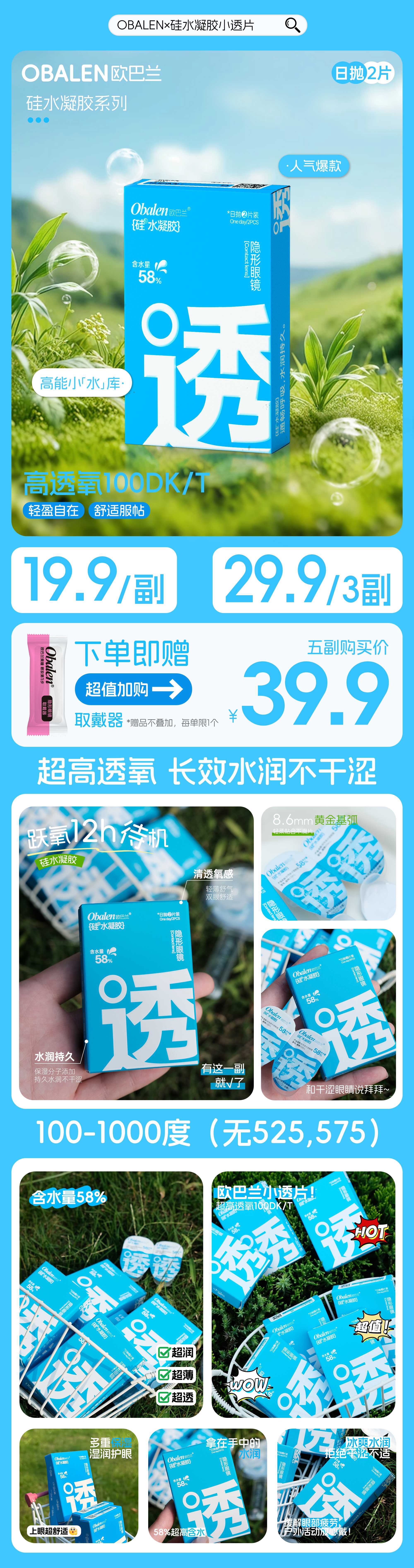 Obalen硅水凝胶透明片日抛一盒两片