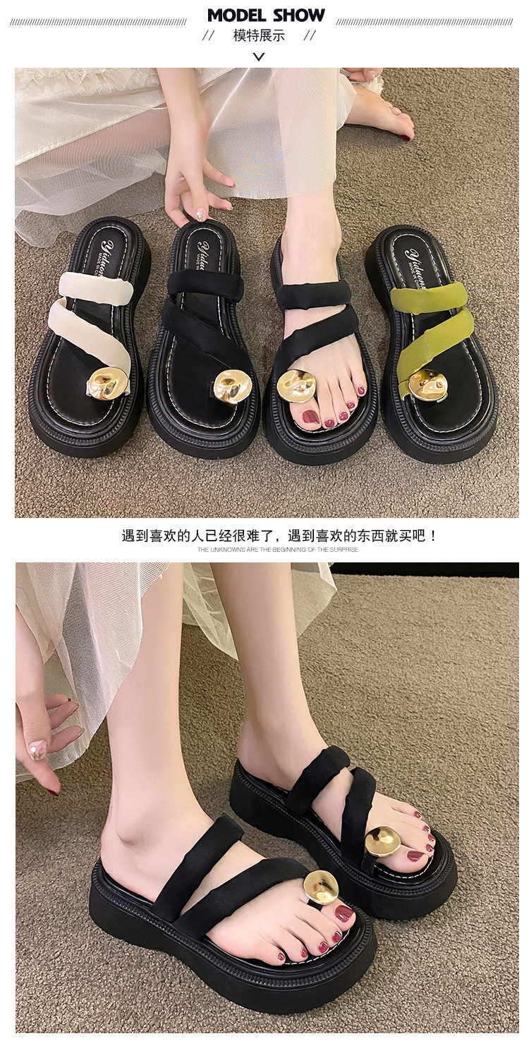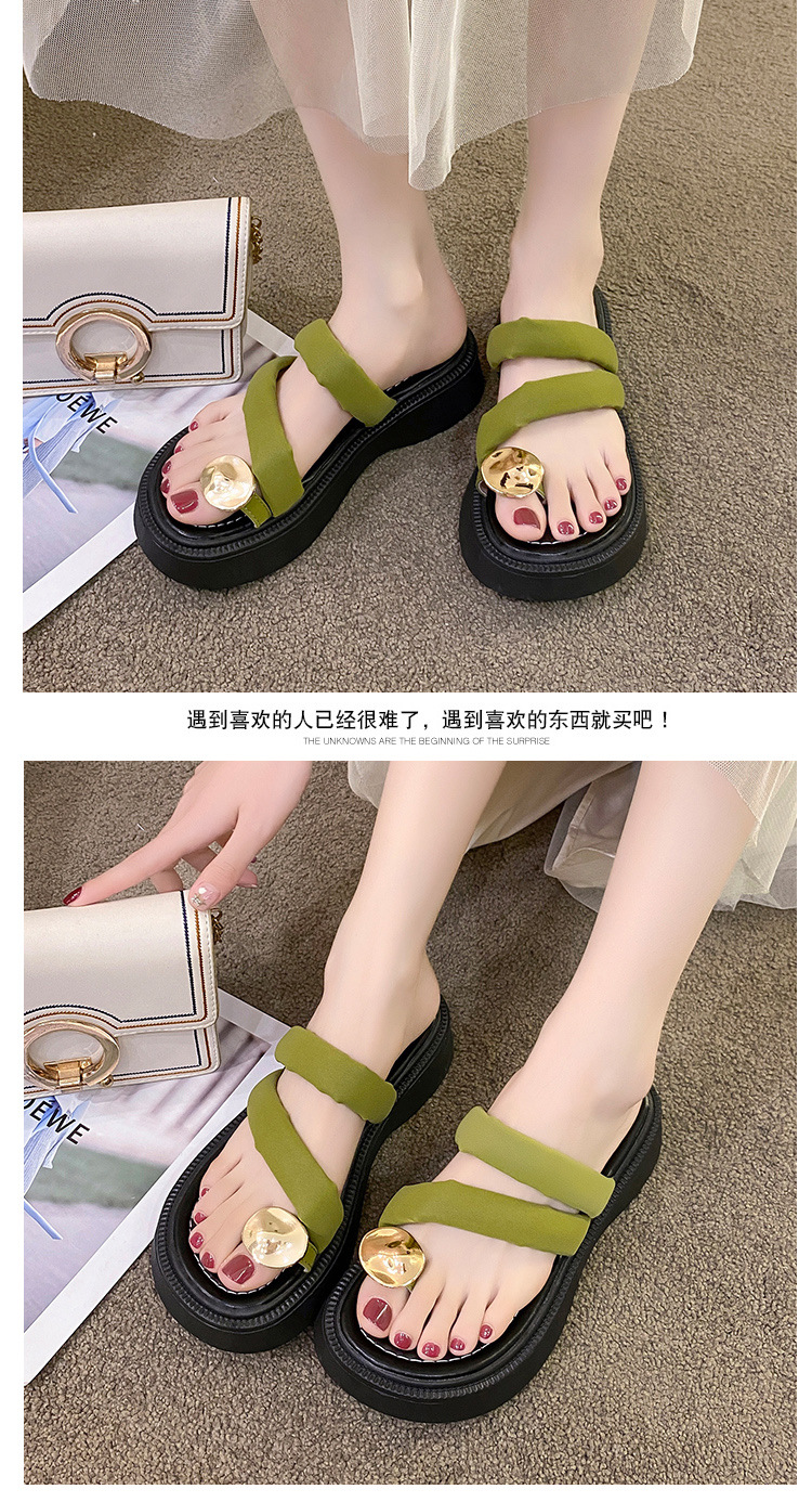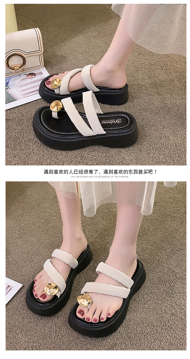 【YW】无忧购韩版休闲小个子外穿百搭金属扣夹趾凉拖鞋2380(截单后3-5天发货)