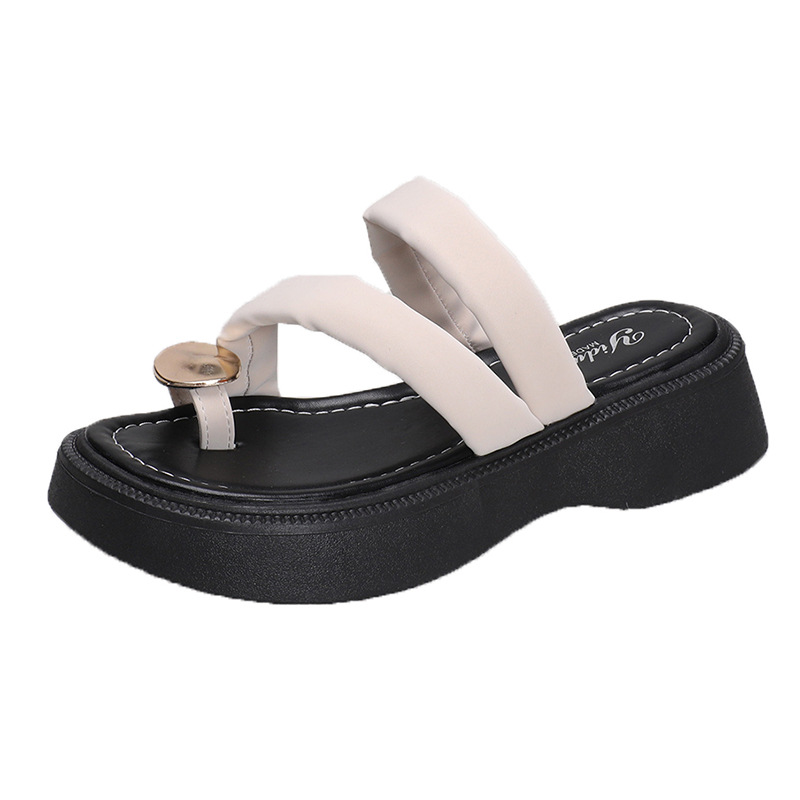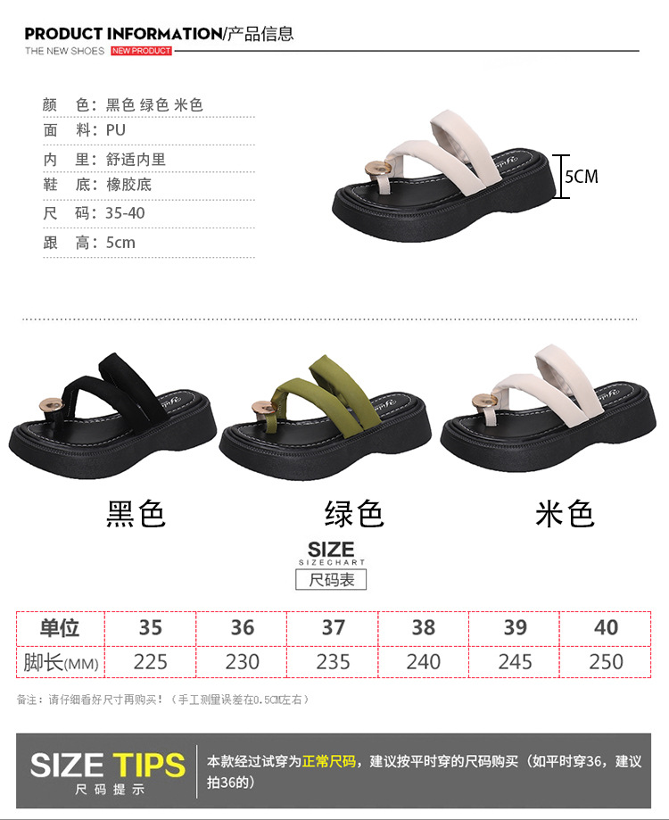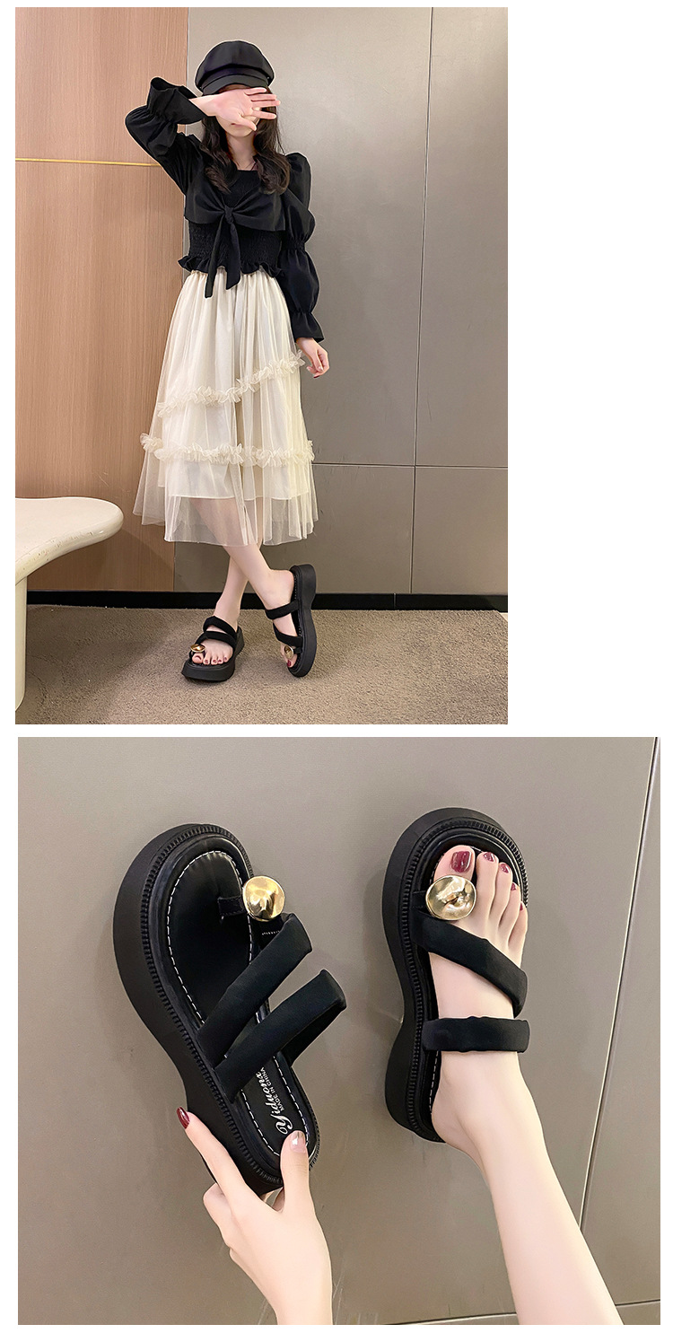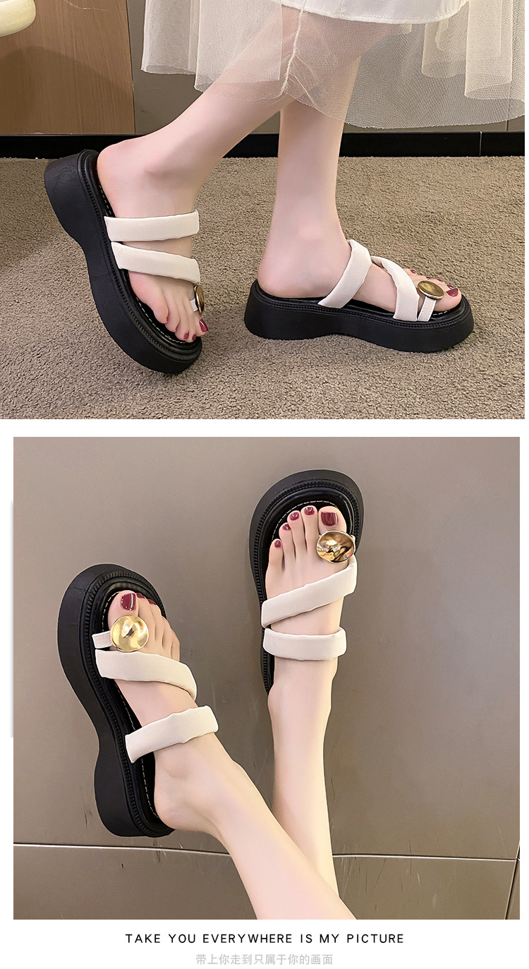 【YW】无忧购韩版休闲小个子外穿百搭金属扣夹趾凉拖鞋2380(截单后3-5天发货)