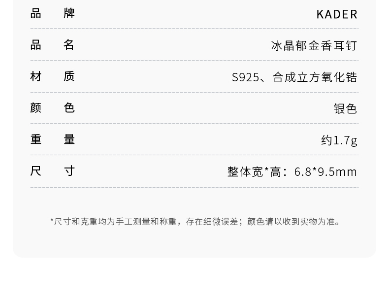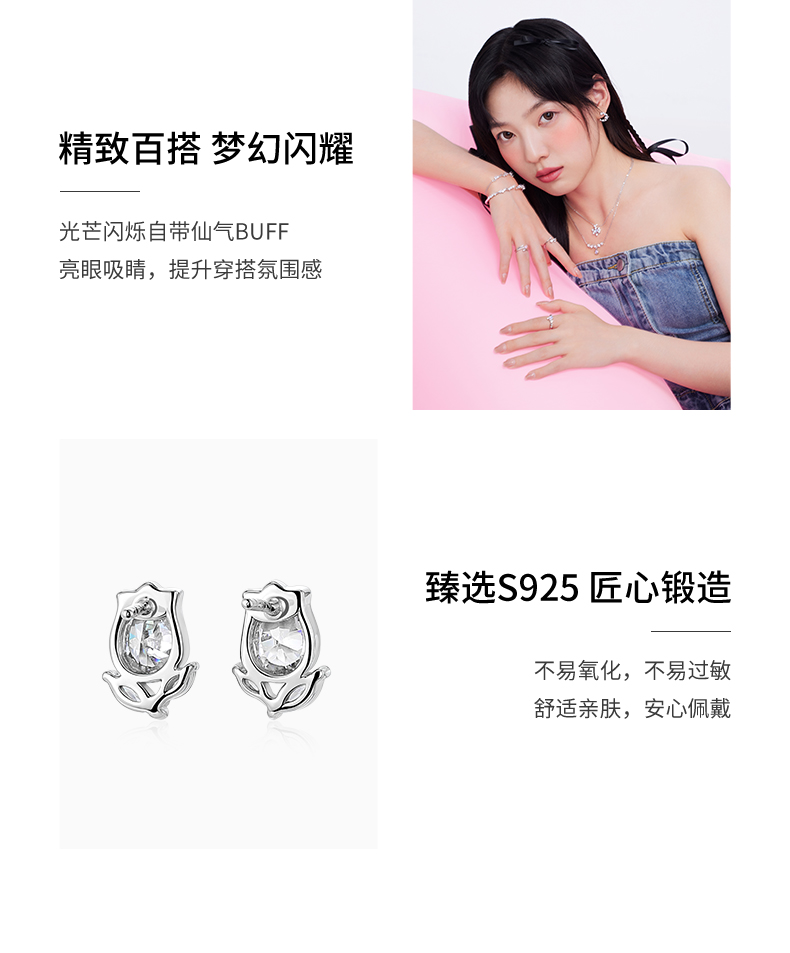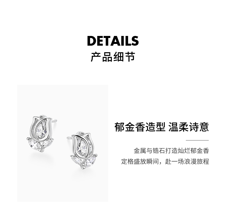KADER卡蒂罗 冰晶郁金香耳钉 925银耳饰高级感耳饰女气质2024年新款小众