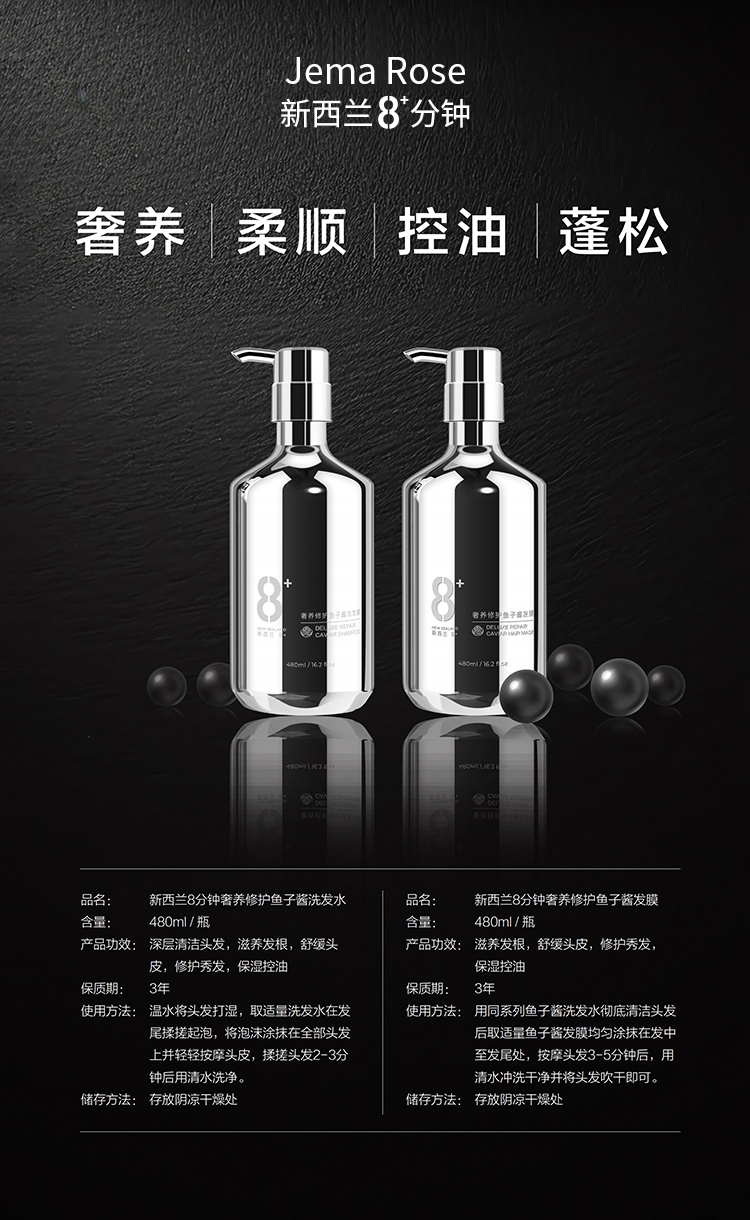 【中欧班列精选】新西兰Jema Rose 八分钟奢养修护鱼子酱洗发露480ml/瓶 cs