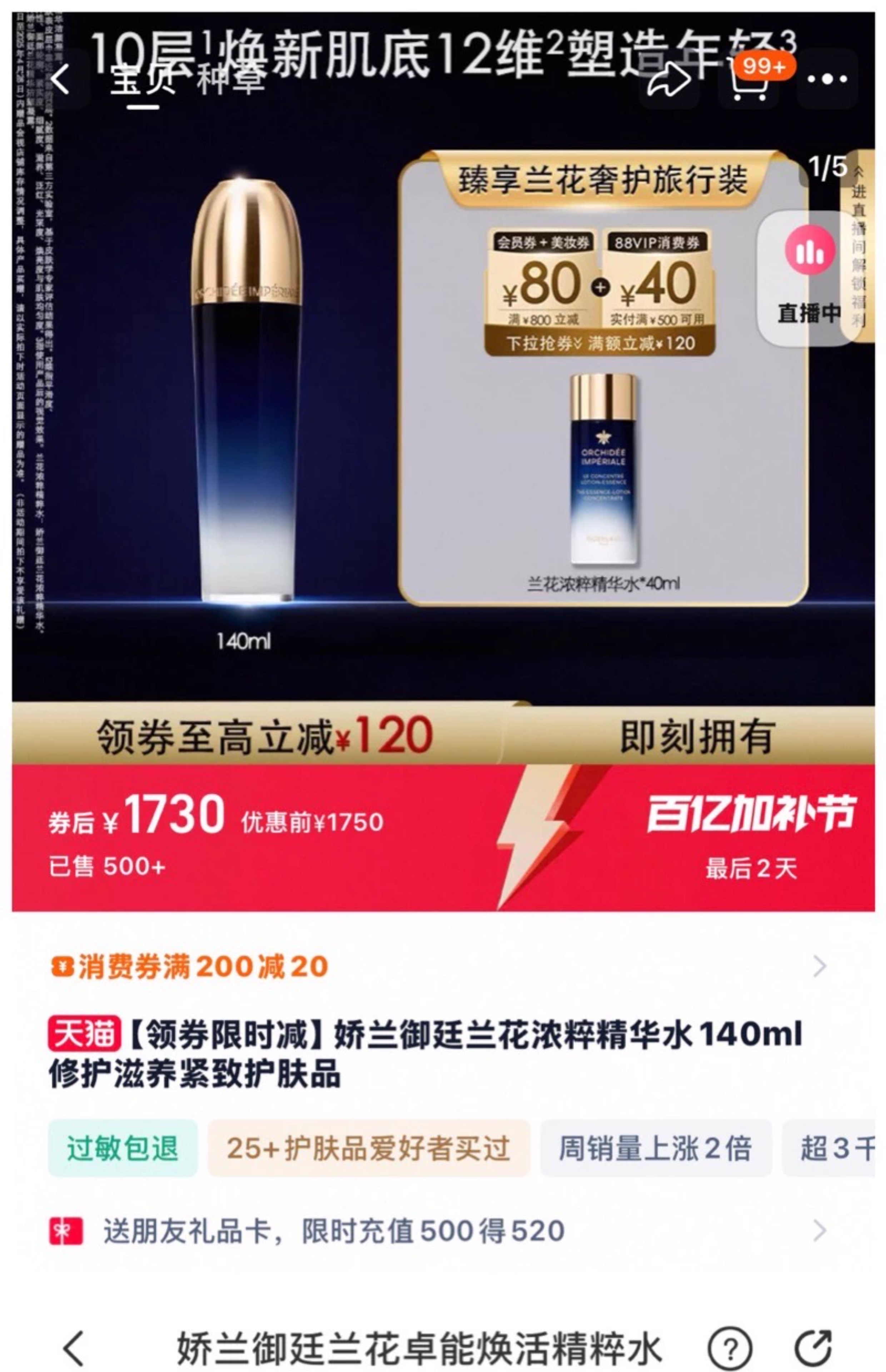 兰花紧致抗皱水抵御蓝光修复抗老增强弹性提拉120ml