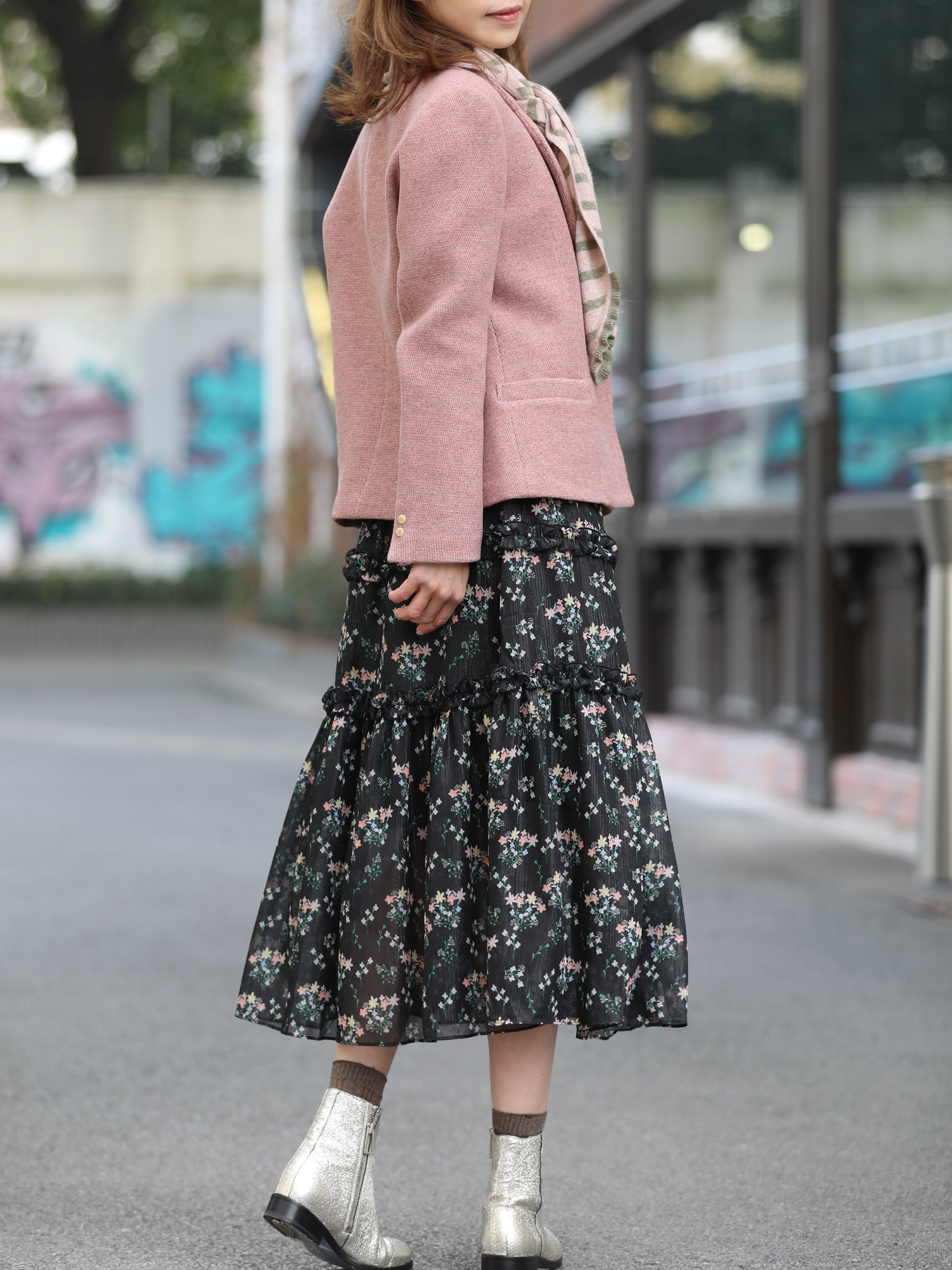 TYNVIE 栗色条纹侧袋欧根纱半身裙