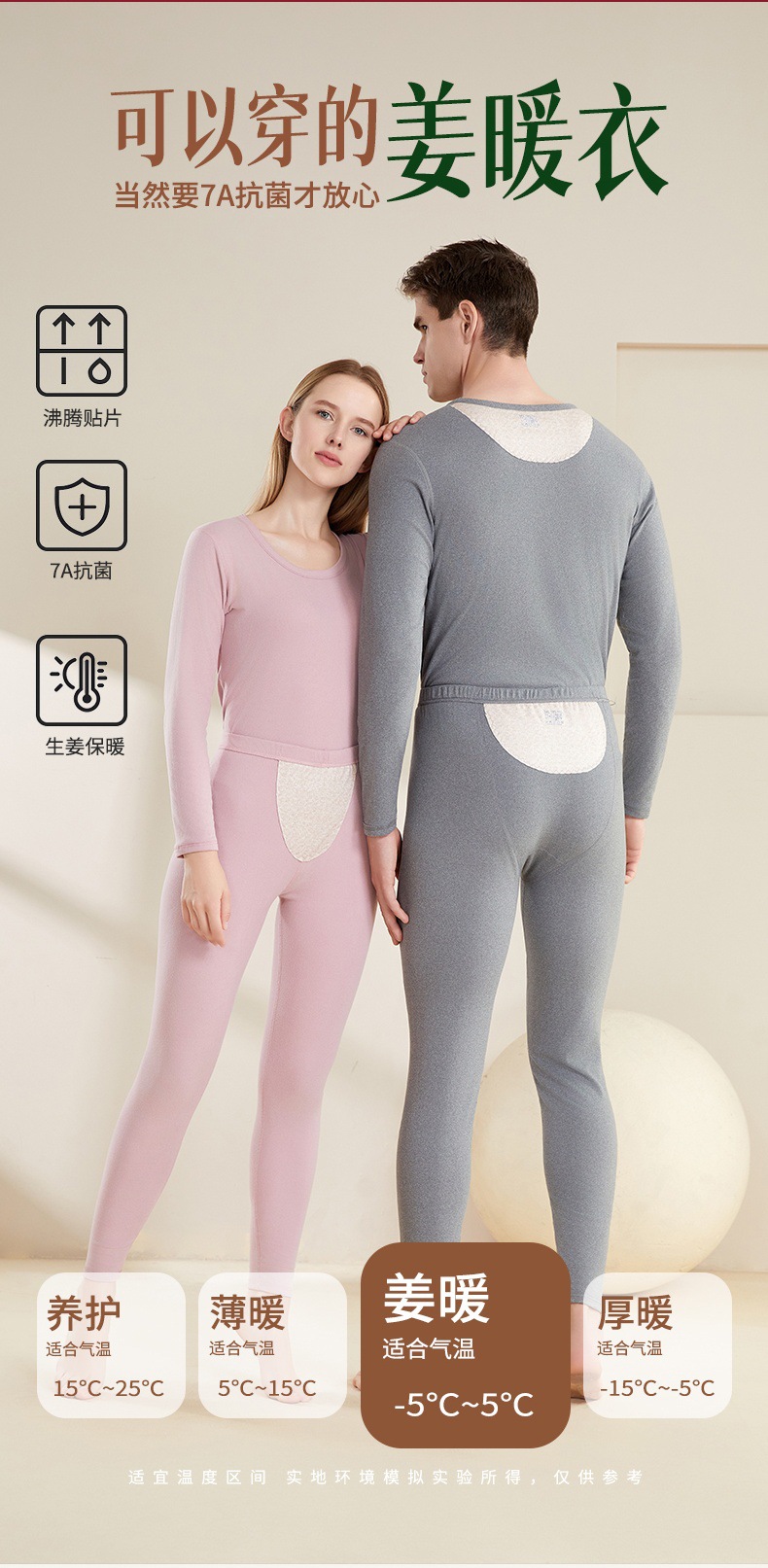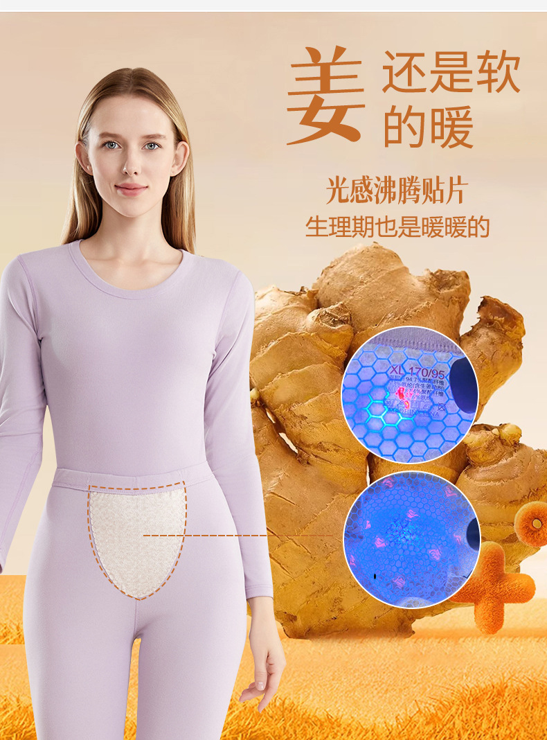 光感沸腾生姜贴片保暖内衣、秋衣秋裤套装、德绒发热无痕保暖内衣、秋冬季上衣裤子