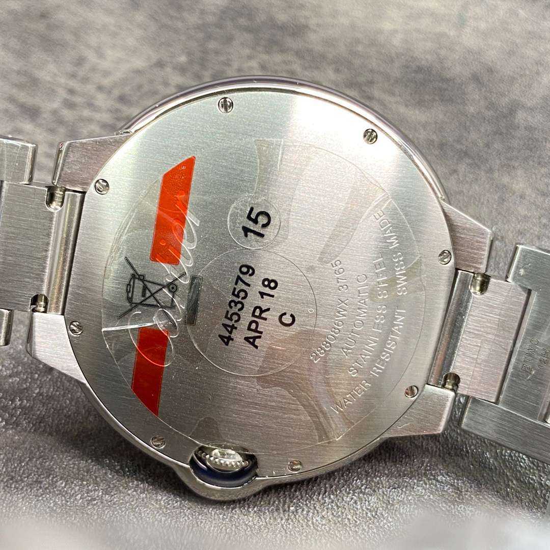Cartier卡地亚蓝气球系列大号42mm【表壳】修正市面任何版本,最新原版开模,花费大量精力投入只为呈现 复刻,表壳厚度 壳套构造 都可以与原装正品同步,所有配件都支持通用互换,【力求完美,精益求精】表壳 内胆 玻璃 机芯 表面 后盖 表针以及把头尖晶石都与原装正品毫无差异,整体效果与神韵都同步原版。【最大亮点—-机芯】卡地亚蓝气球系列2015年以后均采用自产1847MC型机芯.为还原正品CR厂采用日本进口9015机芯改1847MC,力求做到零返修,从内而外最大程度娉美原版,2824机芯也同步上市,同宗同源 任君选择,蓝宝石水晶玻璃鱼眼效果 三点位斜坡完美月牙 应有尽有,表带可选牛皮 鳄鱼皮 钢带 CR出品,市场唯一一家做到三码合一的厂家(既吊牌 后盖 保卡统一编号一表一号绝不重复)秒杀市面上一切版本, 演绎销量神器,欢迎品鉴