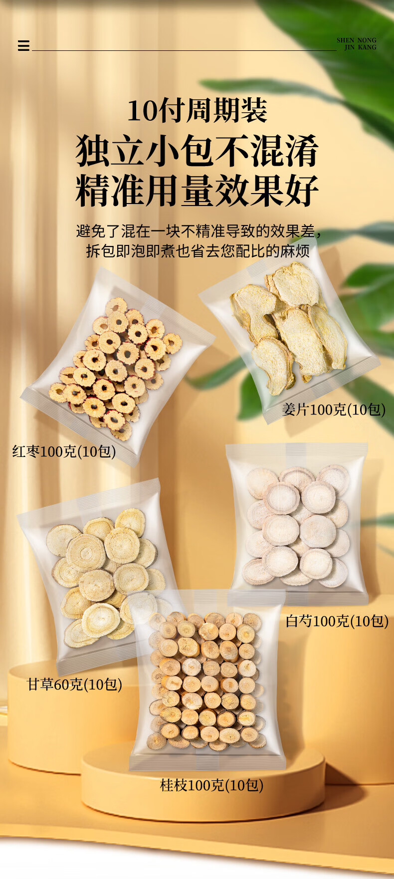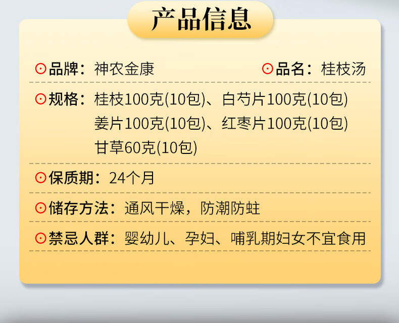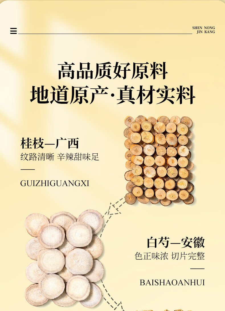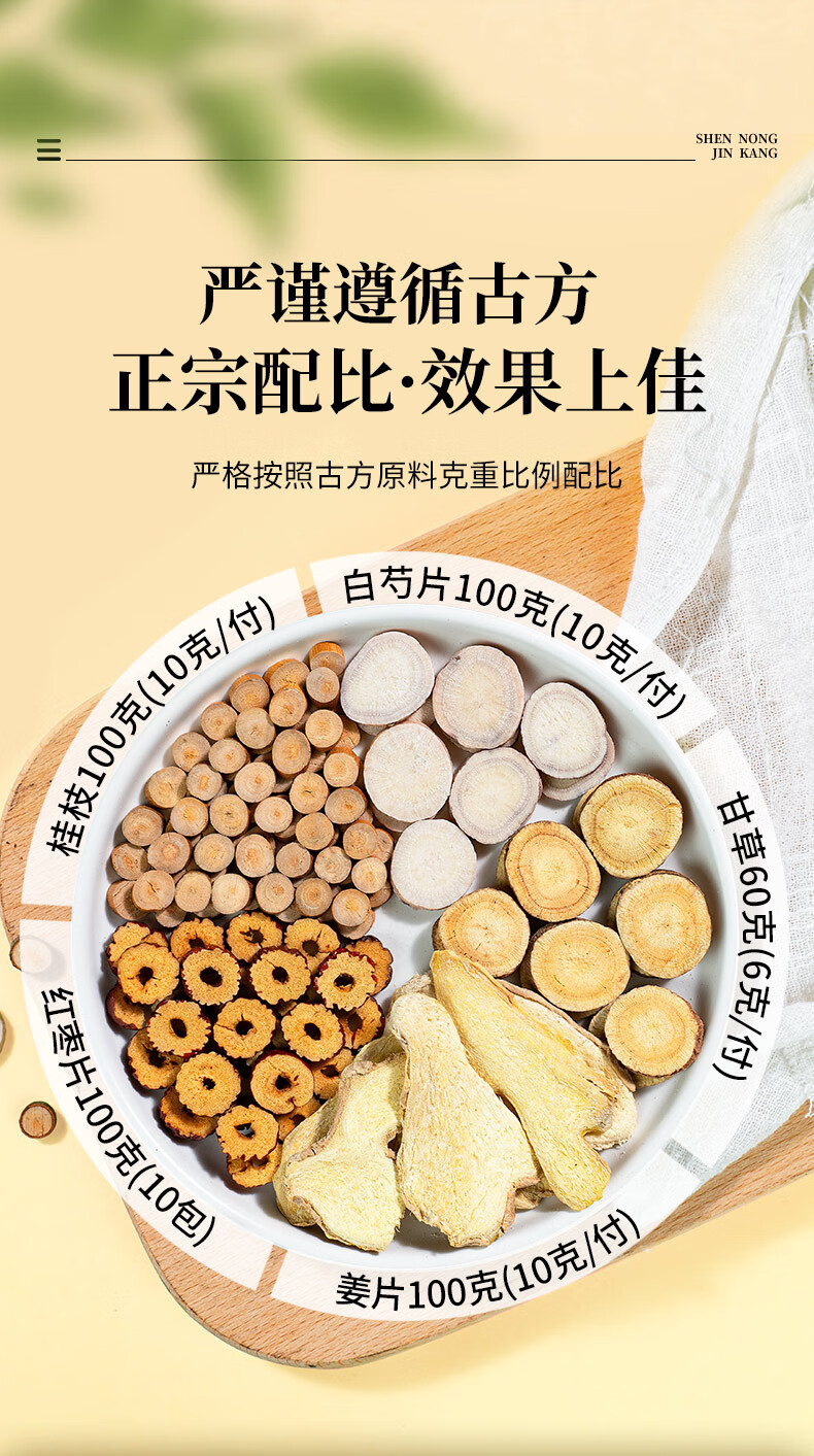 神农金康 桂枝汤组合460克10付独立小包甘草干姜汤升级桂枝白芍姜片红枣甘草道地煲汤中药材养生滋补