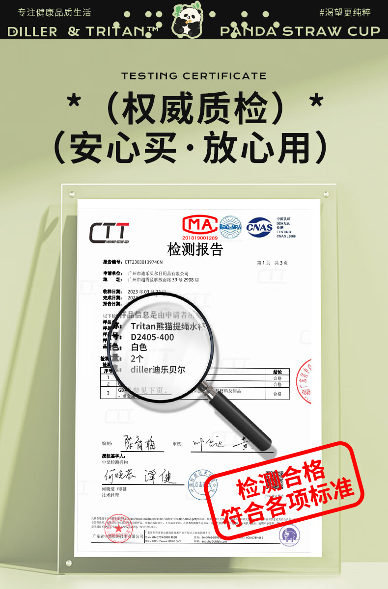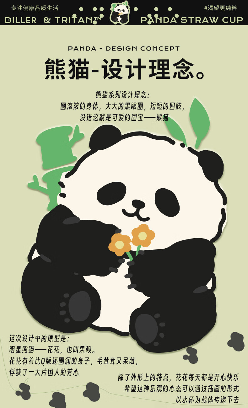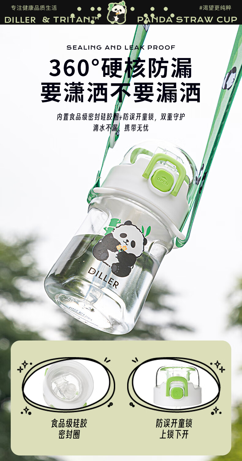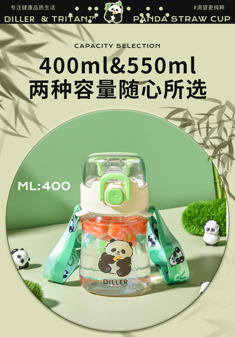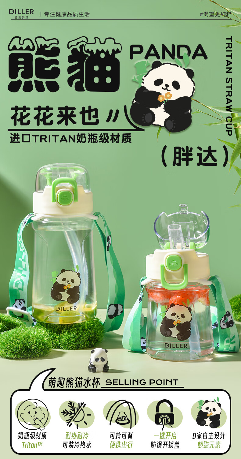 迪乐贝尔熊猫提绳水杯D2405