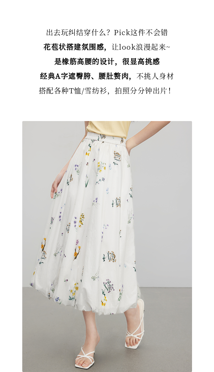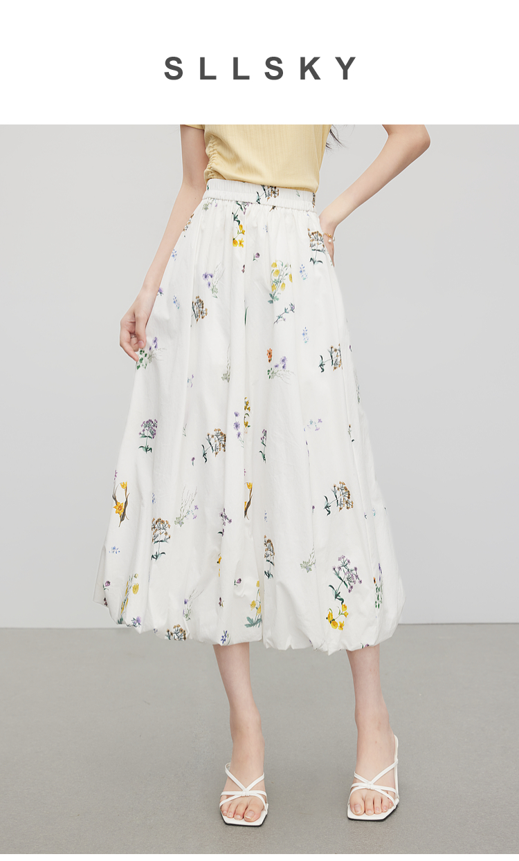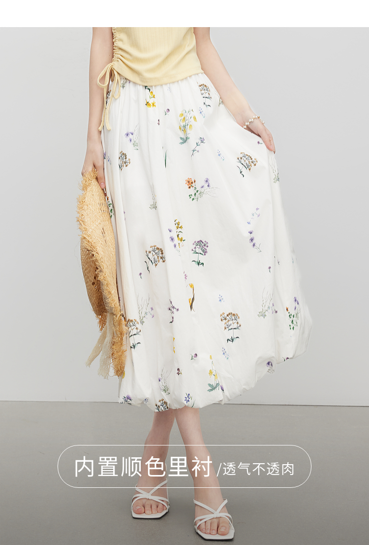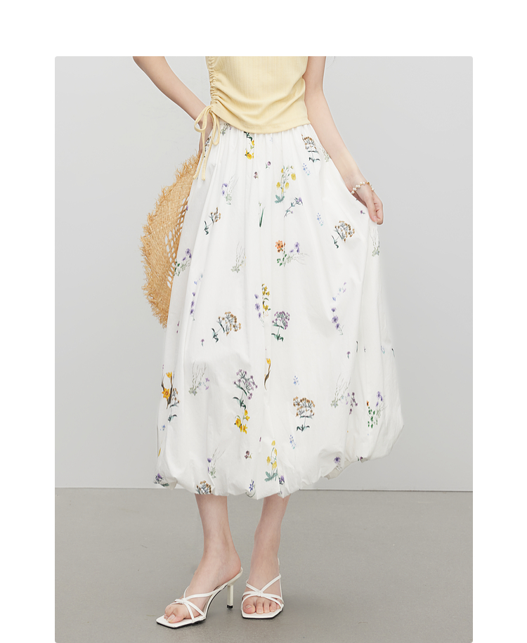 【07/16新品】熙世界法式植物碎花a字花苞裙女夏季休闲高腰独特漂亮气质半身裙
