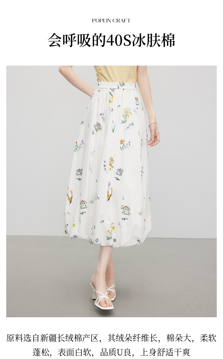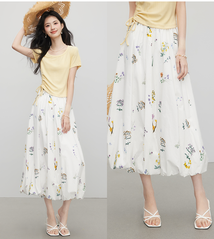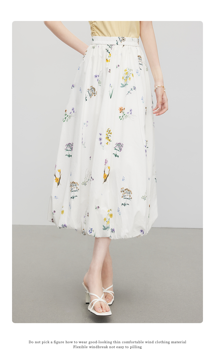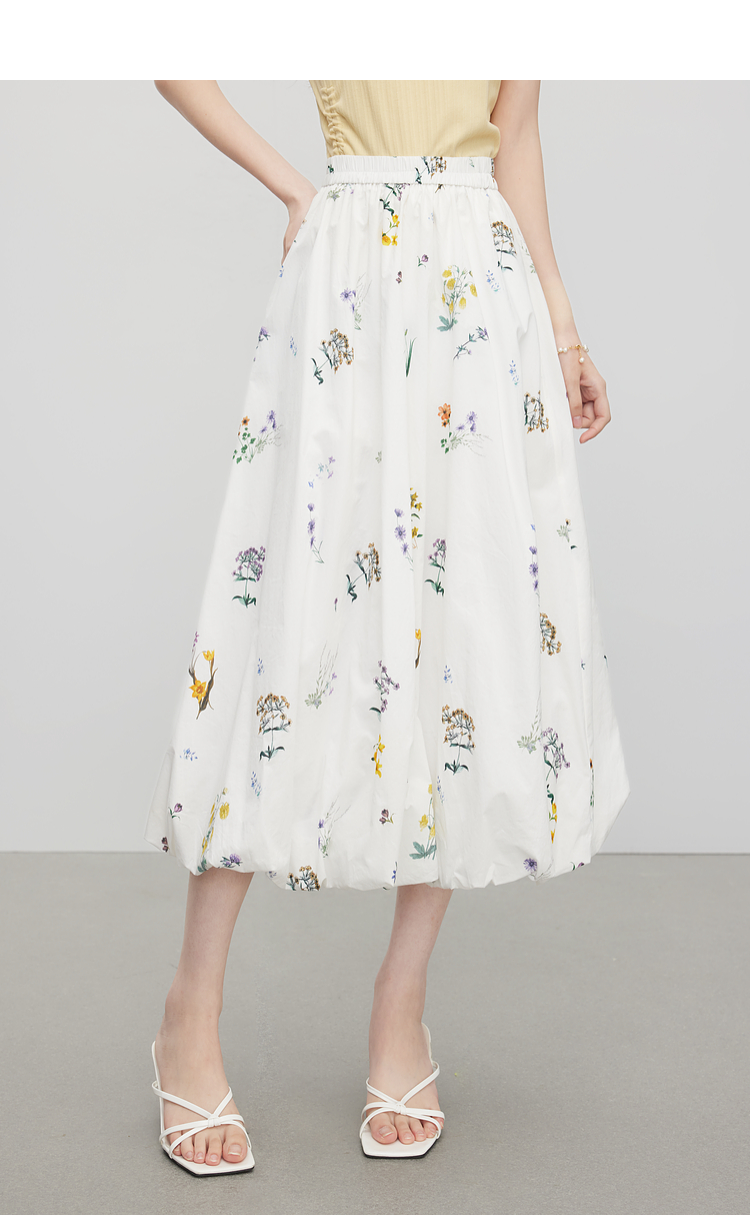 【07/16新品】熙世界法式植物碎花a字花苞裙女夏季休闲高腰独特漂亮气质半身裙