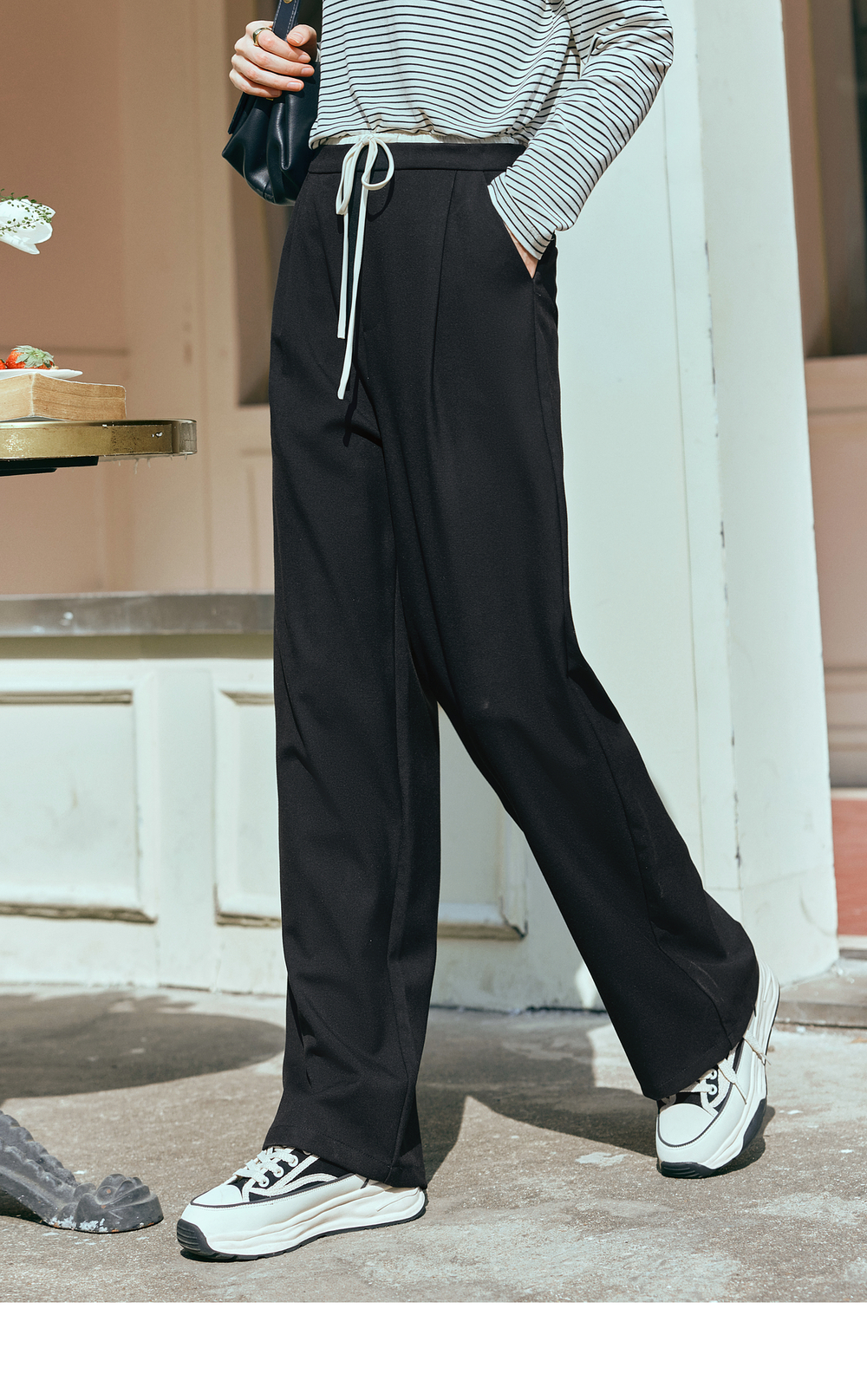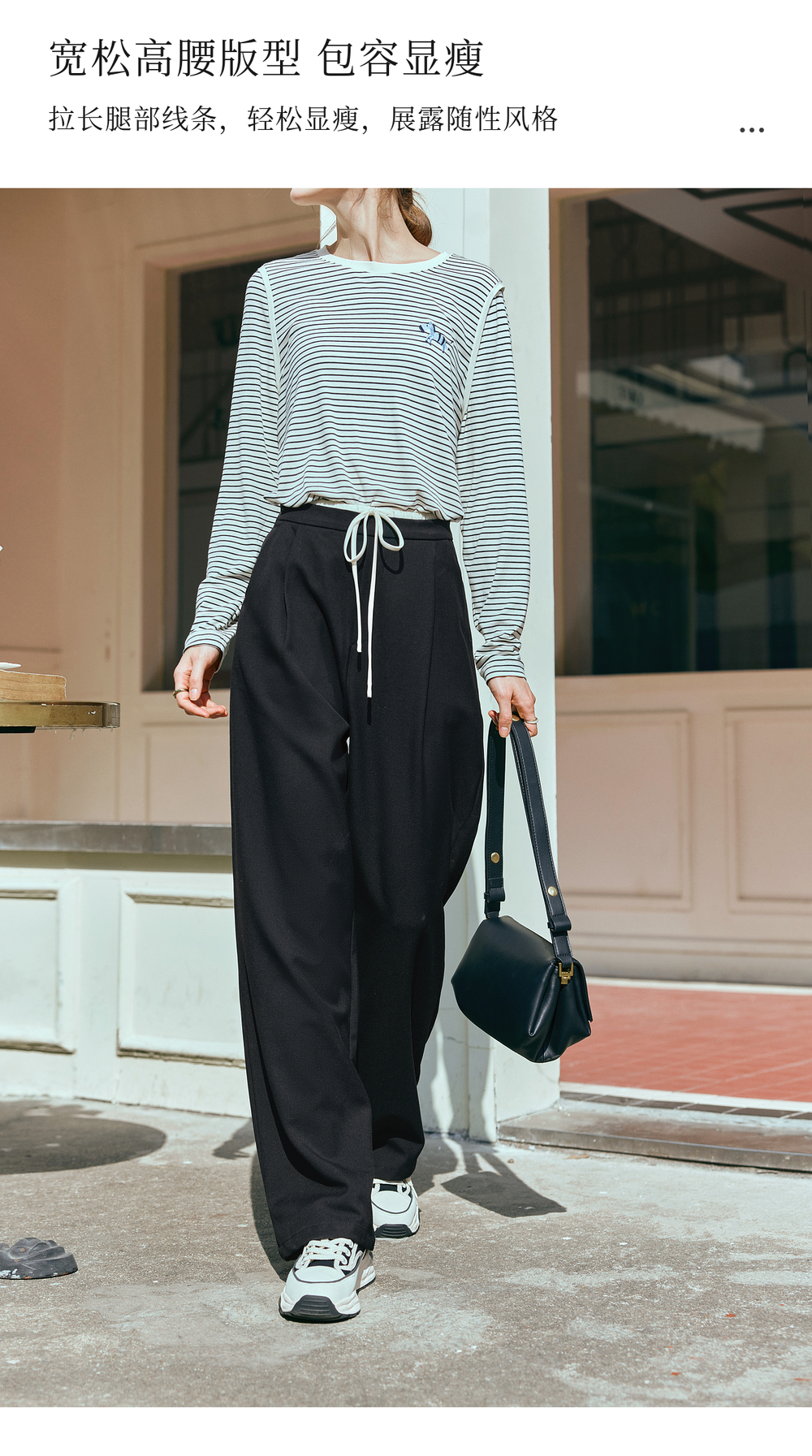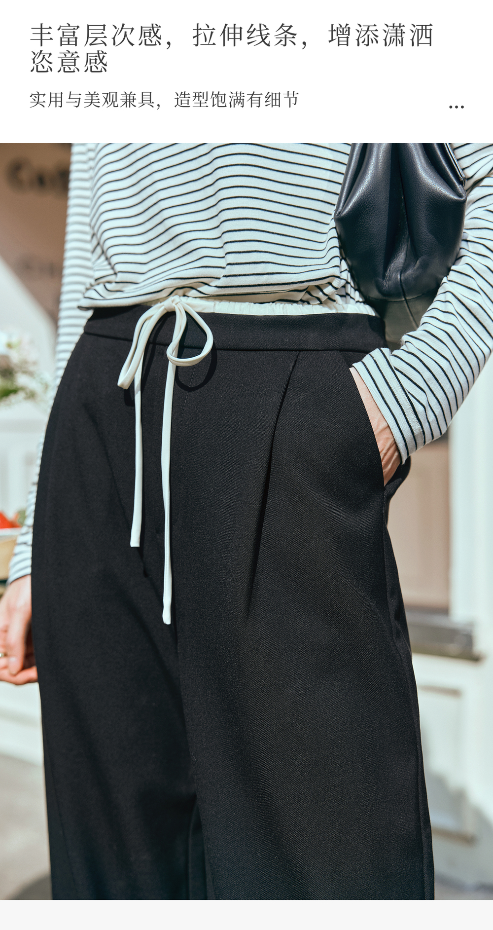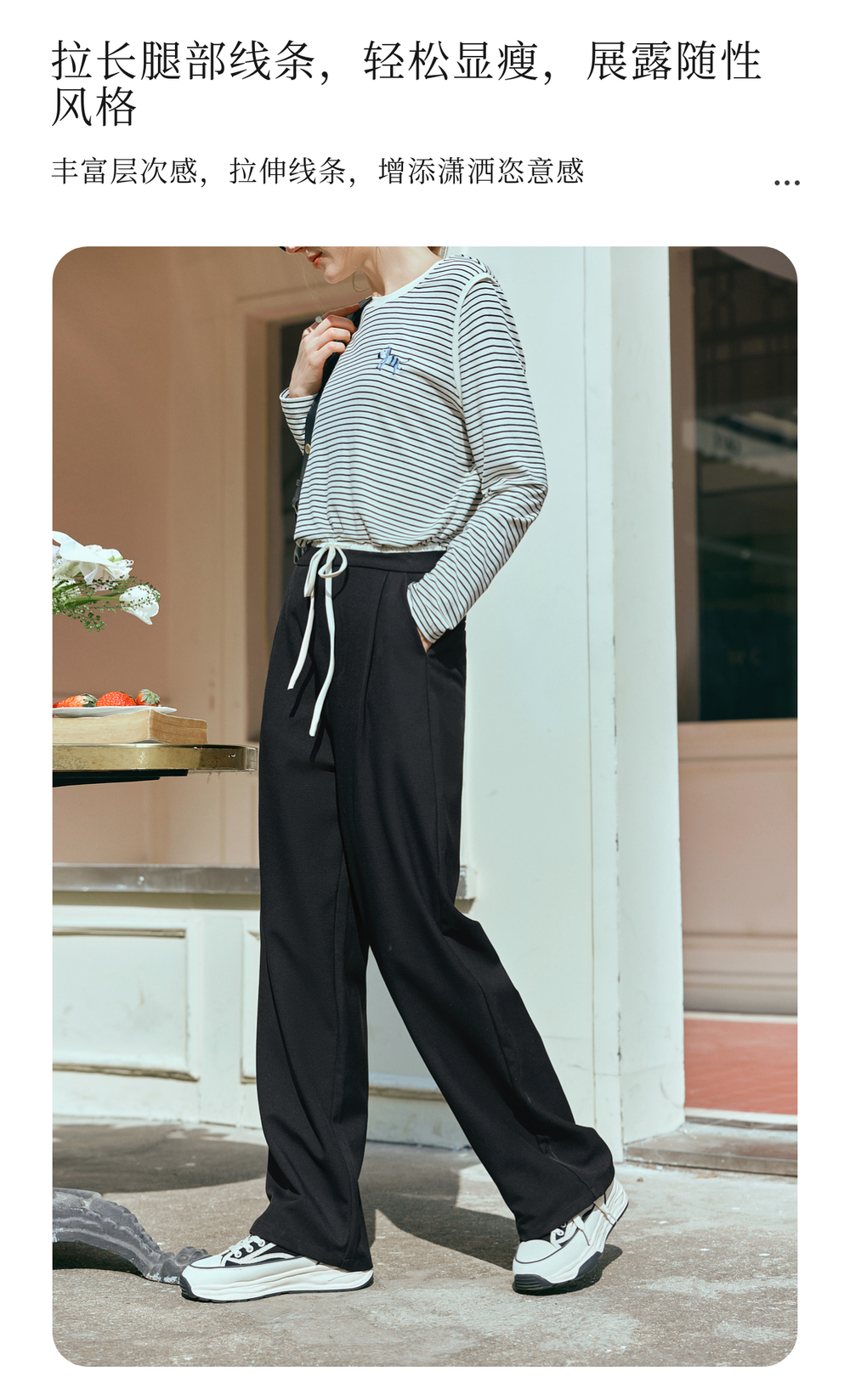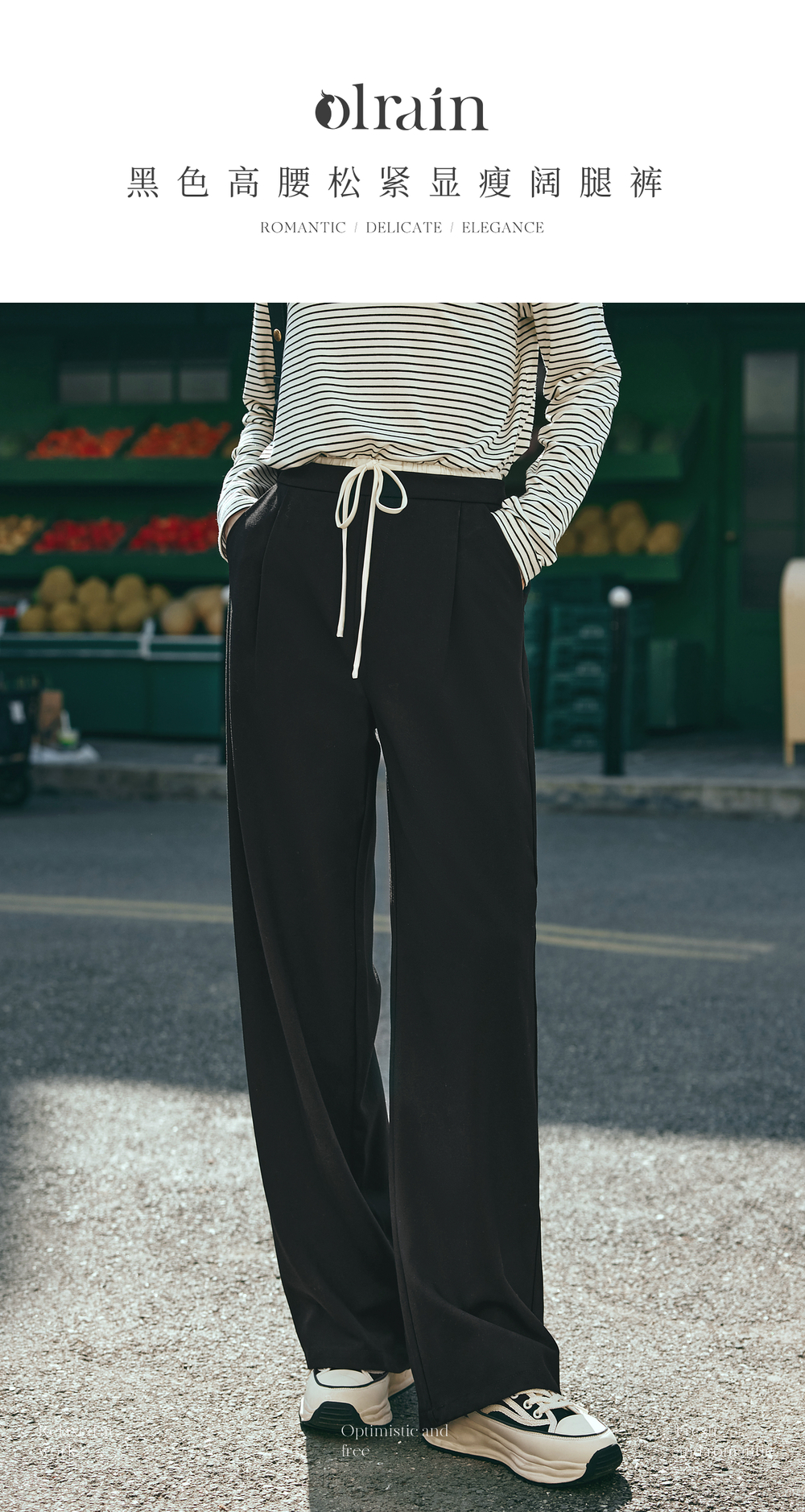 OLrain欧芮儿黑色直筒休闲裤女春季2025年新款松紧高腰显瘦阔腿裤