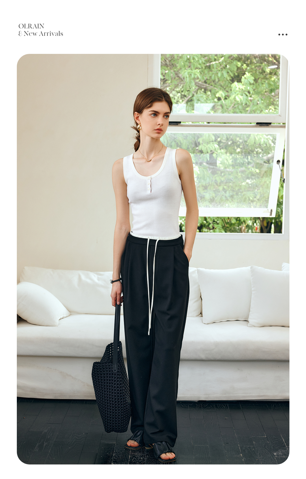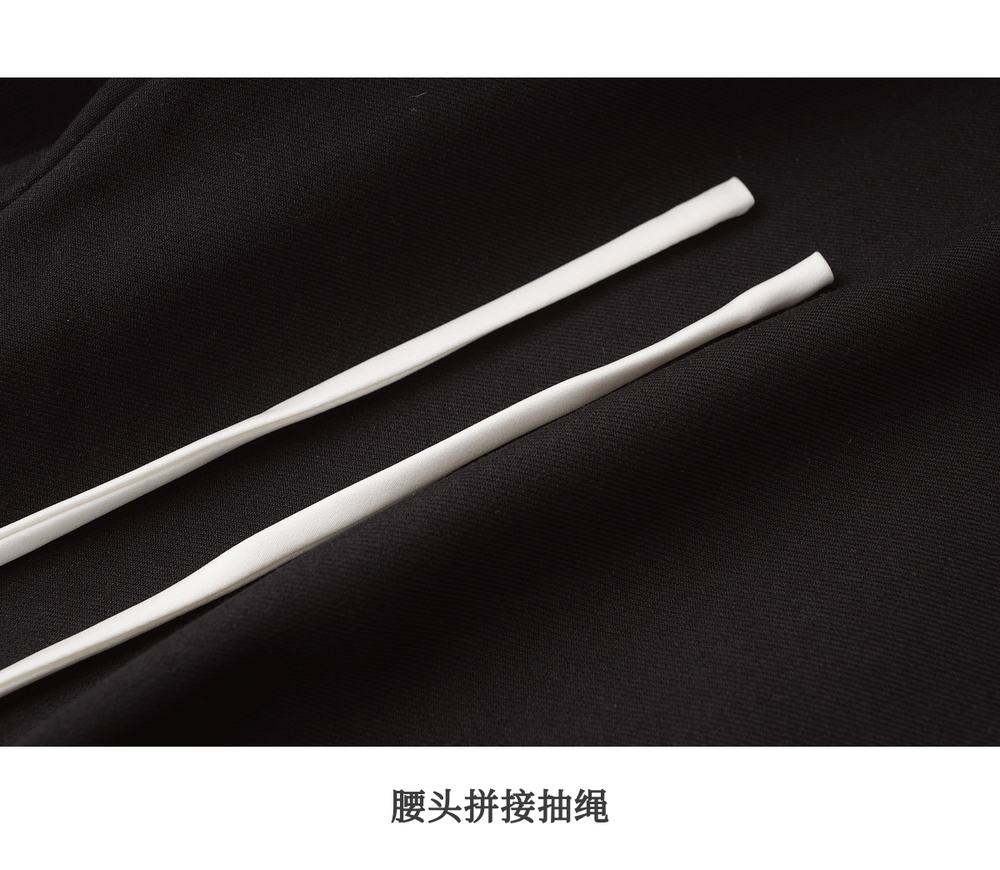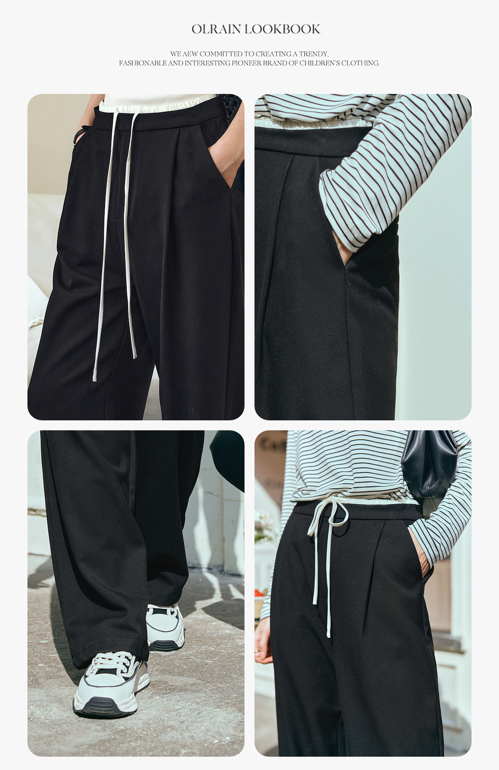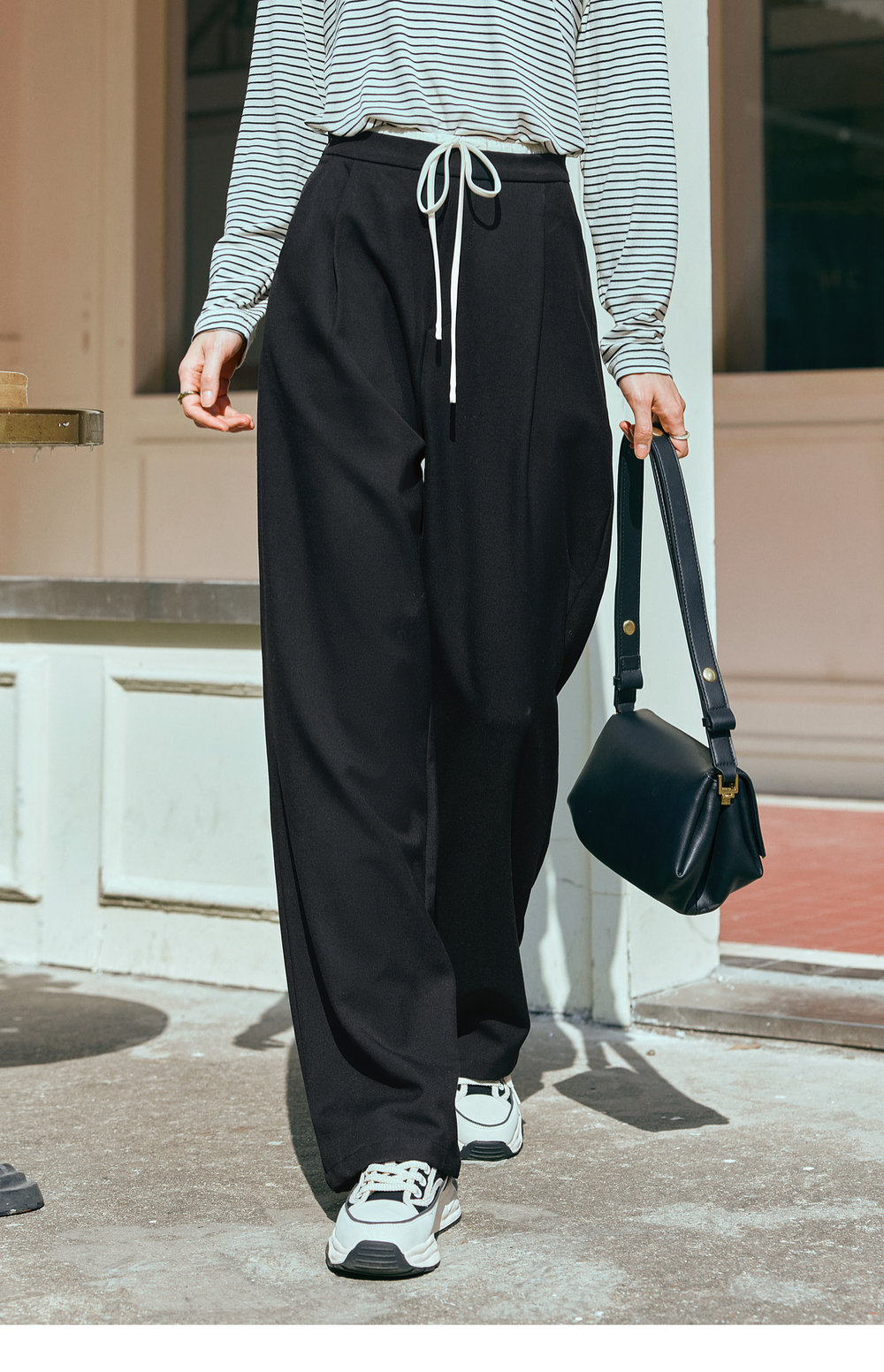 OLrain欧芮儿黑色直筒休闲裤女春季2025年新款松紧高腰显瘦阔腿裤