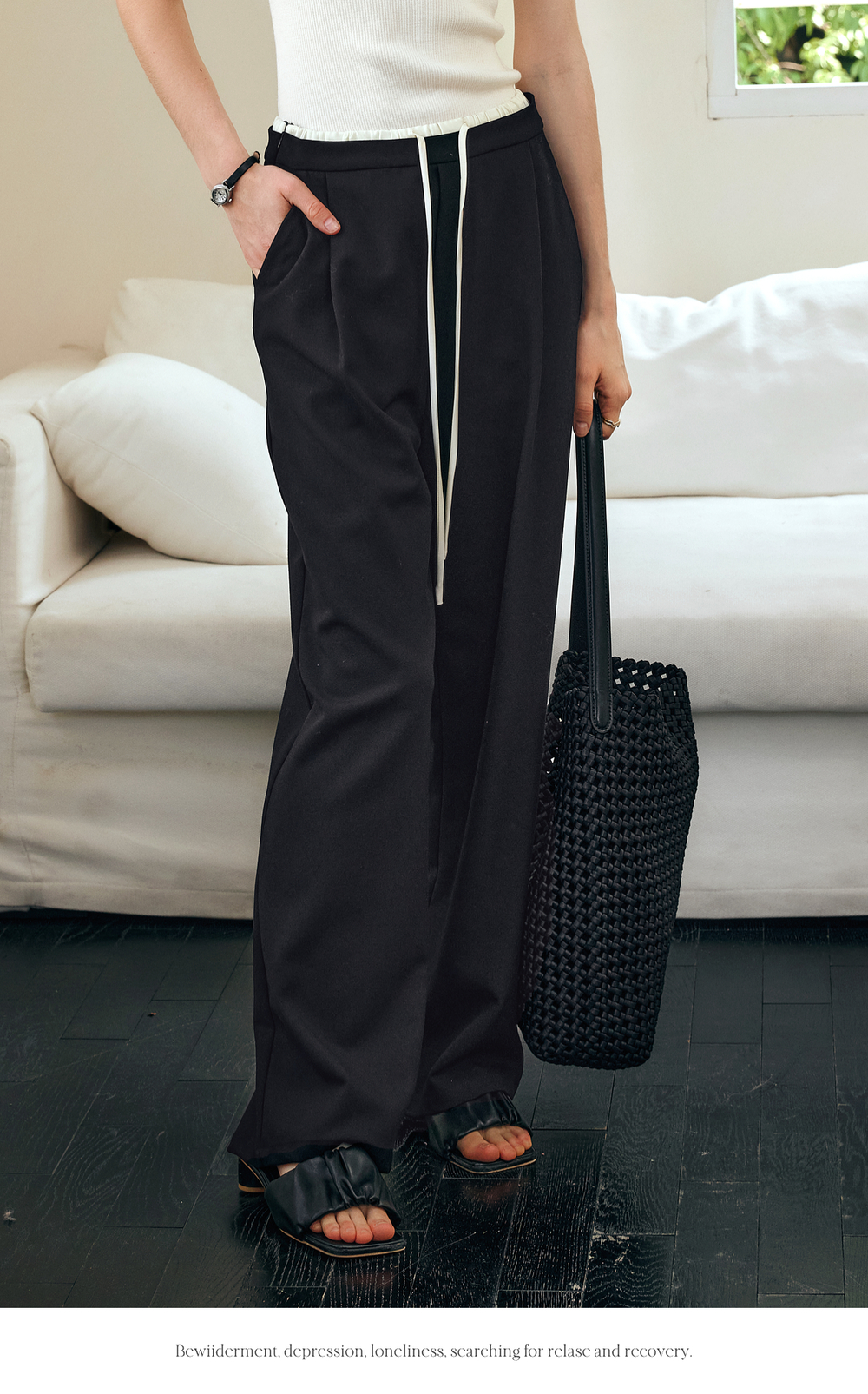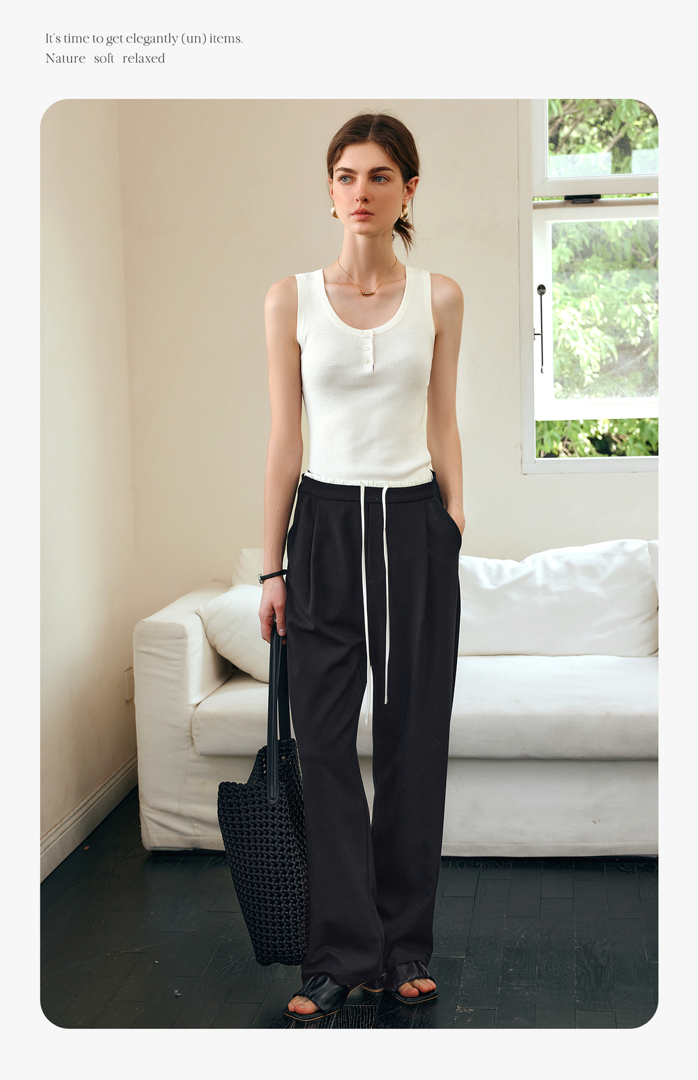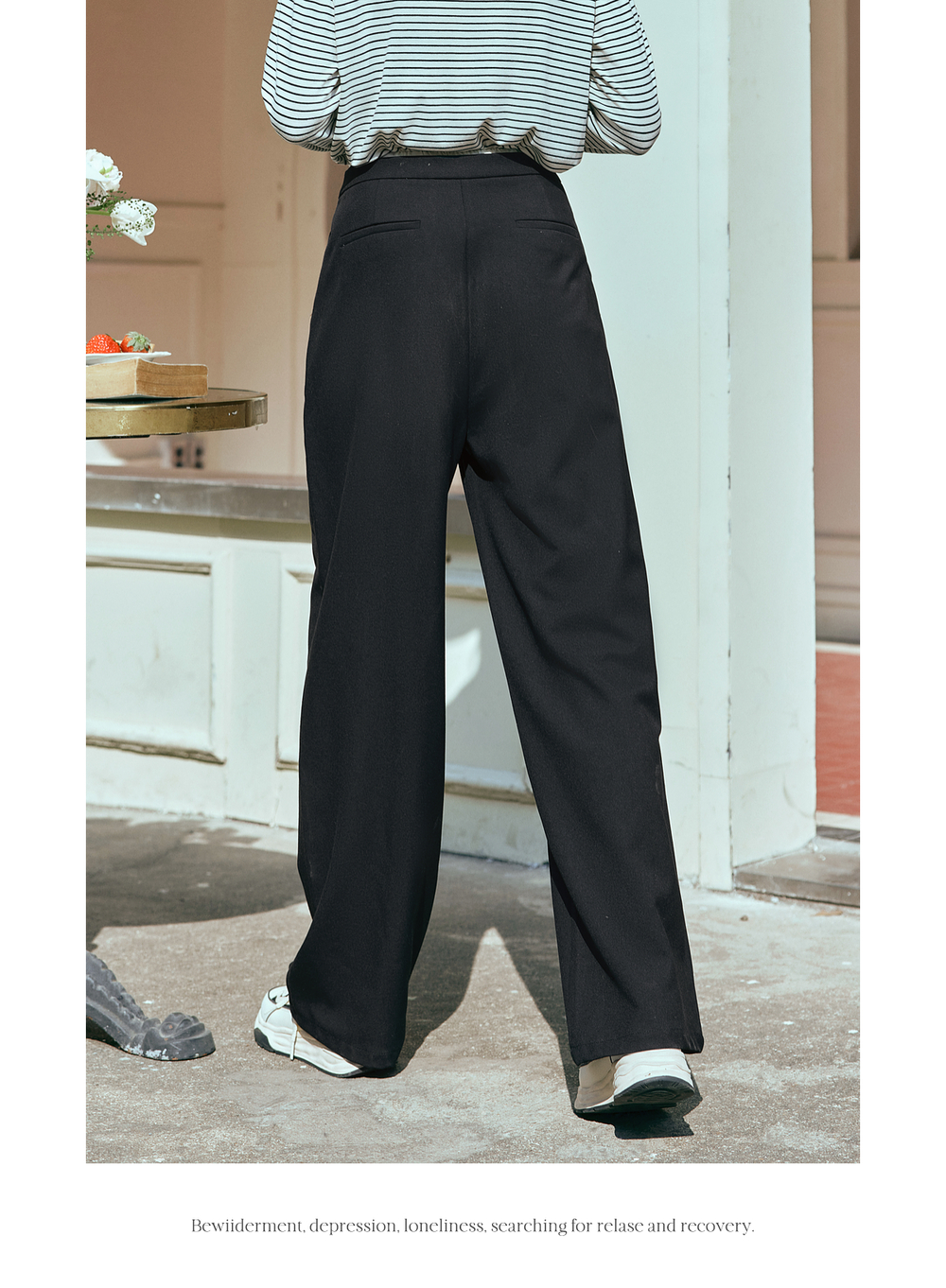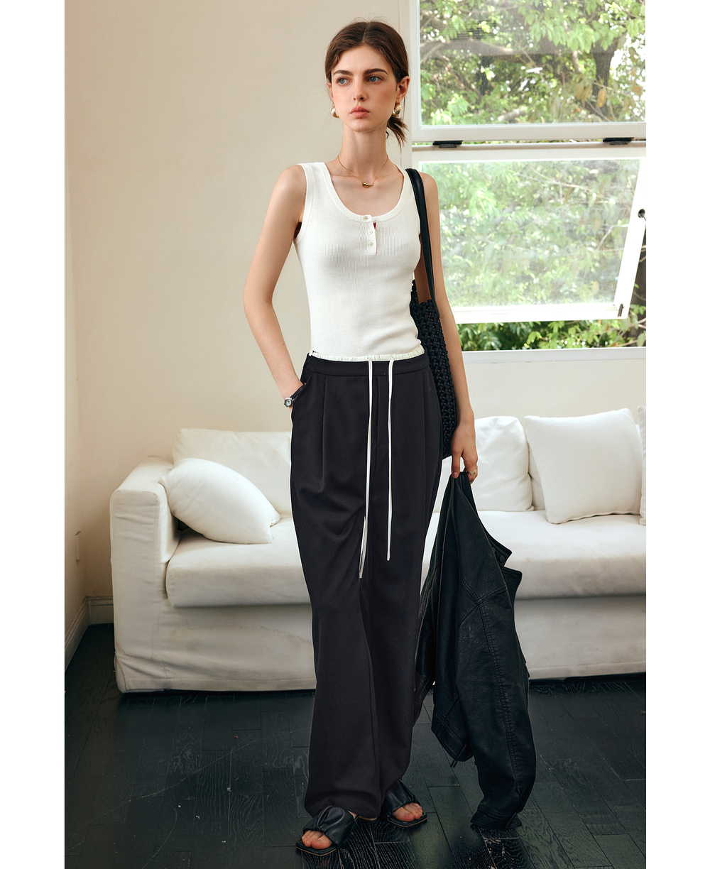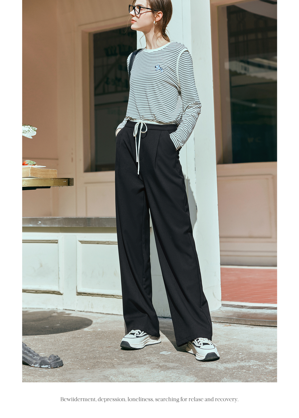 OLrain欧芮儿黑色直筒休闲裤女春季2025年新款松紧高腰显瘦阔腿裤