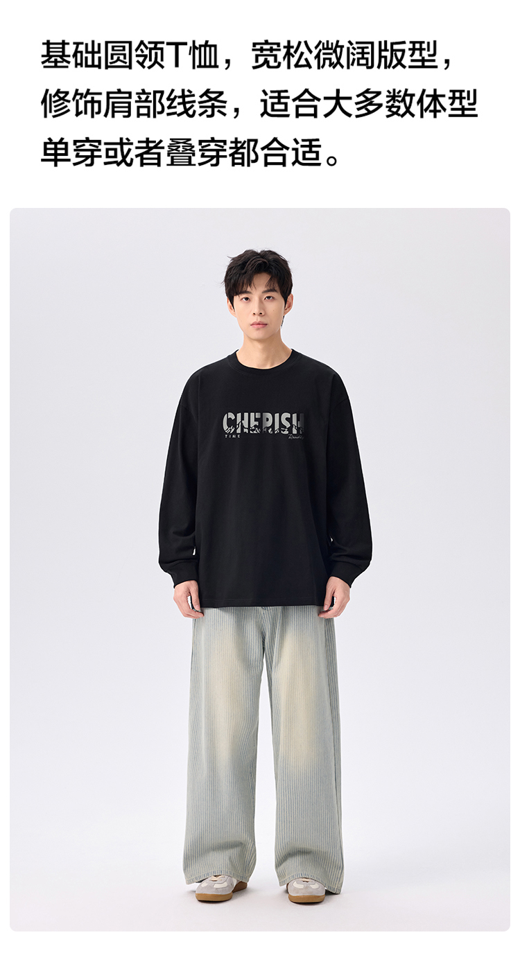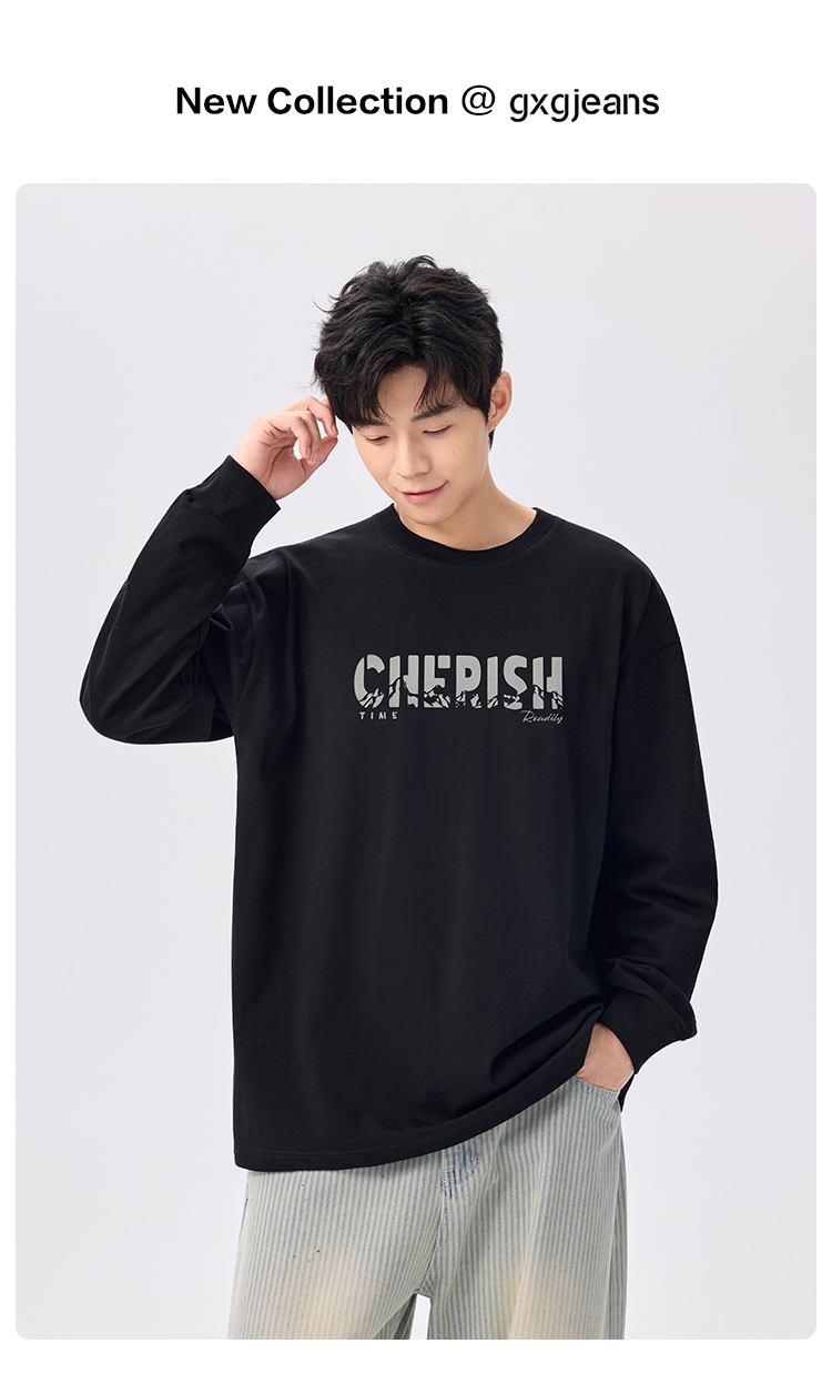 gxgjeans 男装【棉100%】男士长袖T恤25秋款基础百搭设计日常通勤打底衫K&C