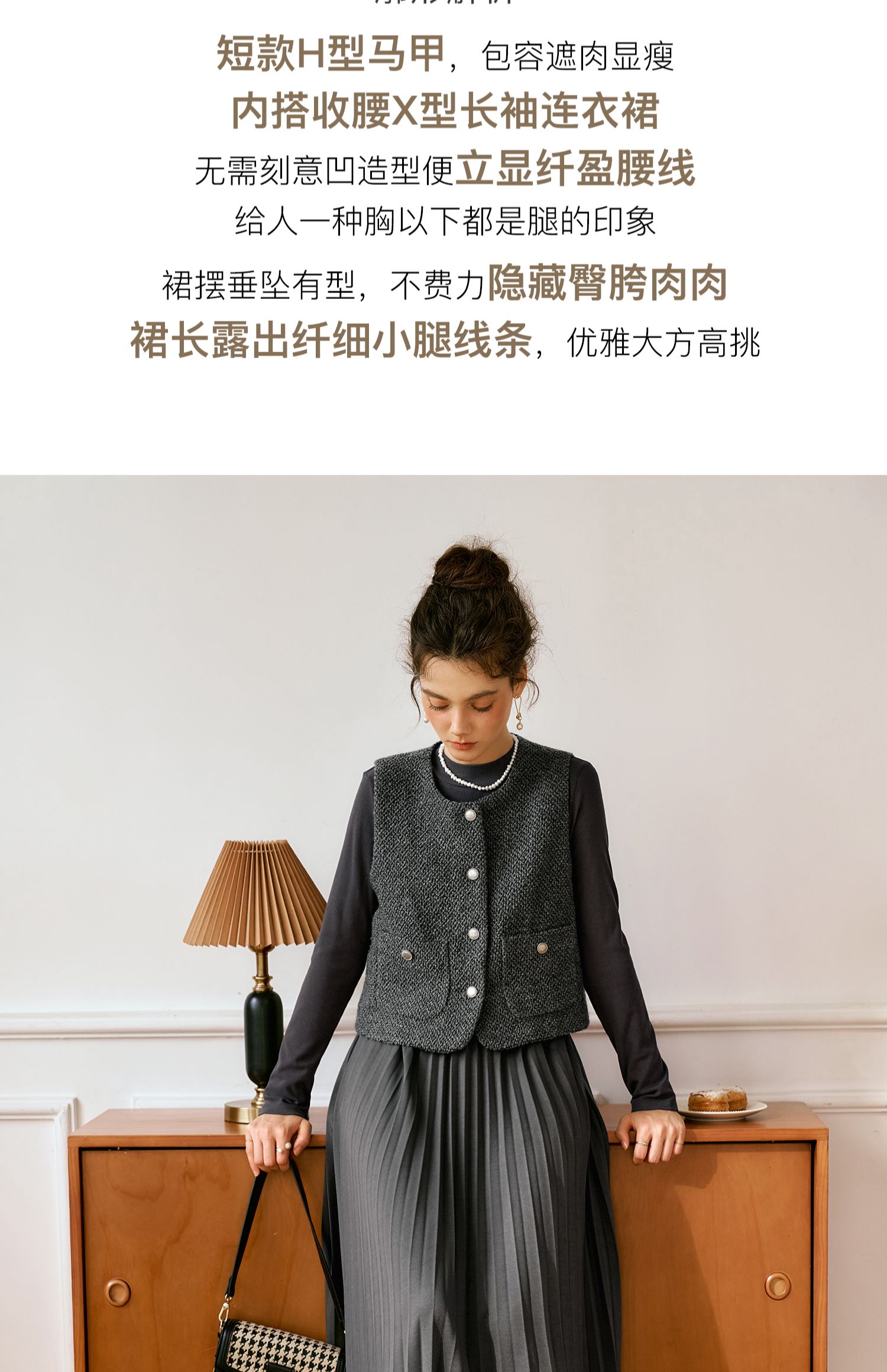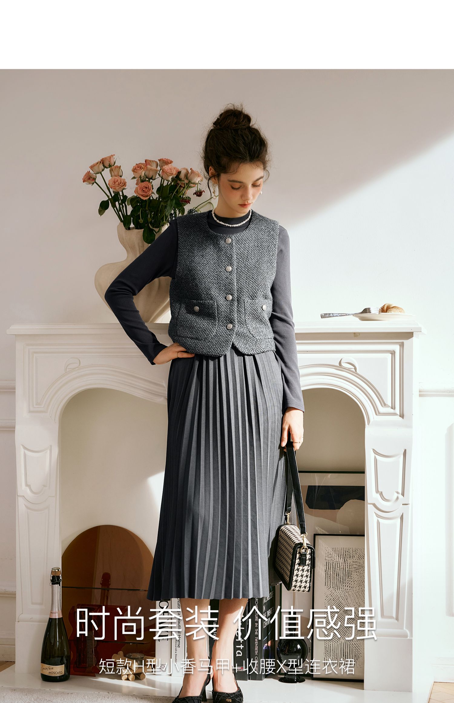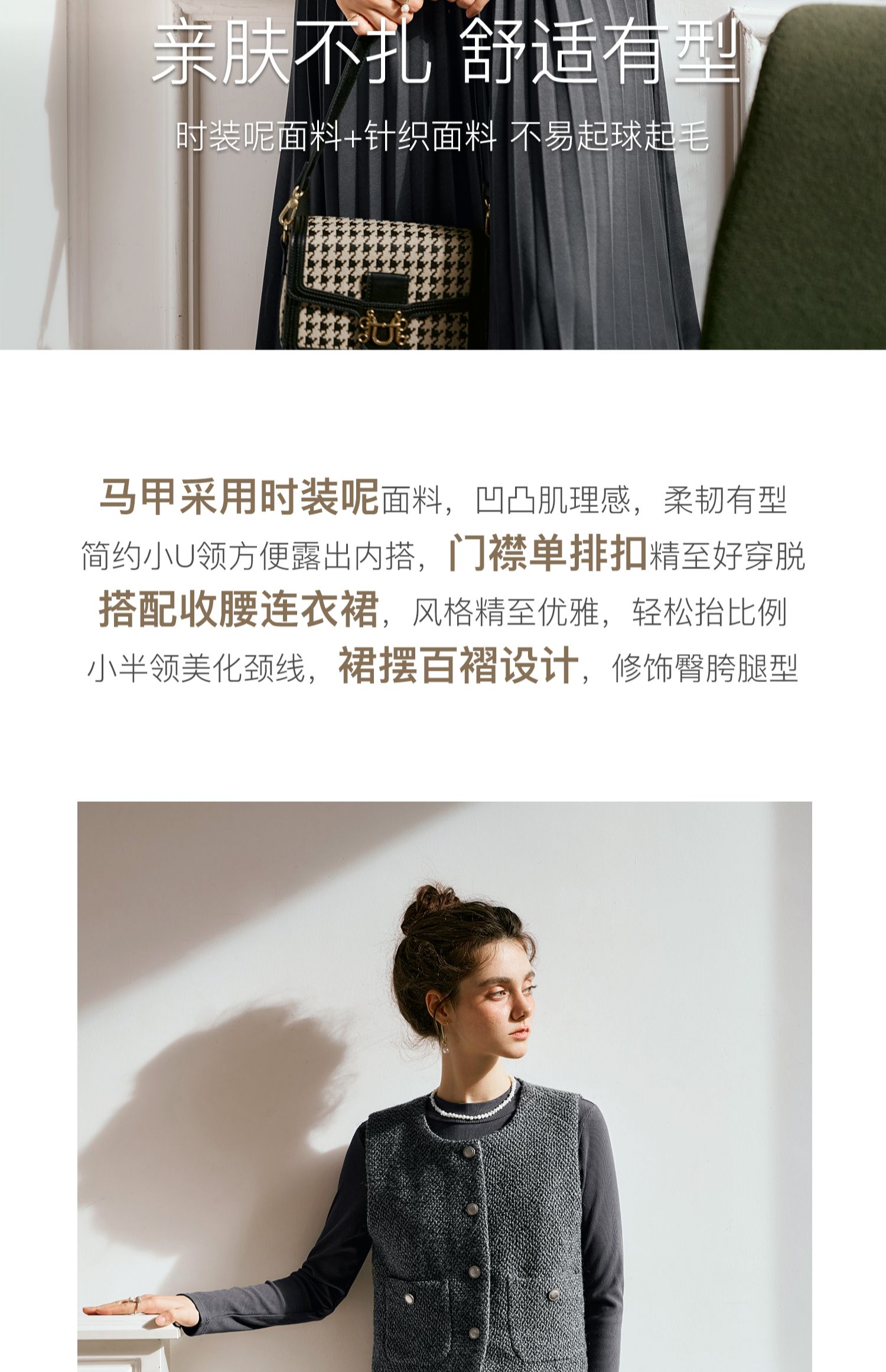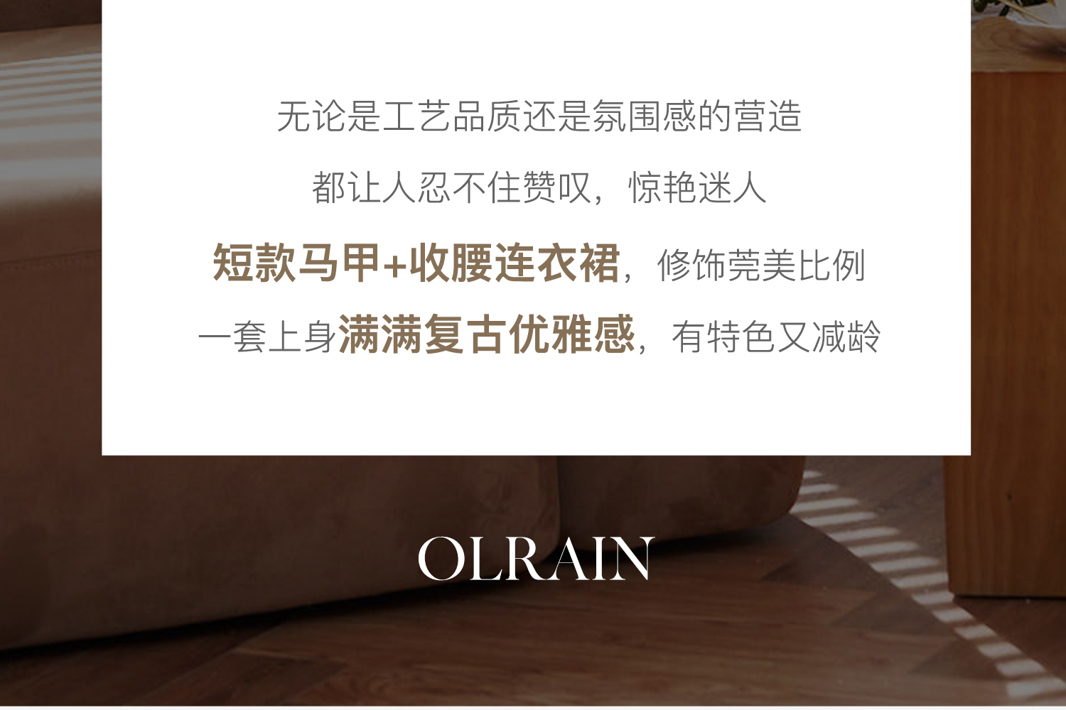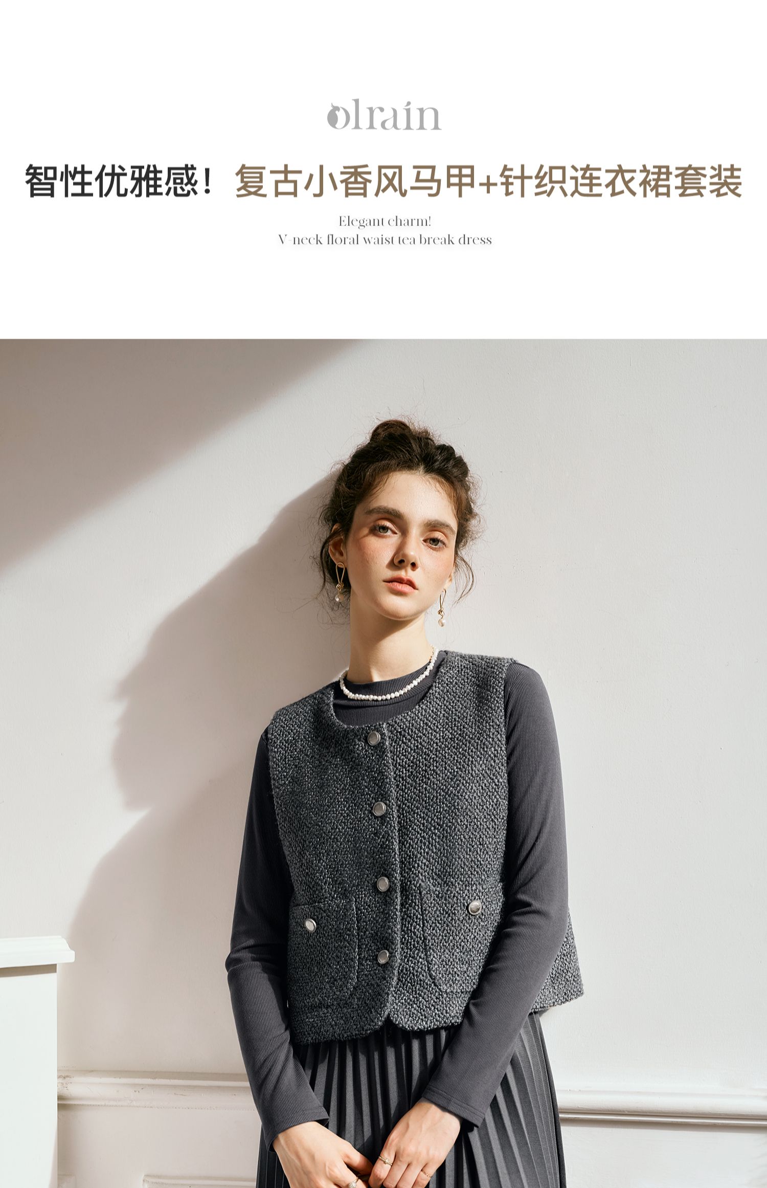OLrain欧芮儿复古时尚套装女秋季2024新款小香风马甲连衣裙两件套