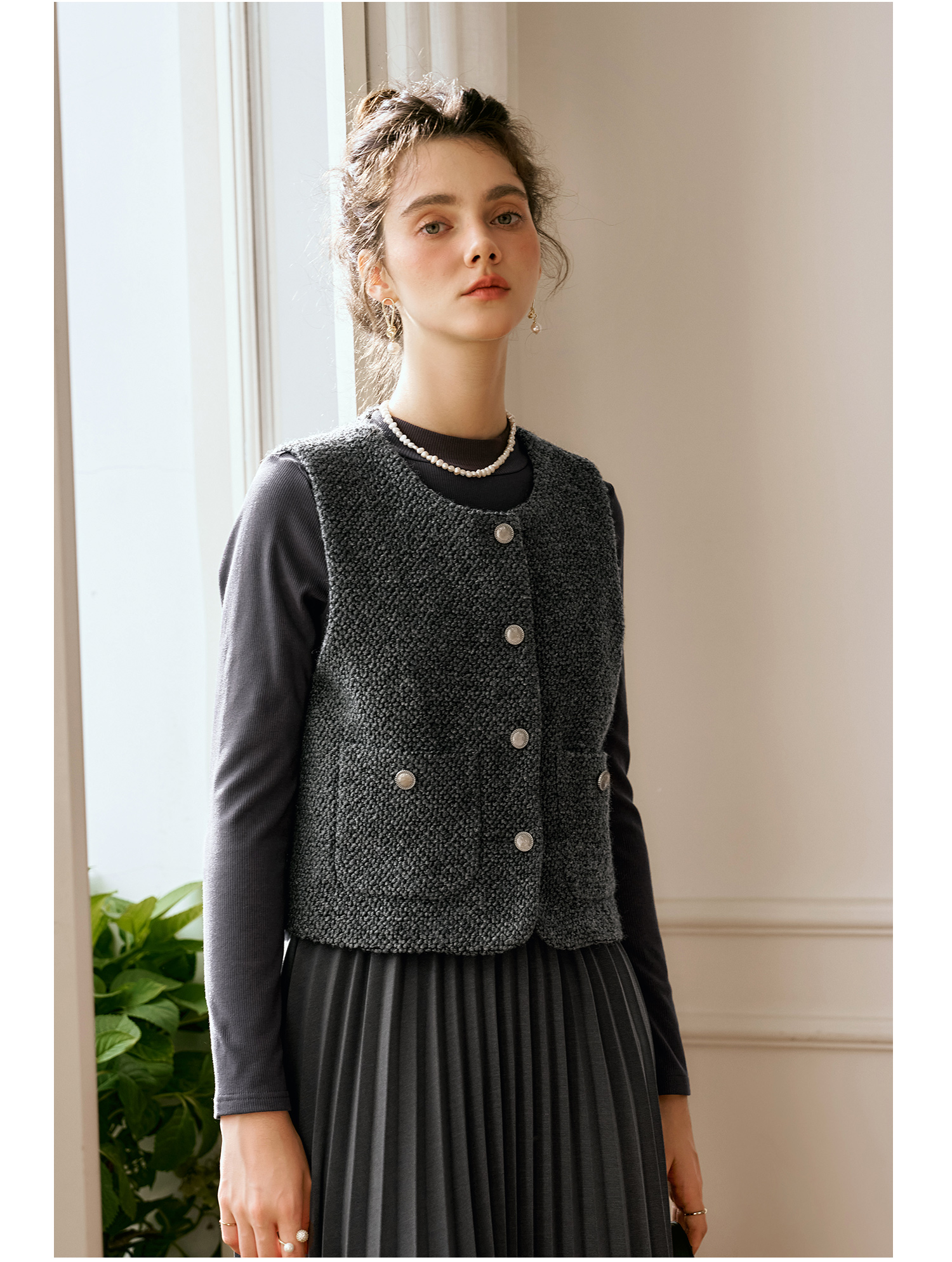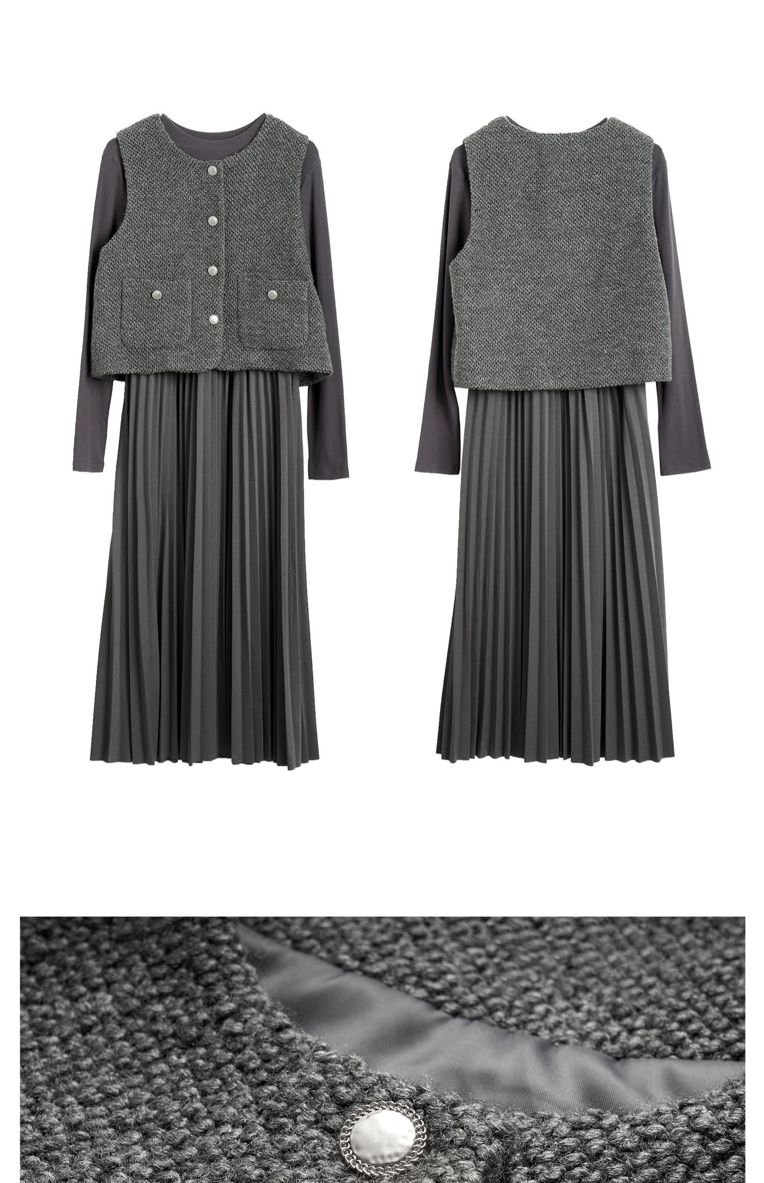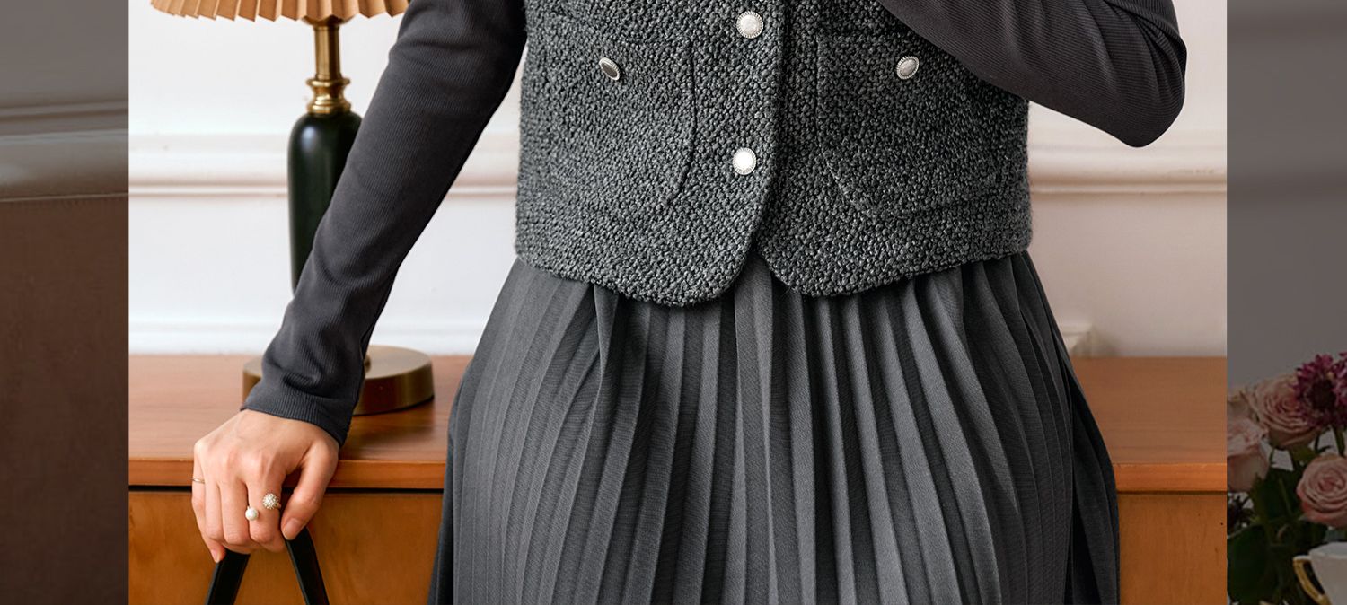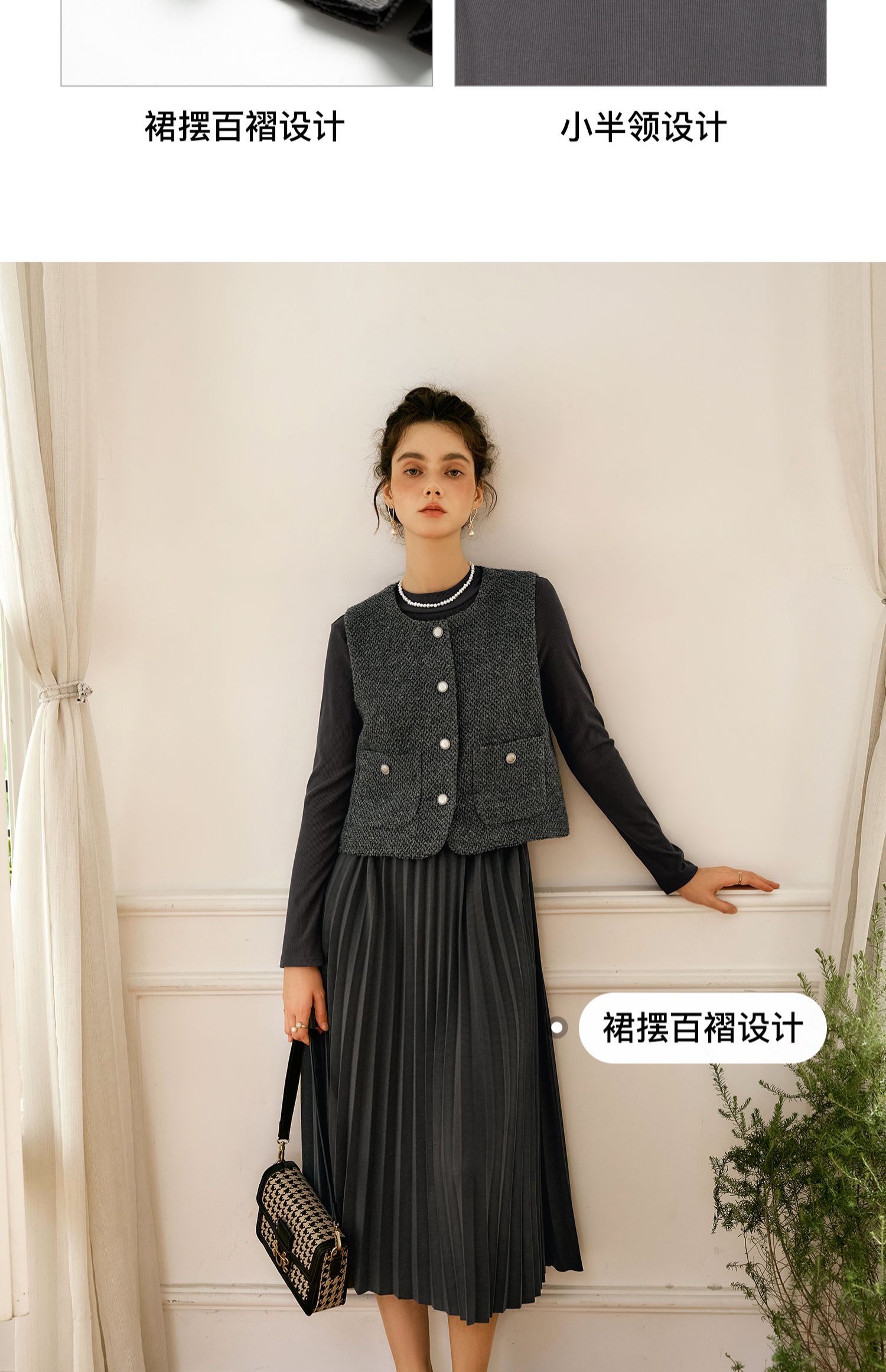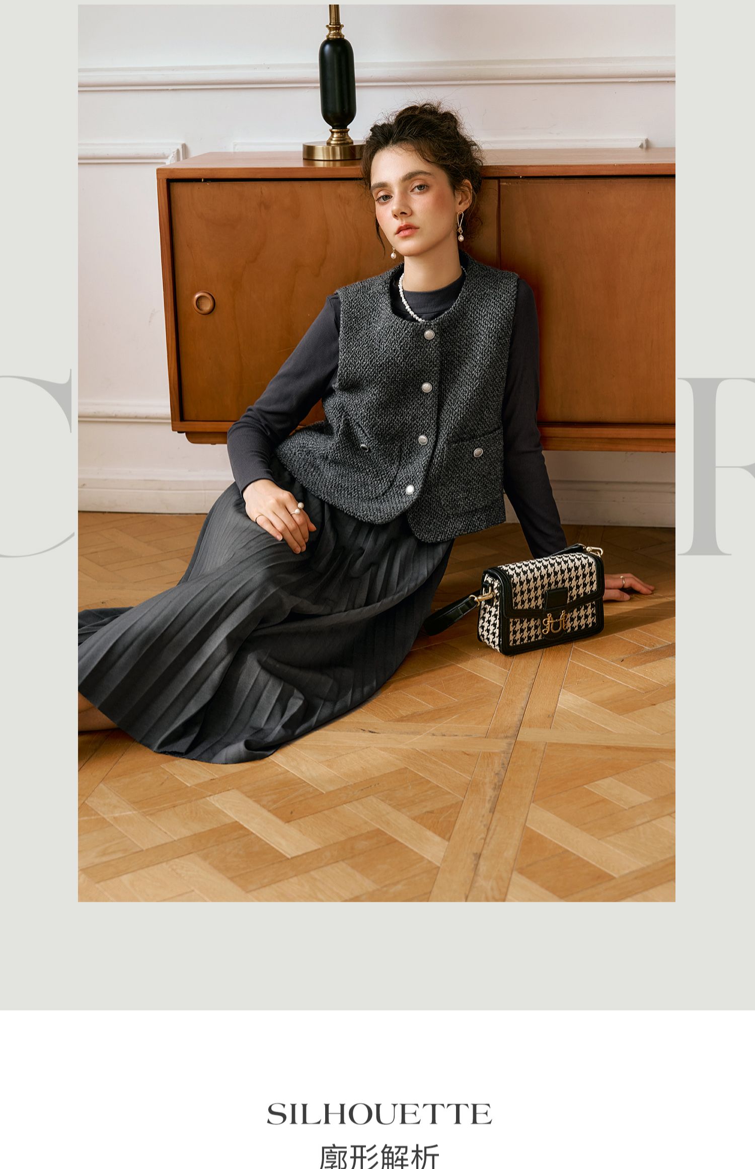OLrain欧芮儿复古时尚套装女秋季2024新款小香风马甲连衣裙两件套