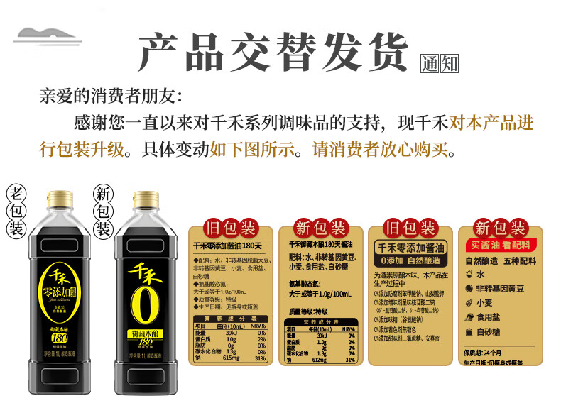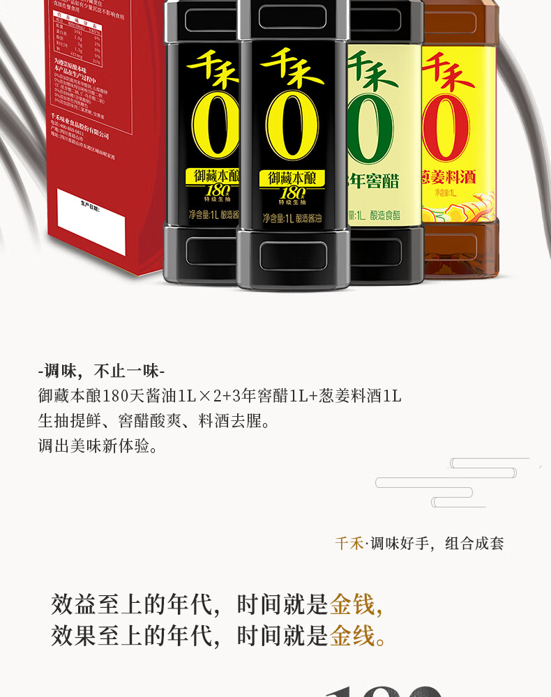 千禾酱油醋料酒 零添加礼盒装 1L*4 团圆年货礼盒 送礼团购 送礼团购