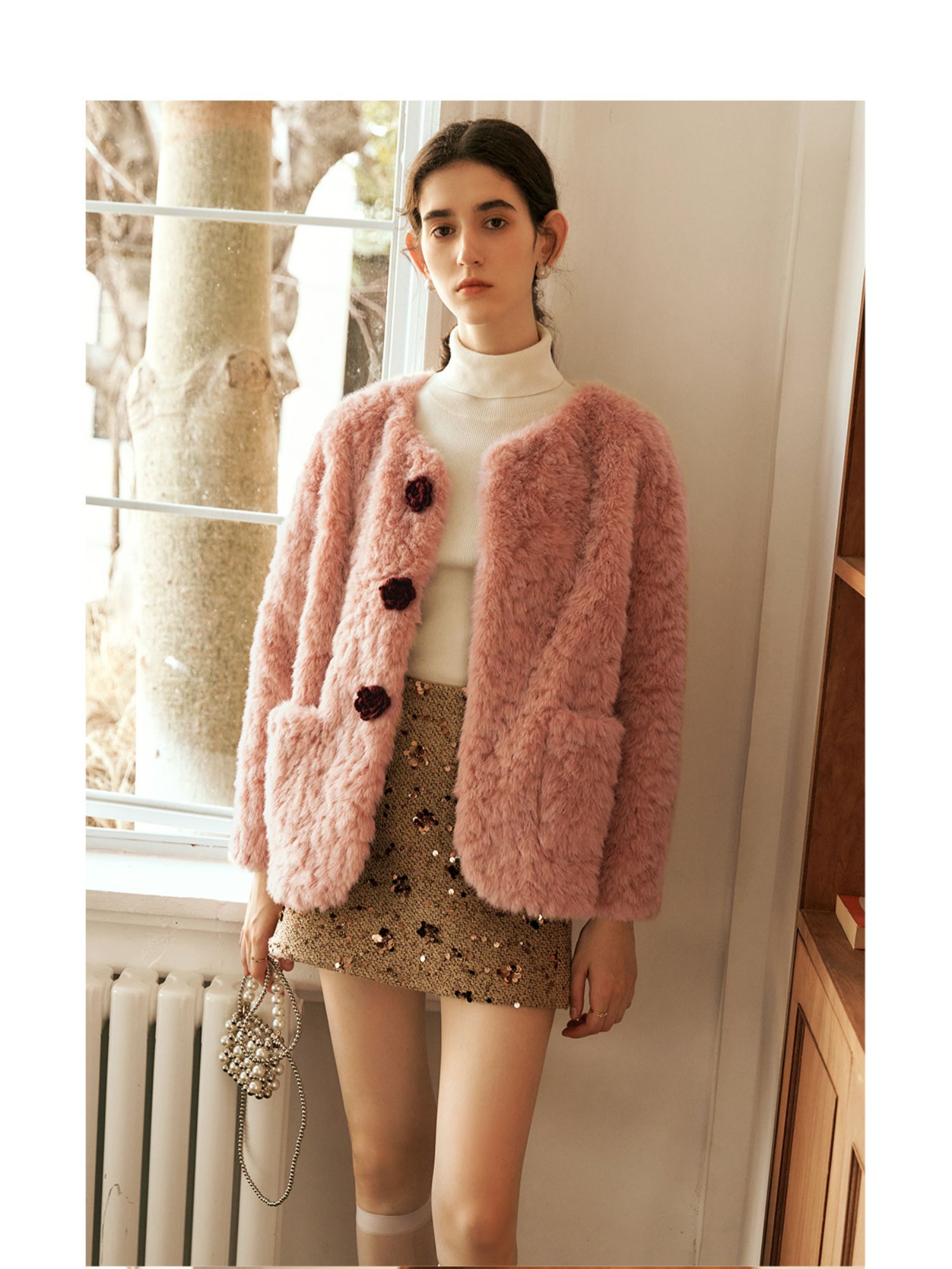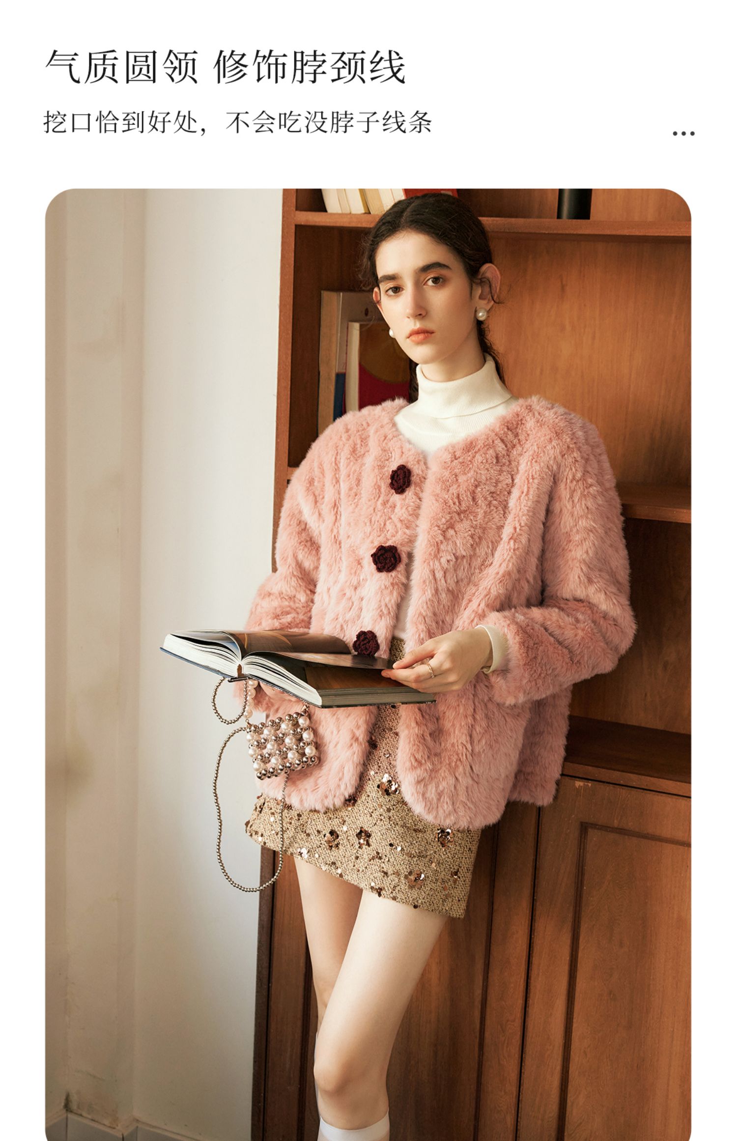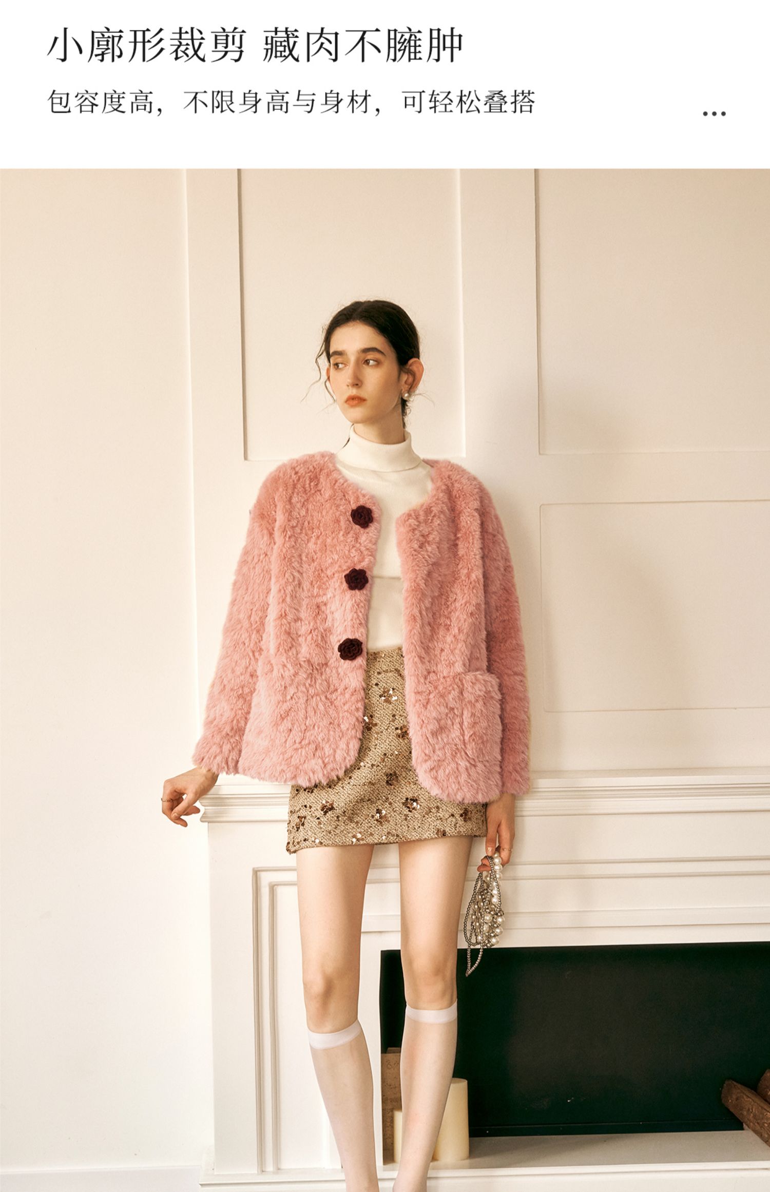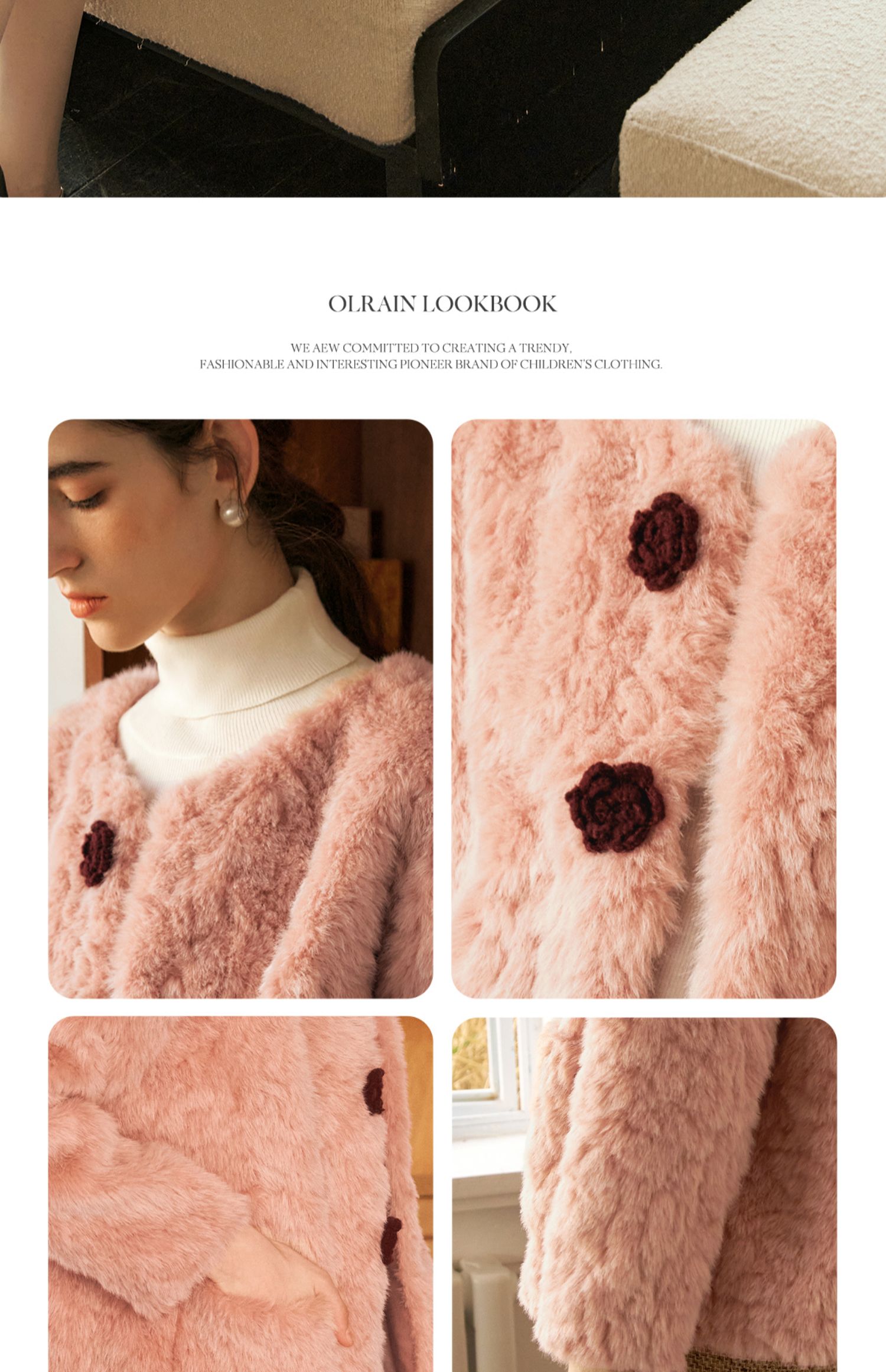 OLrain欧芮儿粉色皮草外套女冬季2024年新款名媛气质皮毛一体上衣