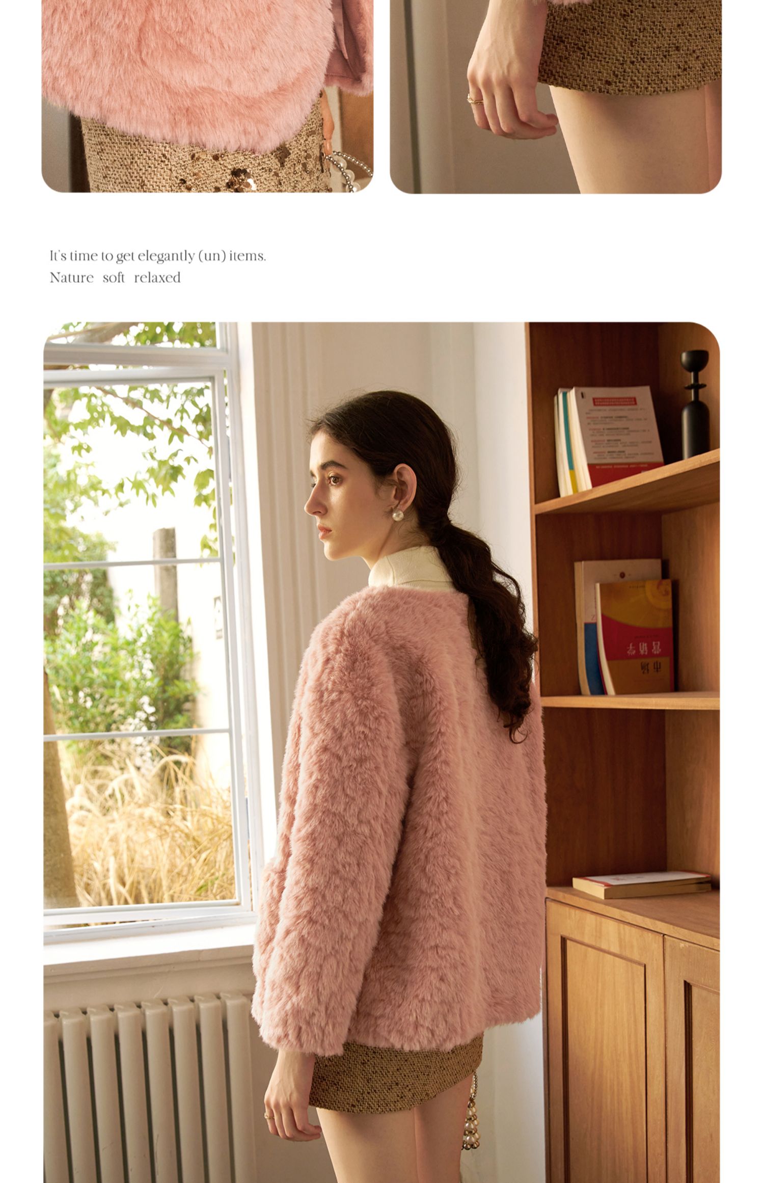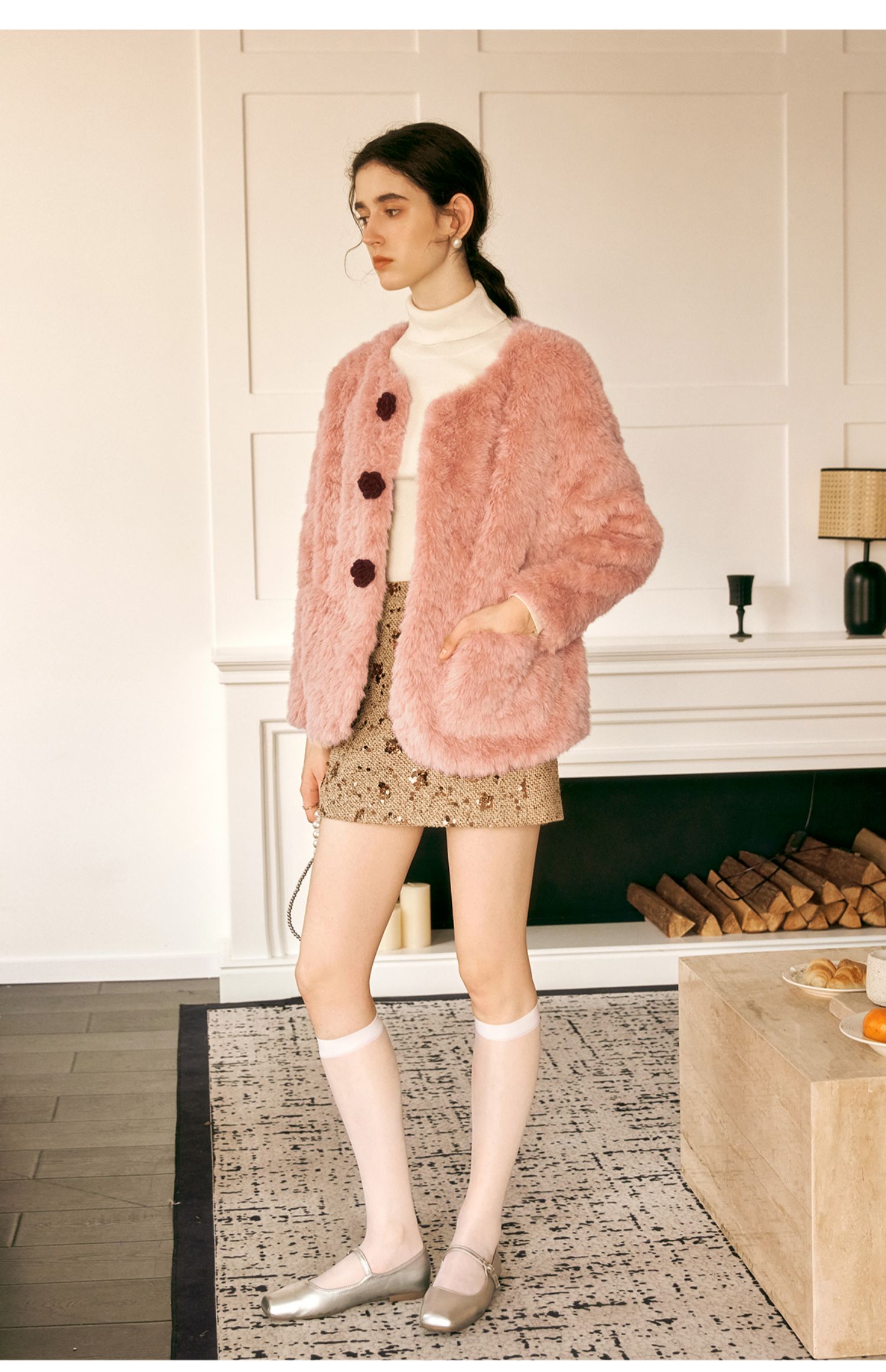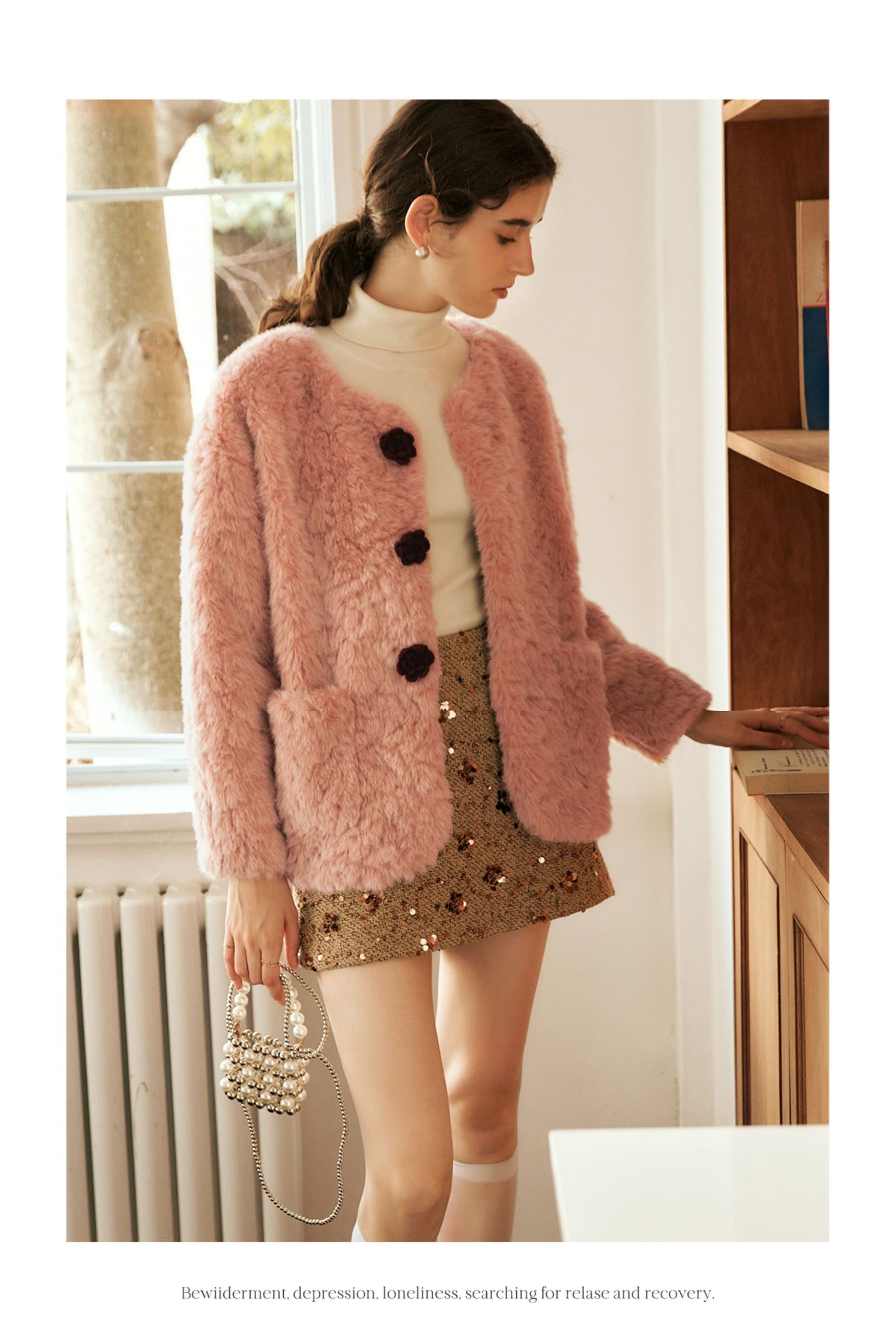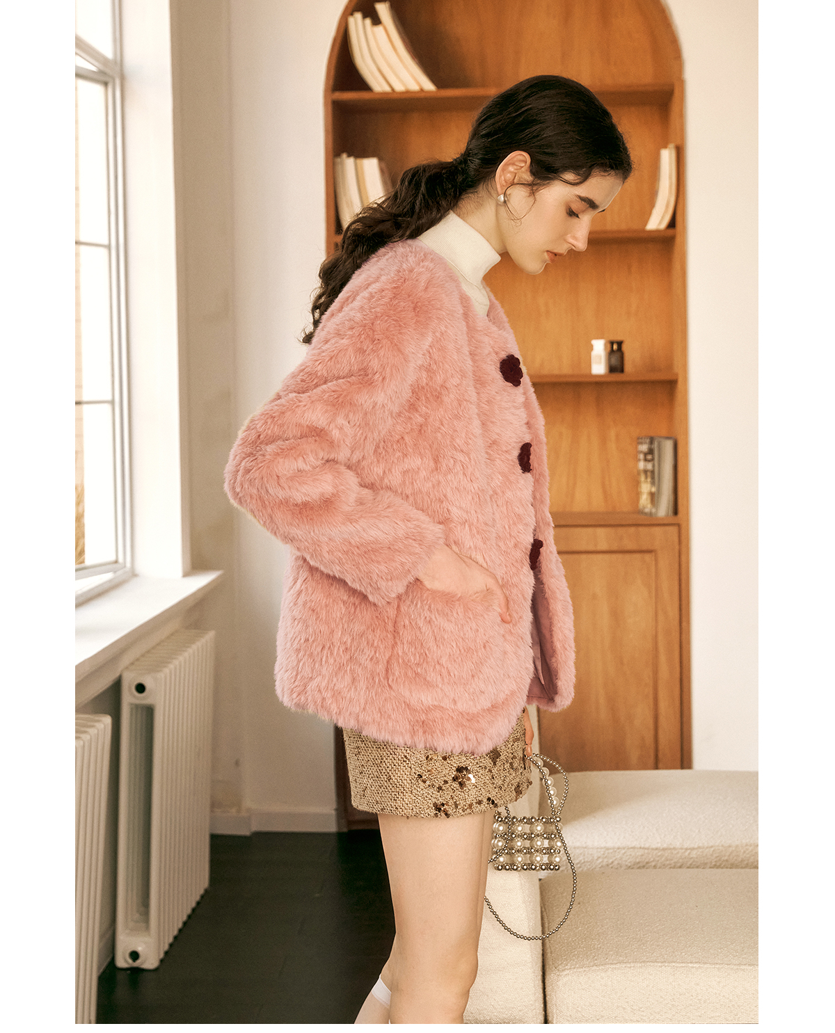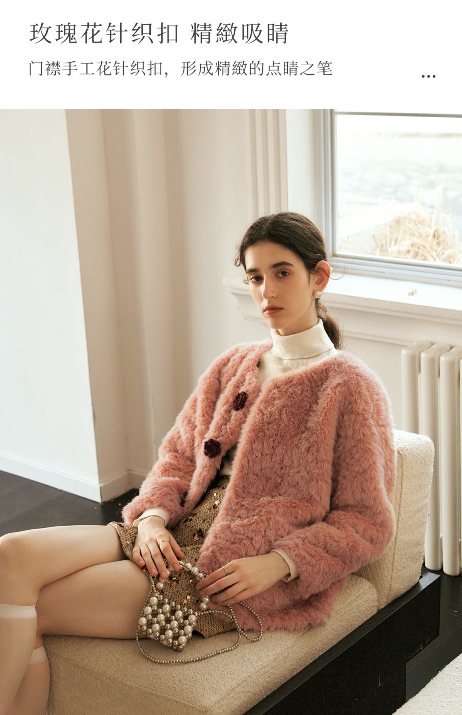 OLrain欧芮儿粉色皮草外套女冬季2024年新款名媛气质皮毛一体上衣