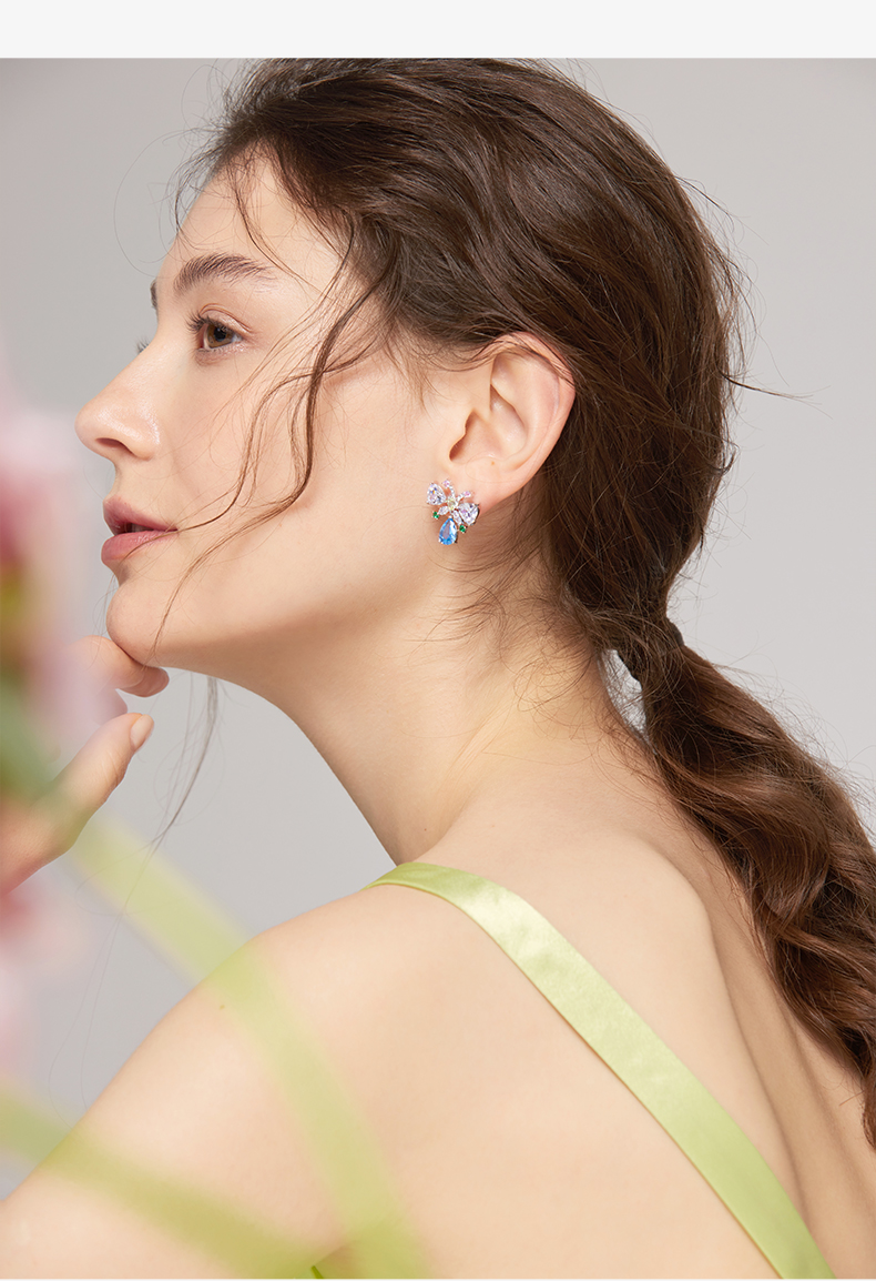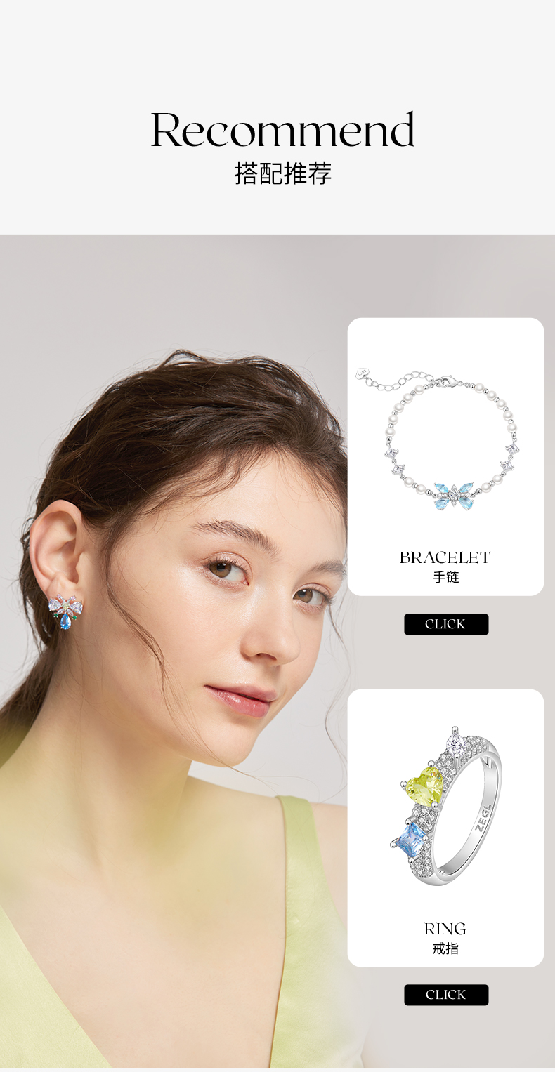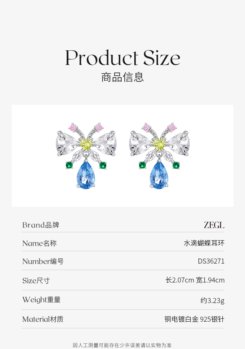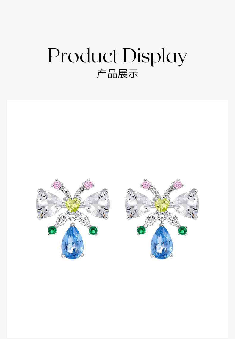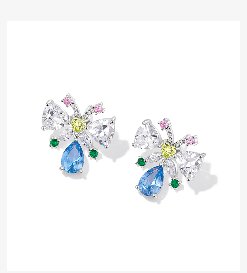 ZEGL设计师春日绽放系列蝴蝶水滴耳环女2023年新款潮耳钉银针耳饰