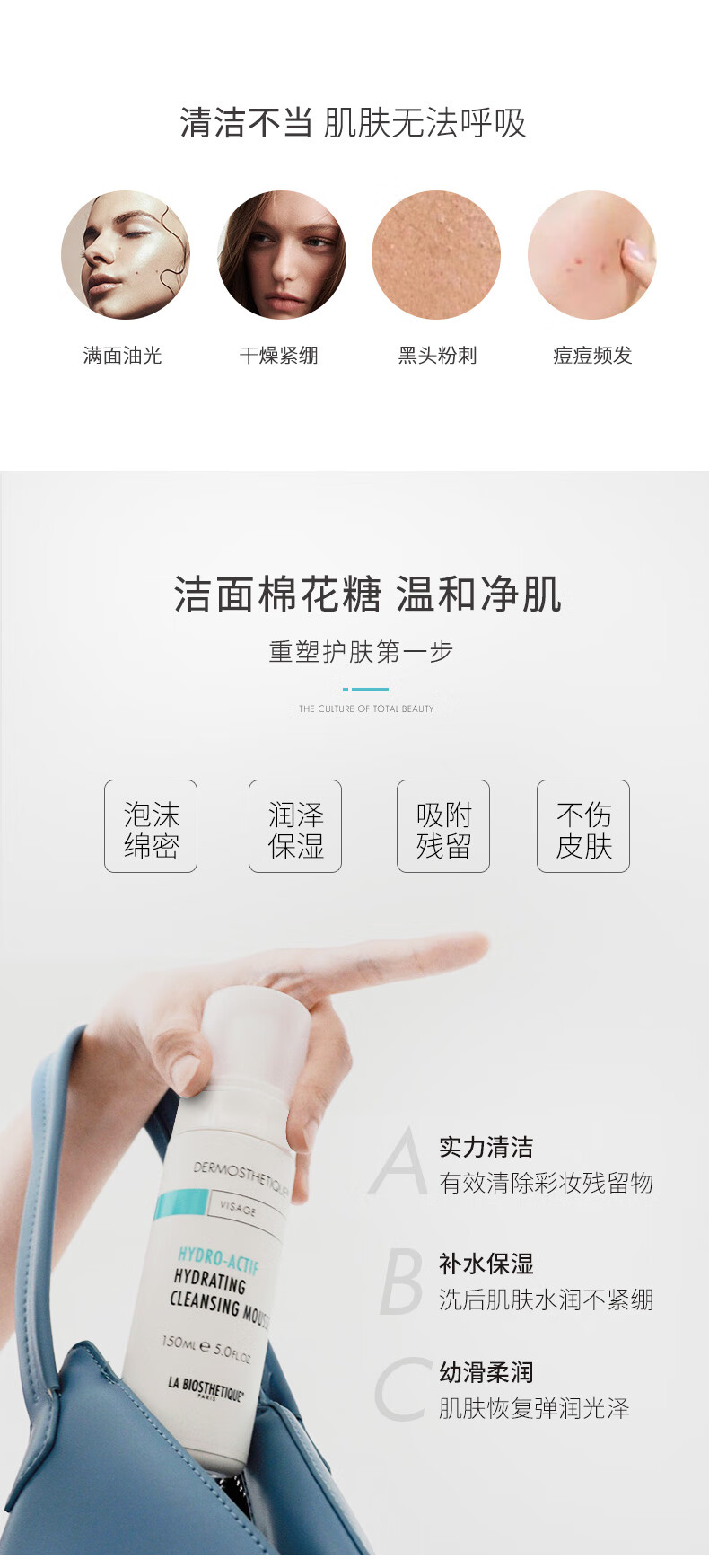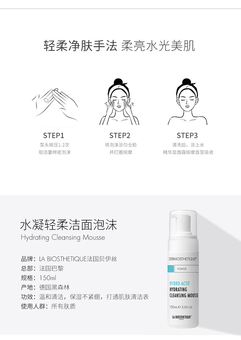 贝伊丝(LA BIOSTHETIQUE) 水凝轻柔洁面泡沫150ML 保湿补水洗面奶