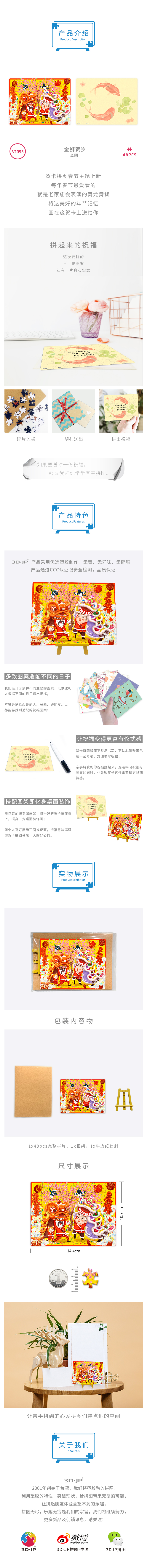 【折扣商品 不退不换】48片 双面贺卡拼图 平面拼图 V1058 么团 - 金狮贺岁
