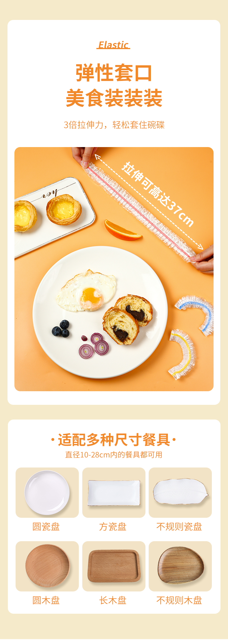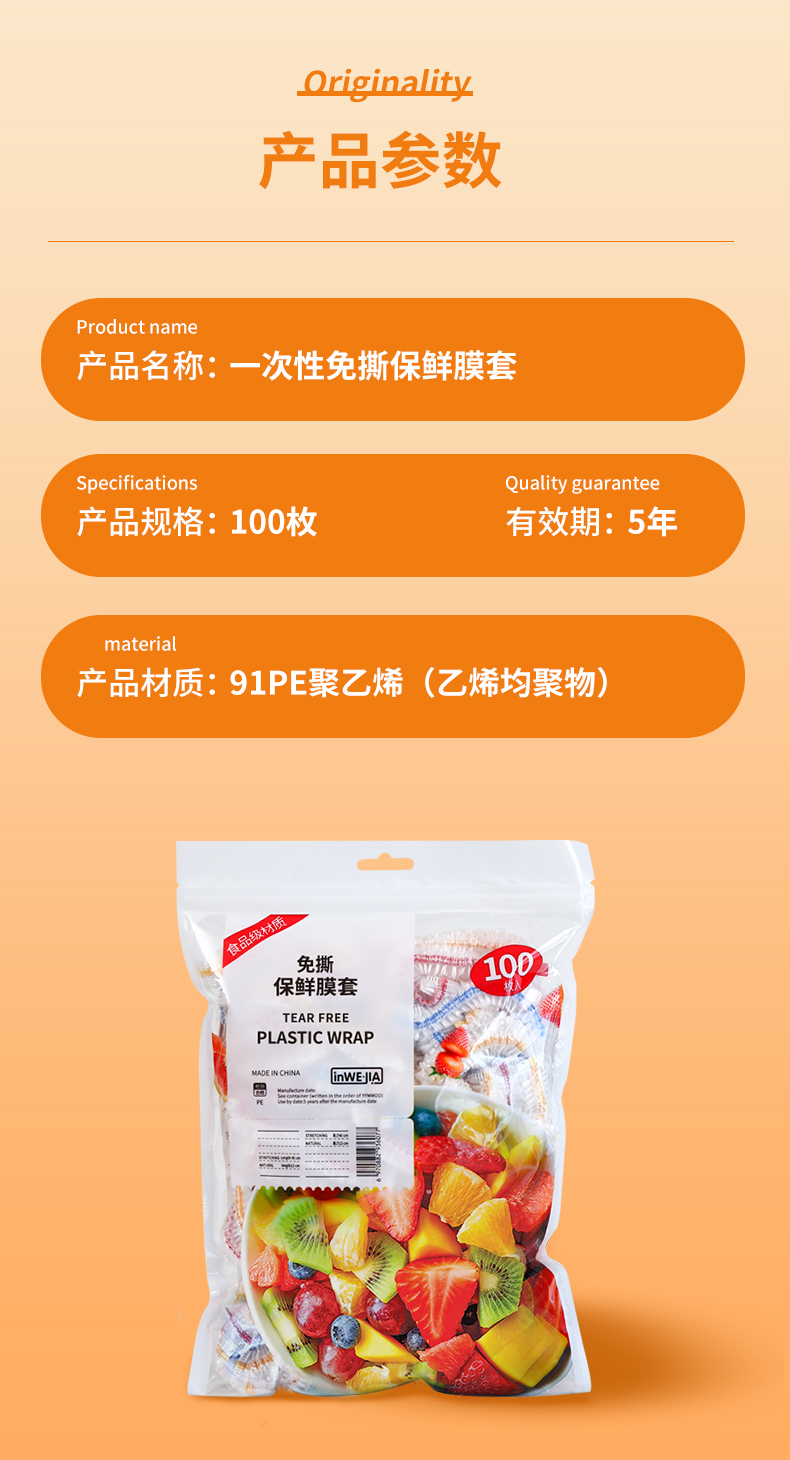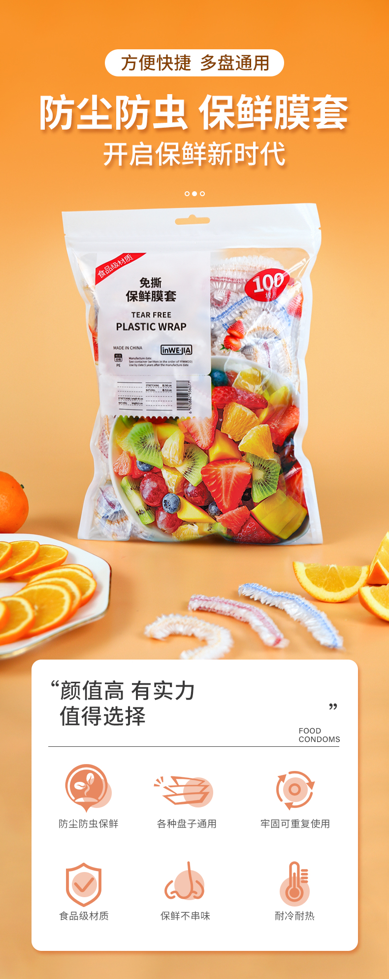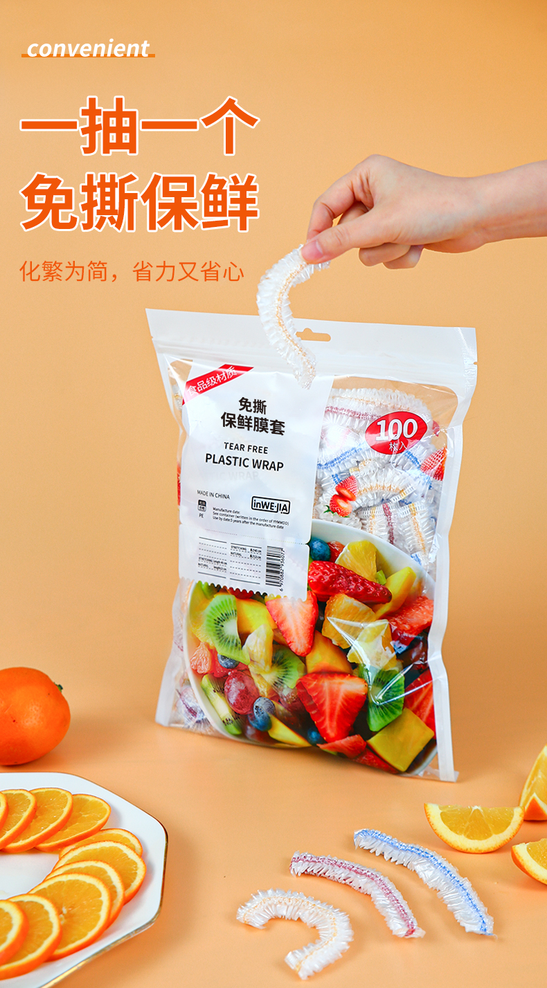 【买一次用一年】inwejia 一次性保鲜膜套 100枚/袋*4 食品级家用保鲜袋,自带松紧口浴帽式保鲜膜套,防尘防虫免手撕,方便快捷,多盘通用