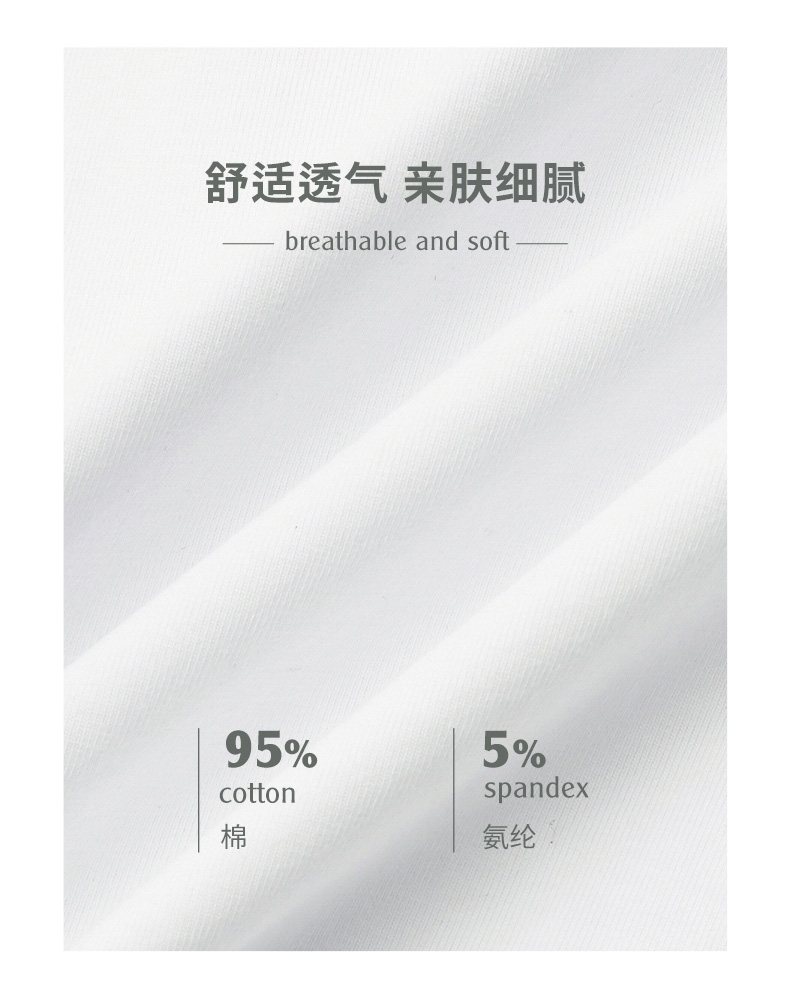 | 安全等级: B类 | 材质成分: 棉95% 聚氨酯弹性纤维(氨纶)5% |