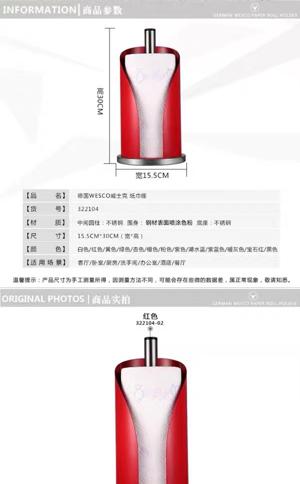 威士克wesco德国吸油纸架厨房创意欧式纸巾座金属